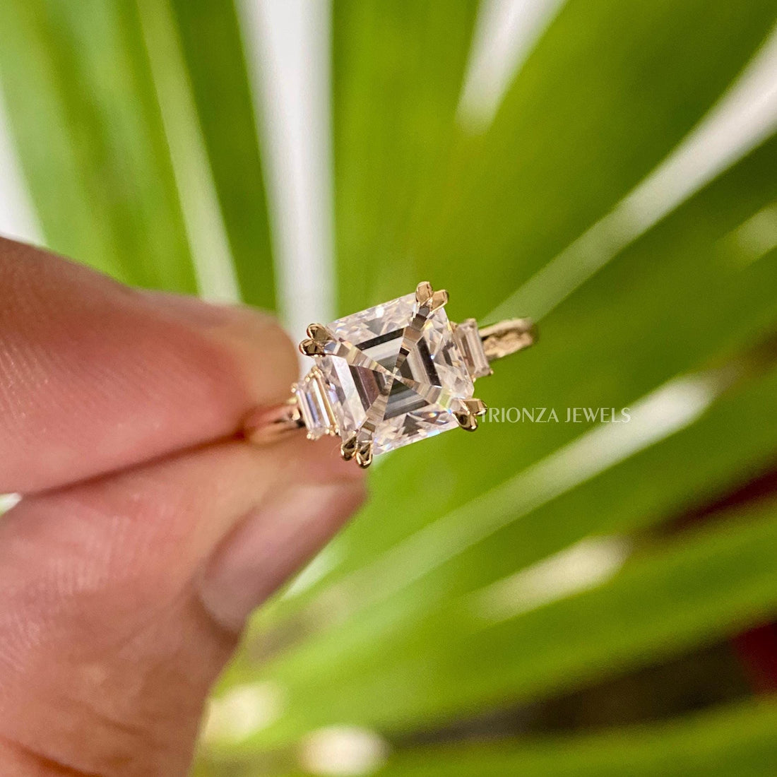 2ct Asscher Cut Moissanite Ring - Art Deco 14k Gold Engagement