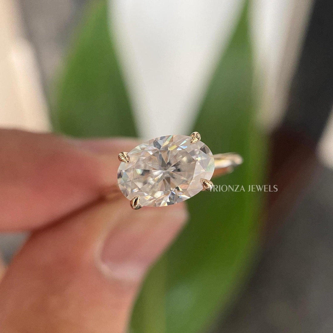 3CT East West Oval Moissanite 14K Gold Engagement Ring