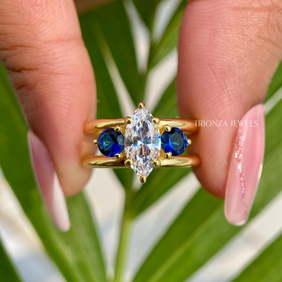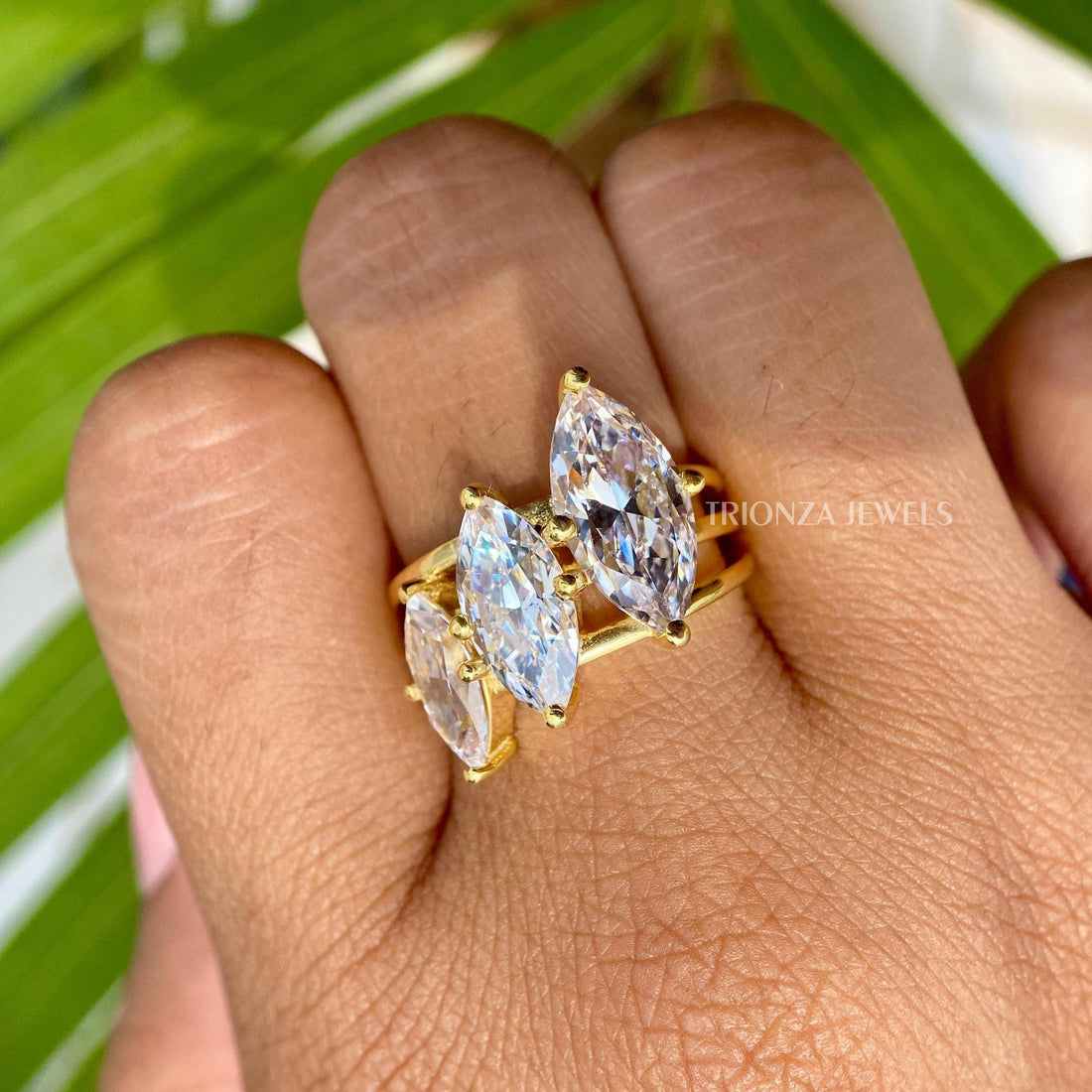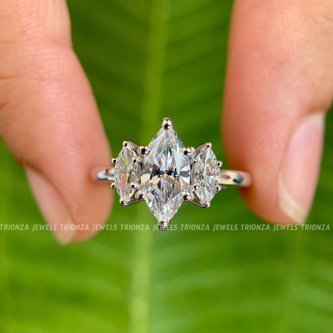 1.5 CT Marquise Moissanite Engagement Ring | Trilogy Three Stone