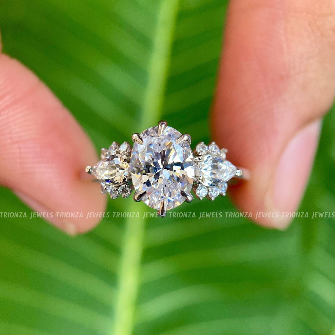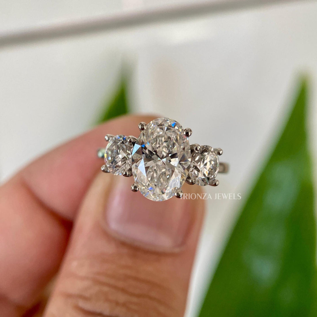 2.00 CT Oval Moissanite Engagement Ring - Three Stone Promise Gift