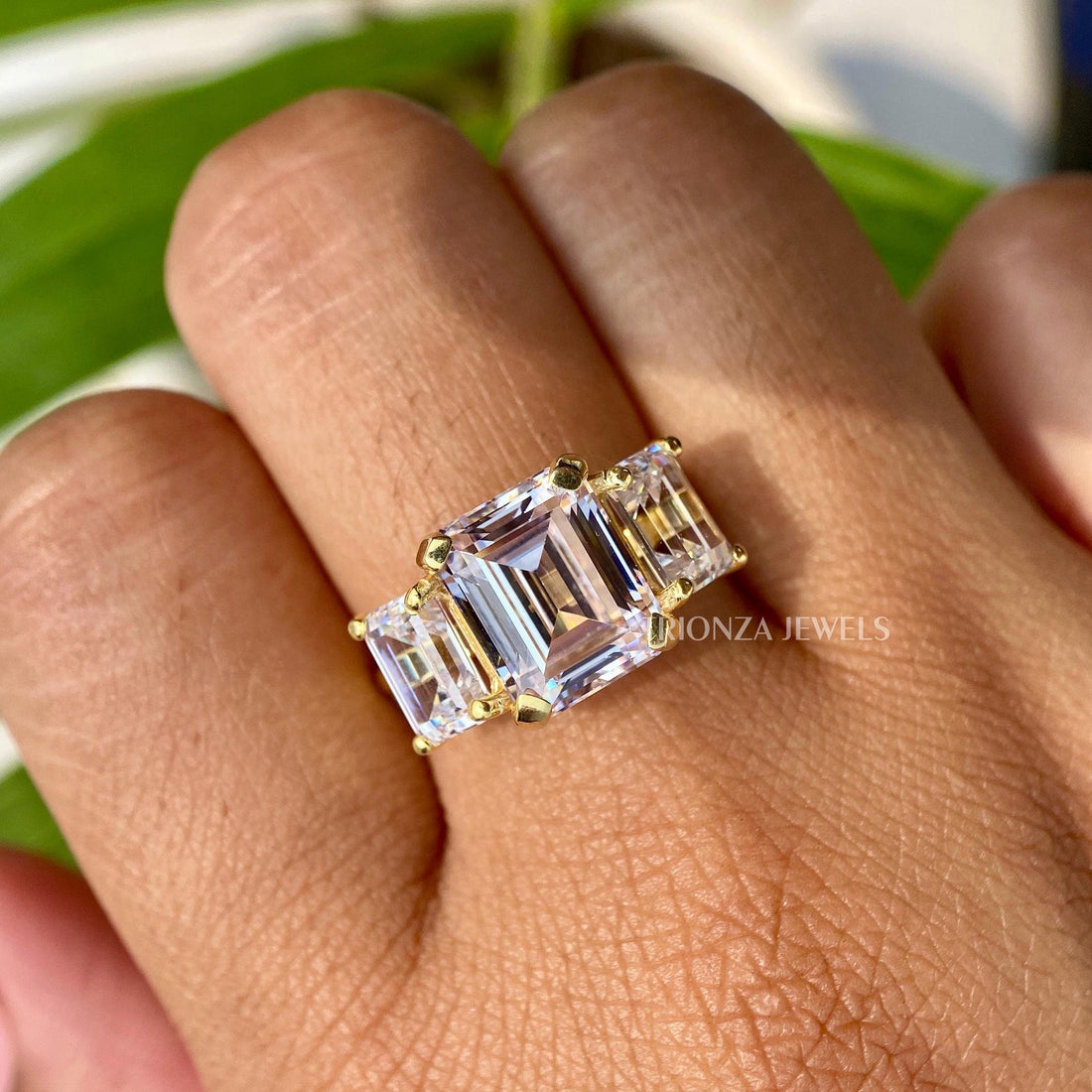 Emerald Cut Moissanite Three Stone Engagement Wedding Anniversary Ring