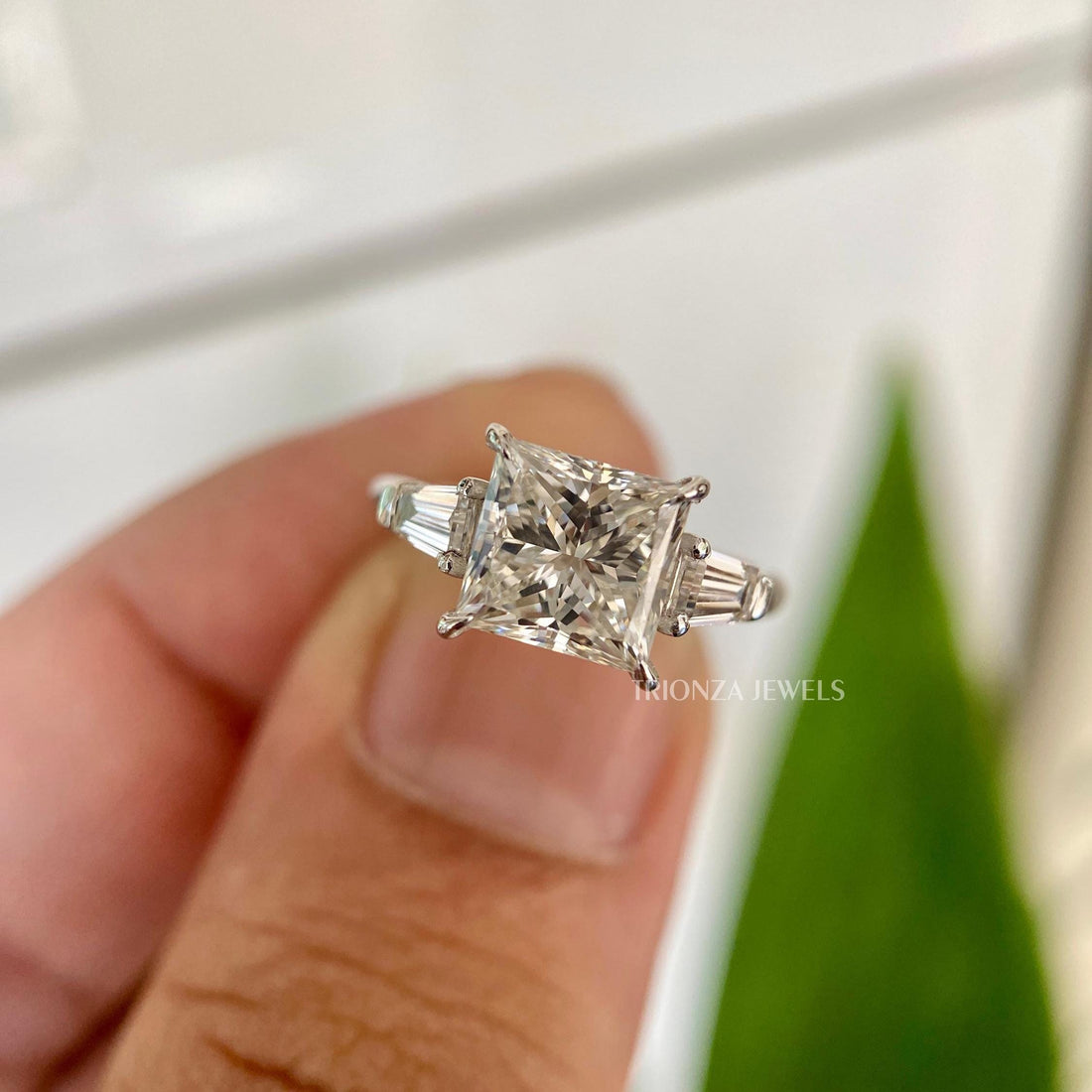 2 CT Princess Cut Moissanite Wedding Ring, 3-Stone 14K Gold