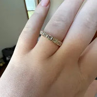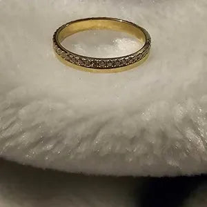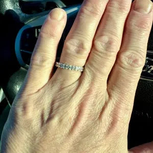 LOVE how this turned out! The seller was very kind and responsive when I asked to customize the band to only half instead of the whole eternity. Very well crafted and and sparkly.