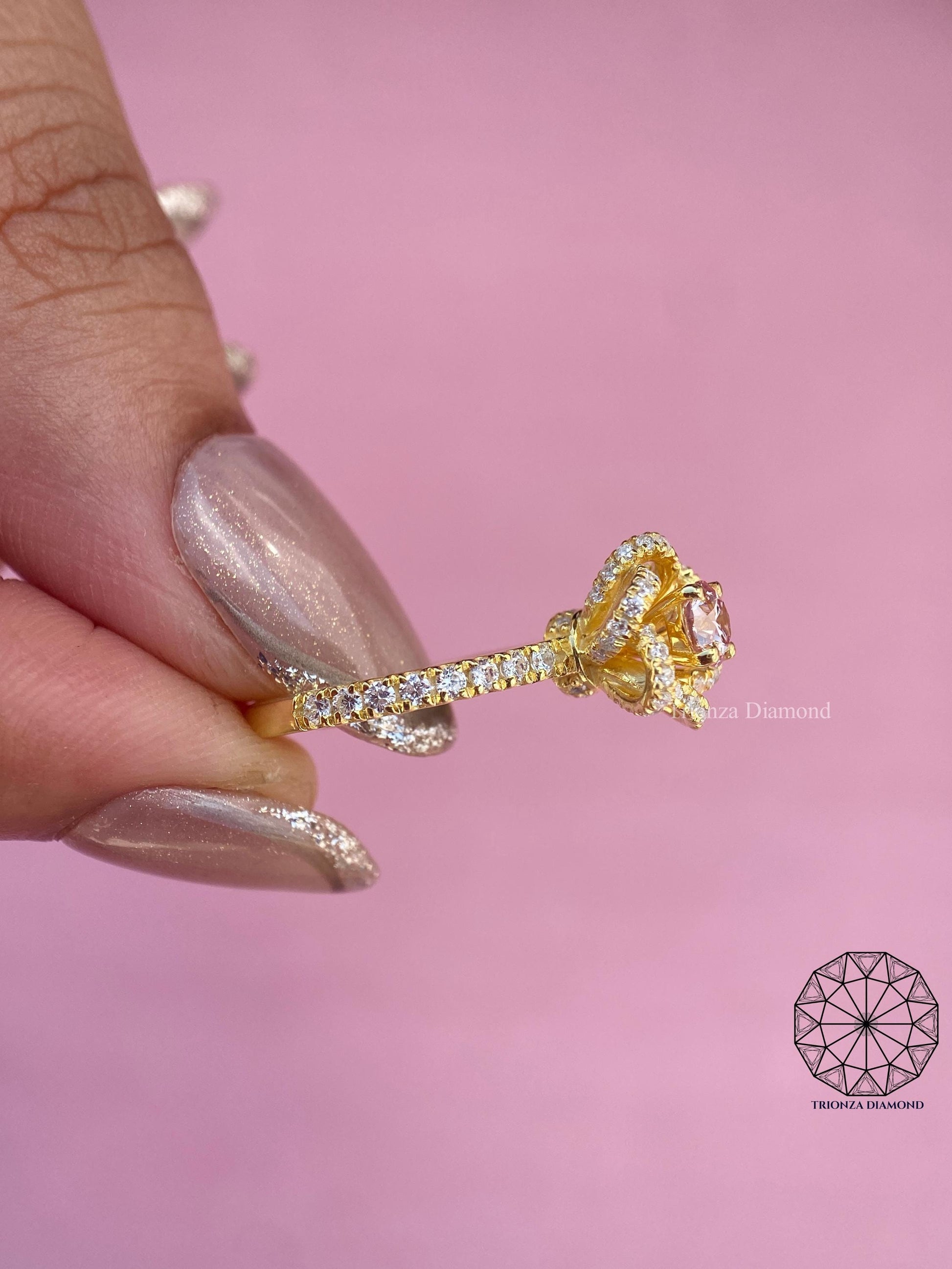 0.30 Ct Pink Lab Diamond Floral Halo Ring - 14k Gold Stackable