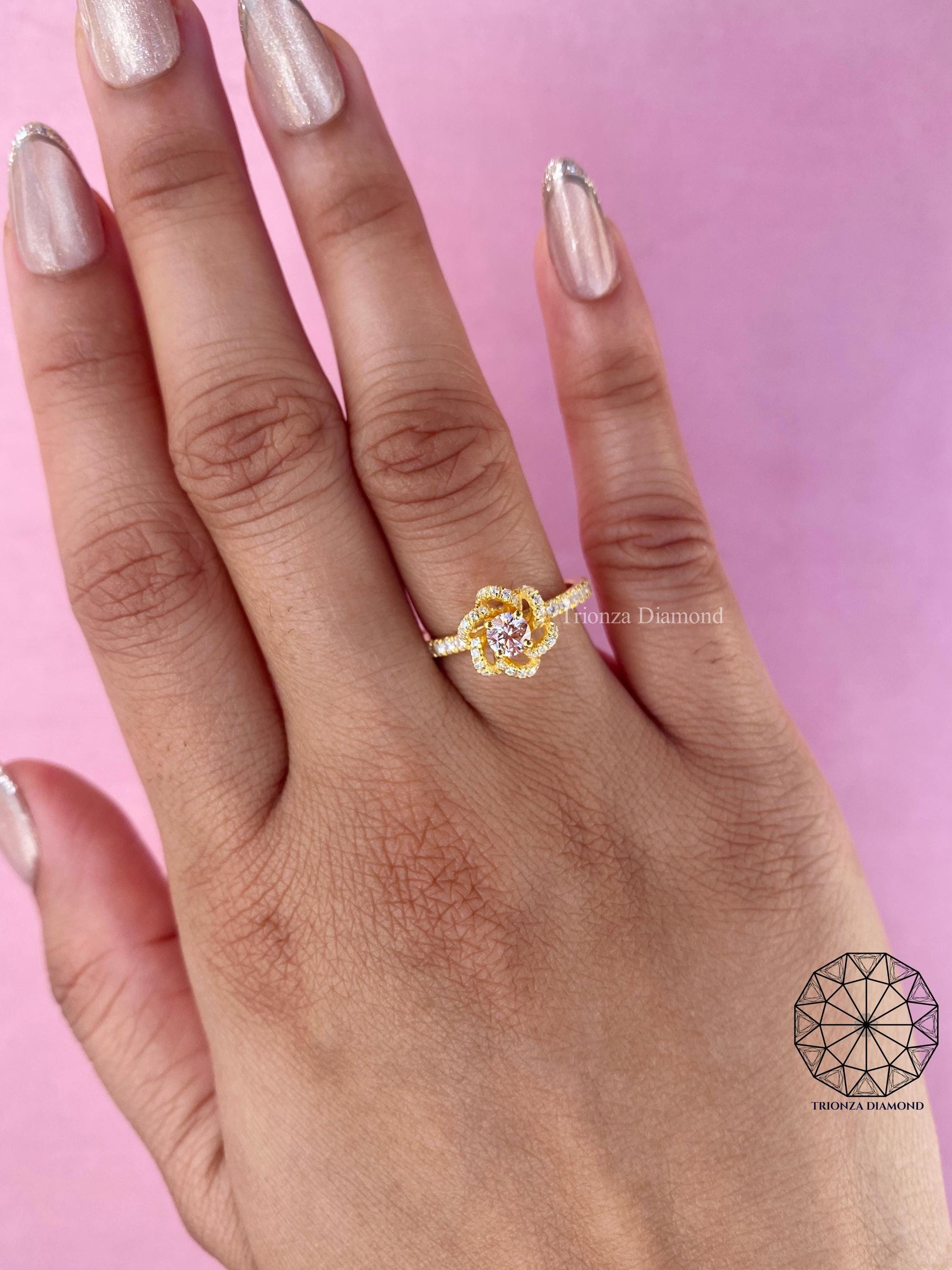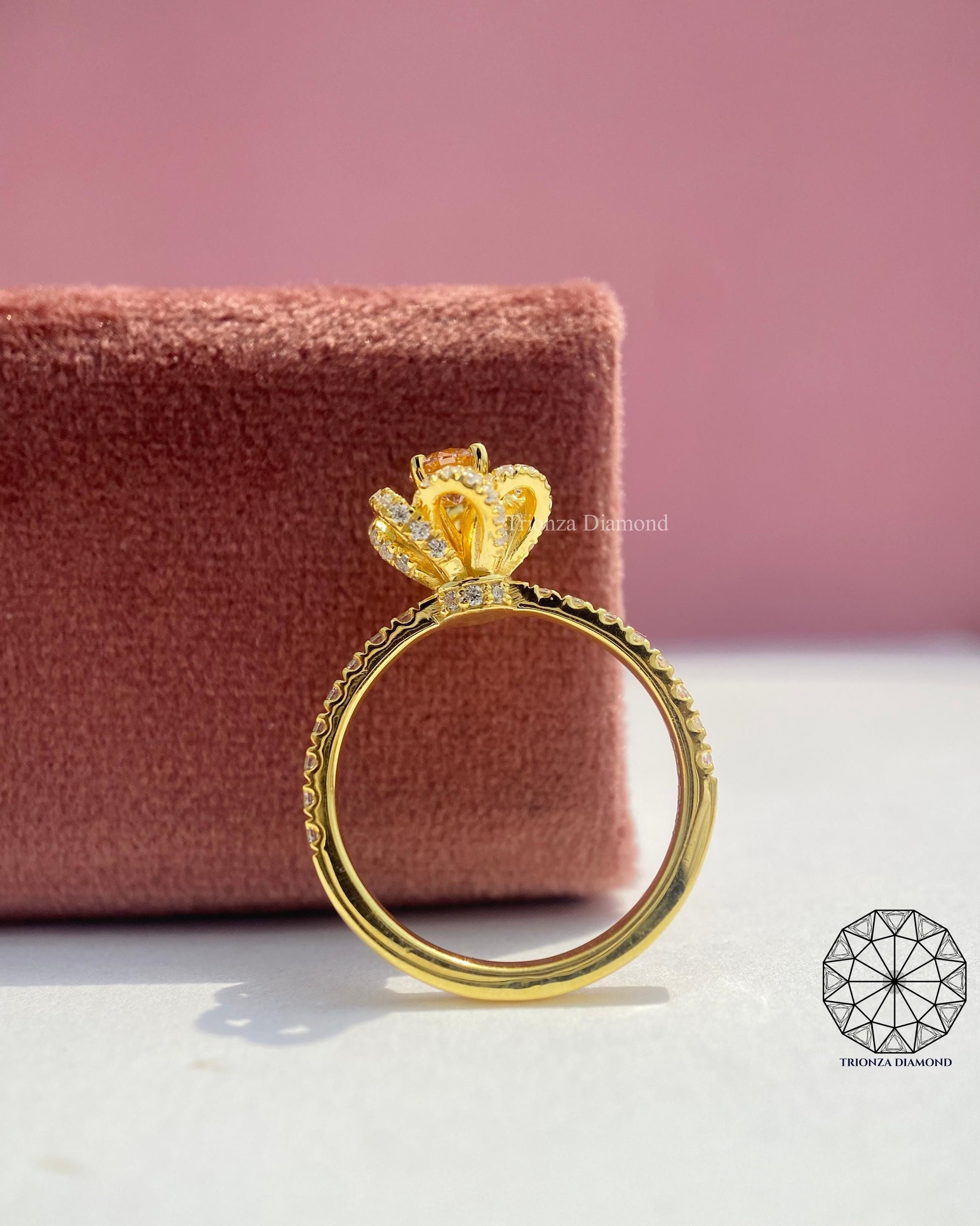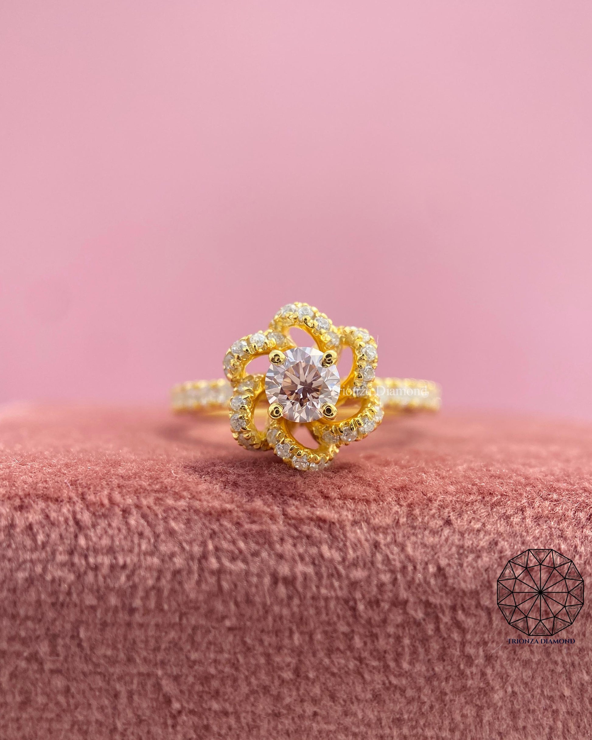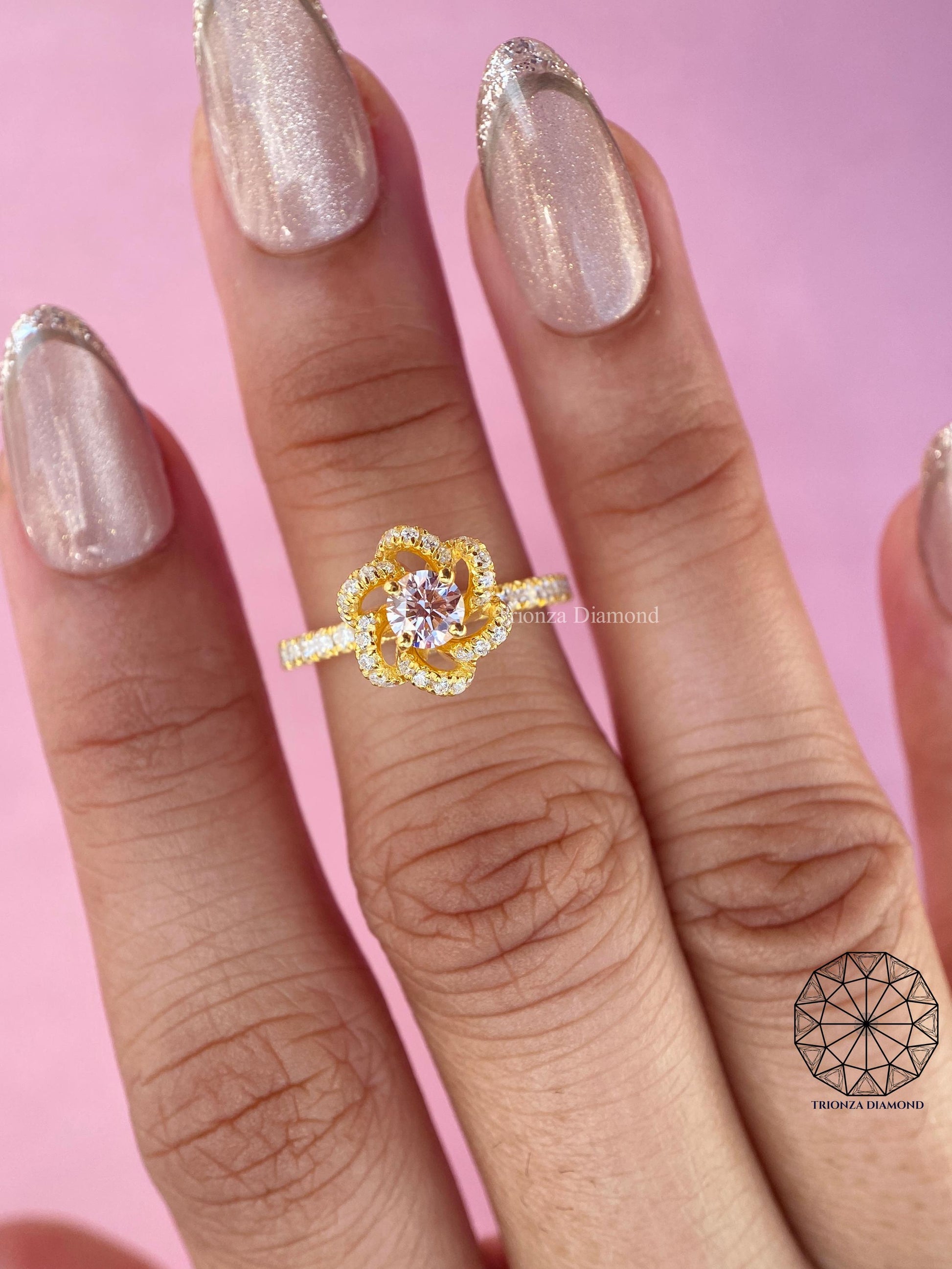 Discover floral elegance with our 0.30CT Lab-Grown Diamond Ring. This timeless design features a round brilliant-cut center stone encircled by petal-like diamonds, creating a radiant bloom. Handcrafted in solid 14K gold and IGI certified, it's perfect for engagements, anniversaries, or milestone celebrations.