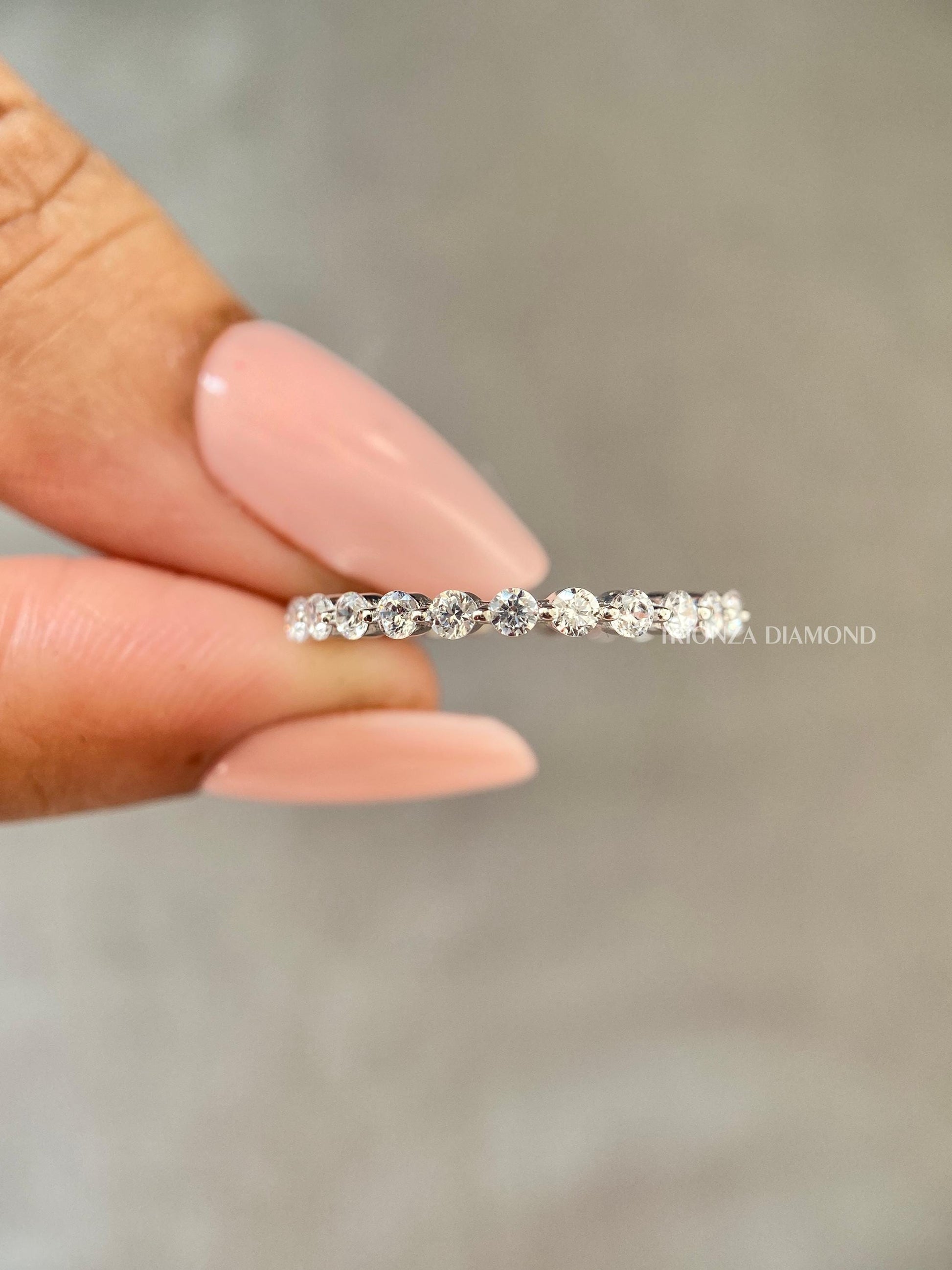Discover the elegance of our Floating Bubble Wedding Band, featuring 0.50 TCW Round Lab Grown Diamonds. This exquisite full eternity band is meticulously handcrafted, making it a perfect matching or stackable piece and an ideal gift for her.