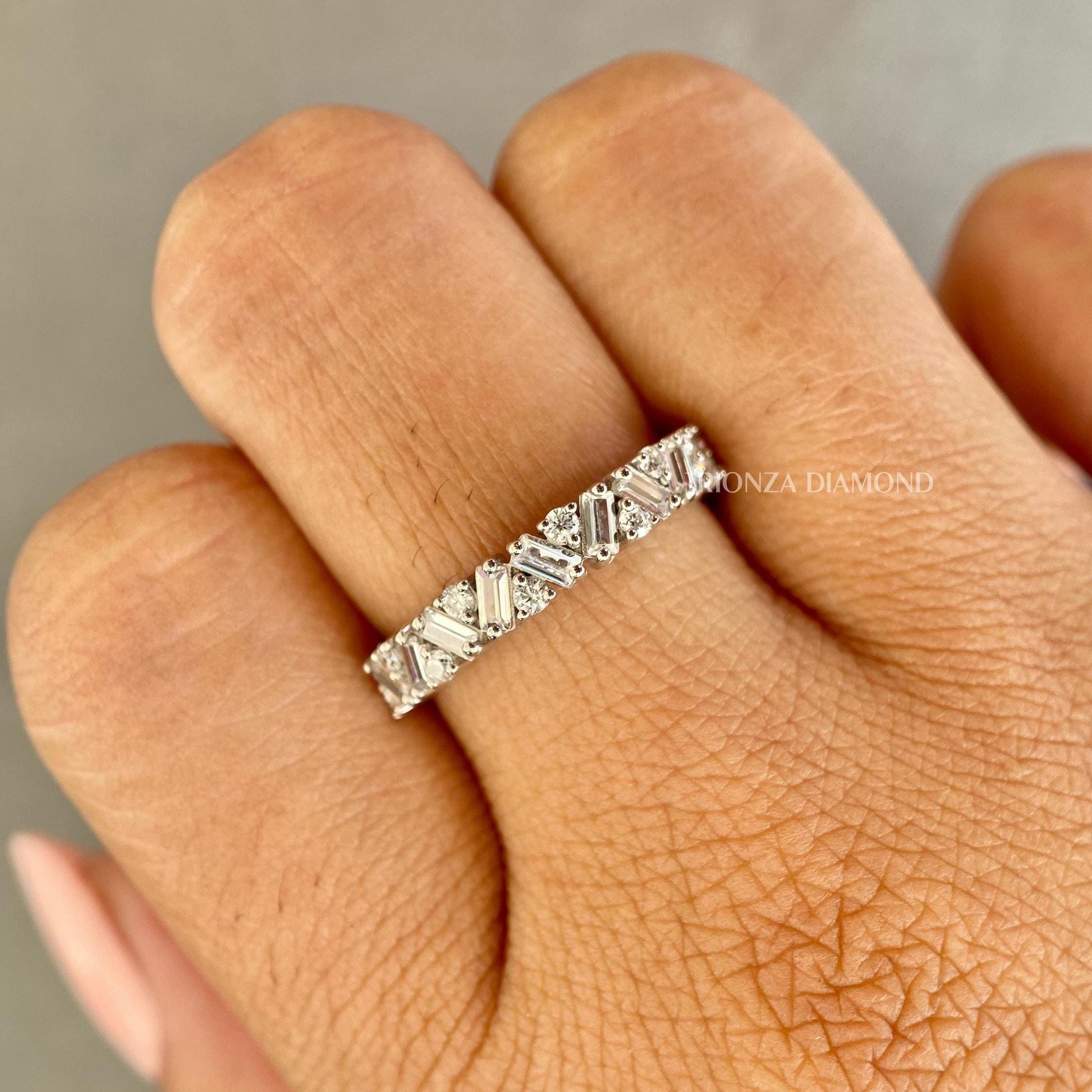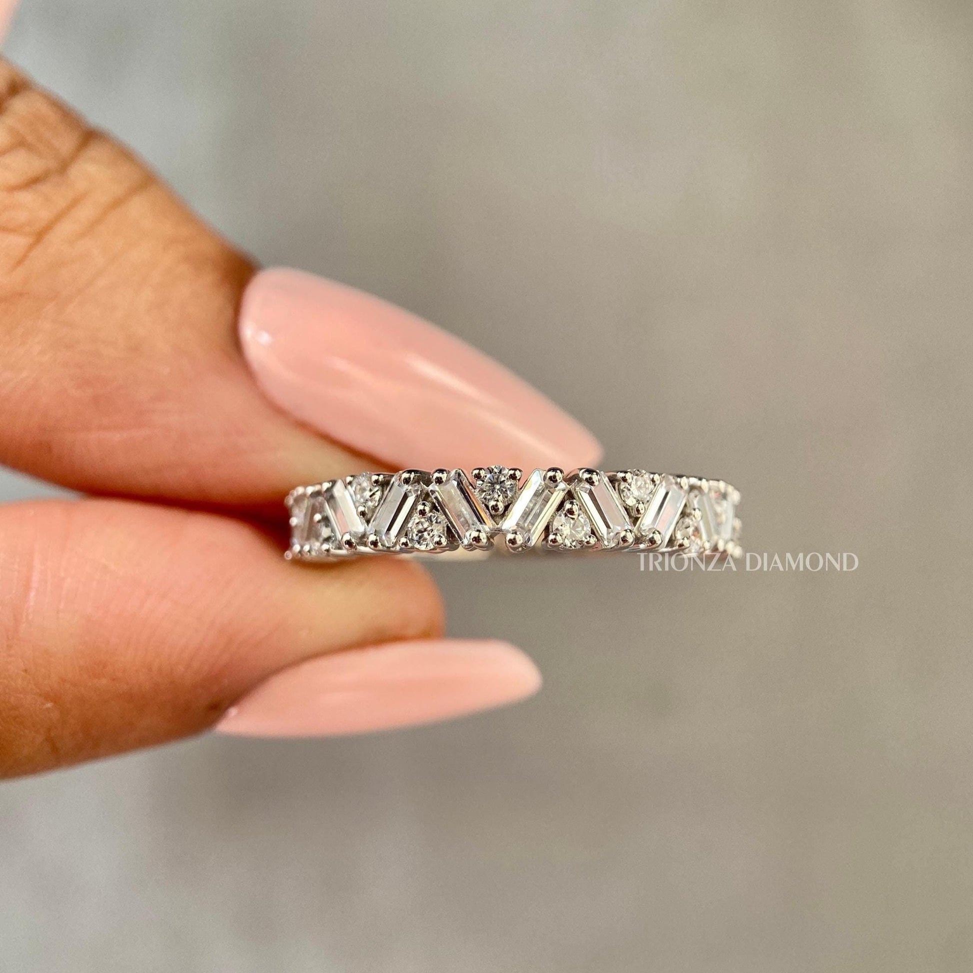0.56 TCW Baguette Round Lab Diamond Zigzag Wedding Half Eternity Band