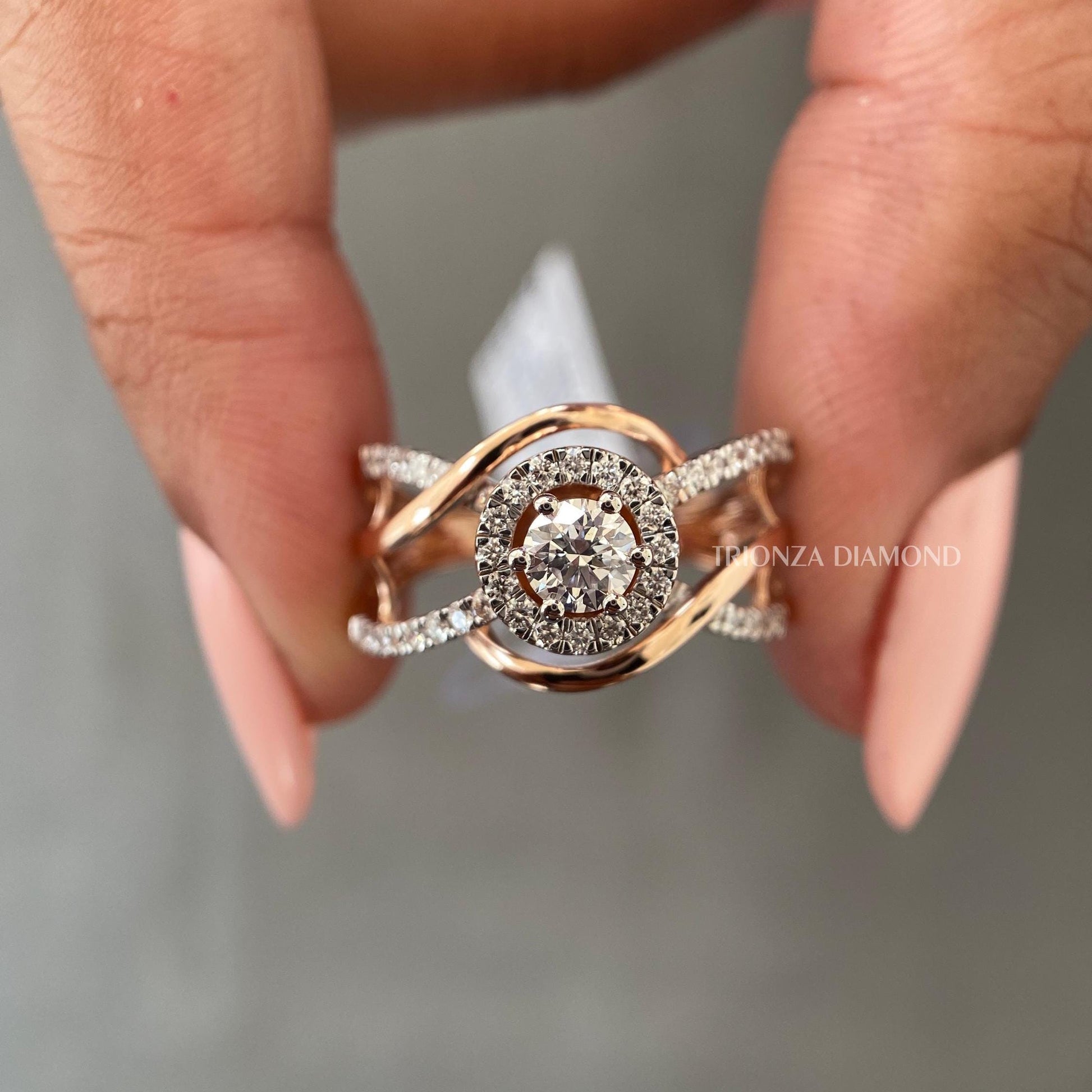 Presenting a stunning 0.75 CT Round Halo Set Lab Grown Diamond Wedding Ring, perfect for brides seeking an exquisite and conflict-free diamond. This ring features a beautiful lab-created diamond with a 6-prong halo setting, IGI Certified for authenticity and quality.