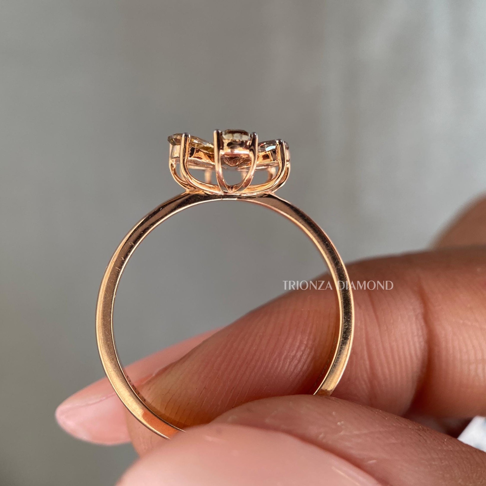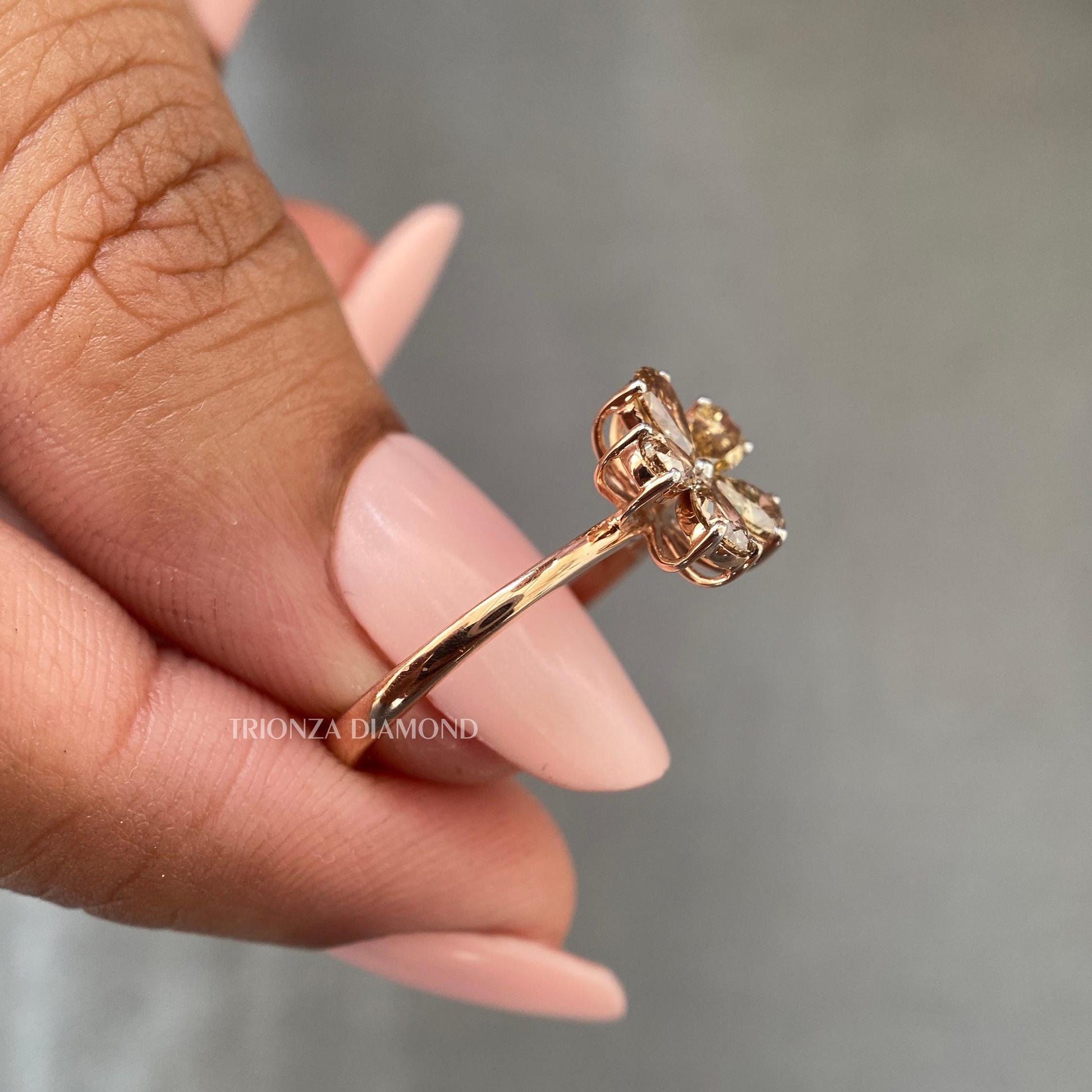 Crafted with precision and elegance, this exquisite ring features a stunning 0.80 TCW pear-cut natural diamond in a beautiful brown color, set in a unique flower-inspired design. The diamond is ethically sourced and certified by IGI (International Gemological Institute), ensuring its authenticity and superior quality. The ring is meticulously handcrafted in 14K solid gold, available in yellow, white, or rose gold, to suit your preference.
