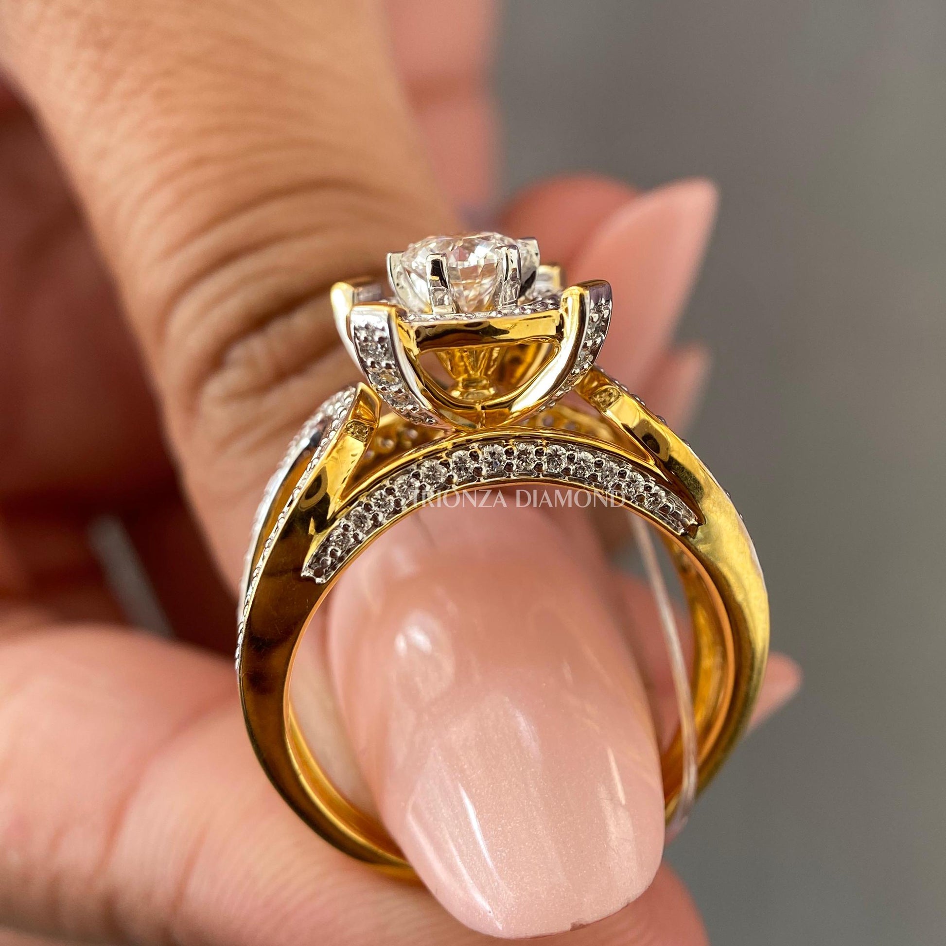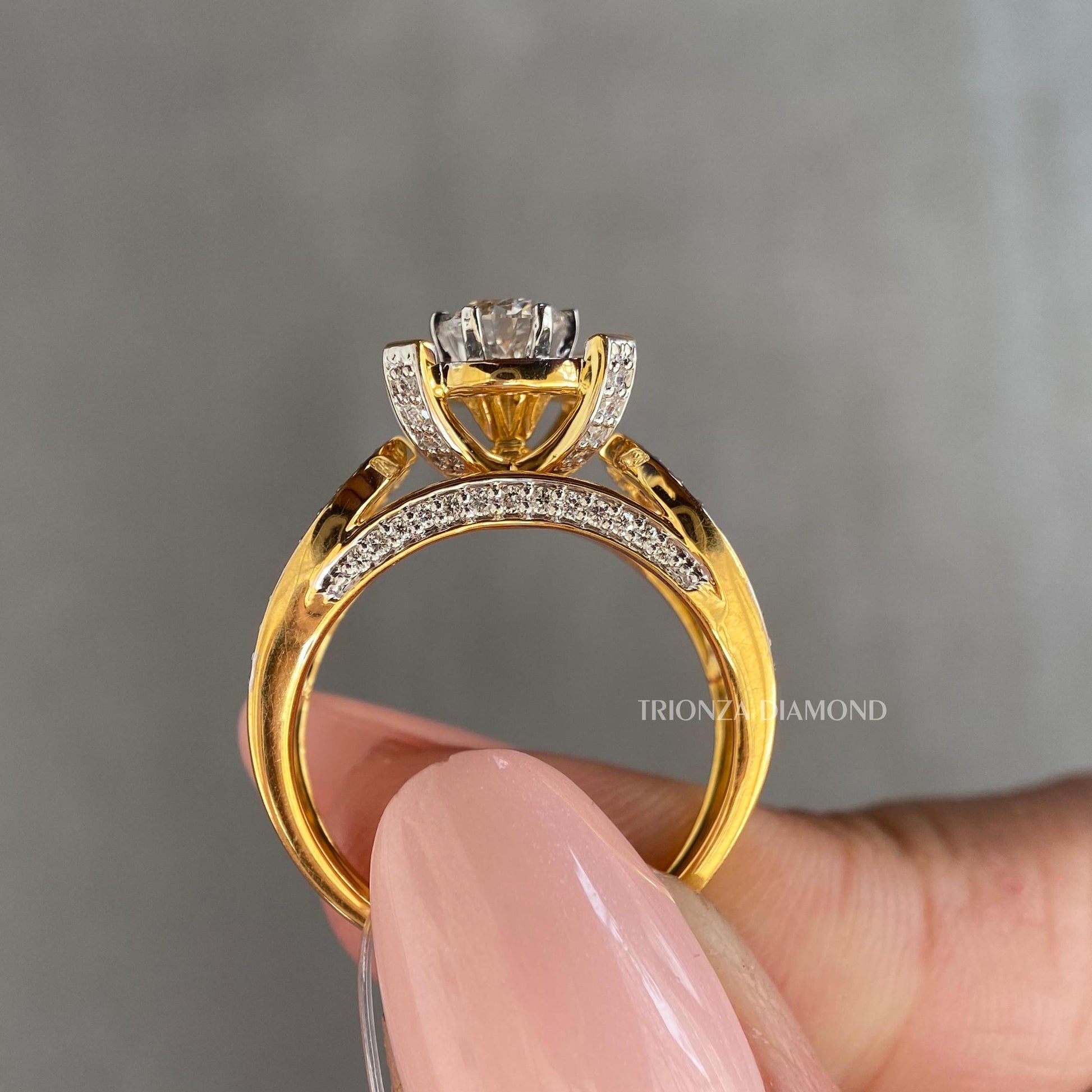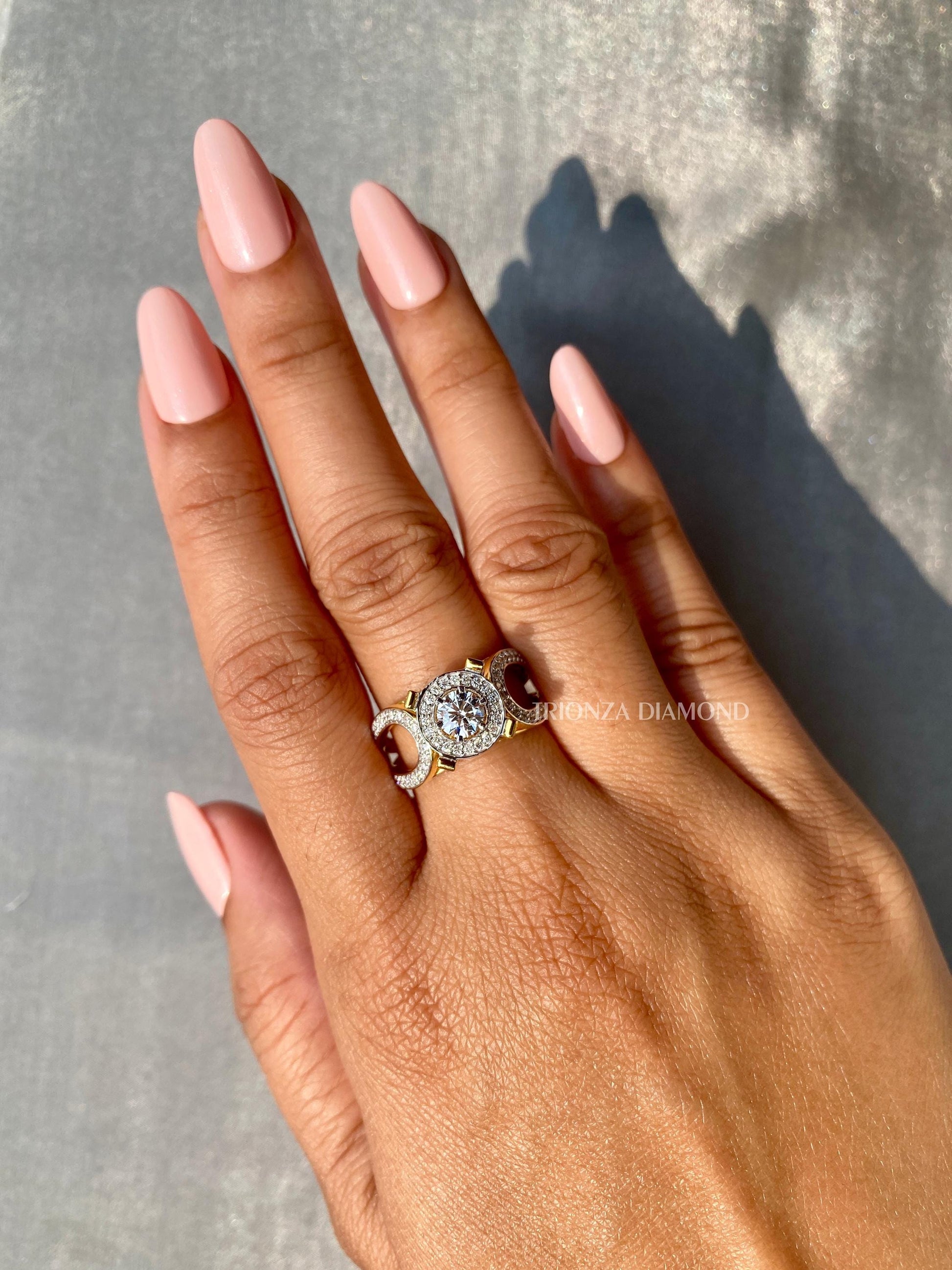 Discover the exquisite 1.0 CT Round Halo Lab Grown Diamond Wedding Ring, a perfect choice for brides seeking a stunning and ethical piece. This IGI Certified D/VVS2 round halo diamond ring is a unique, conflict-free diamond crafted with love by TRIONZADIAMOND.