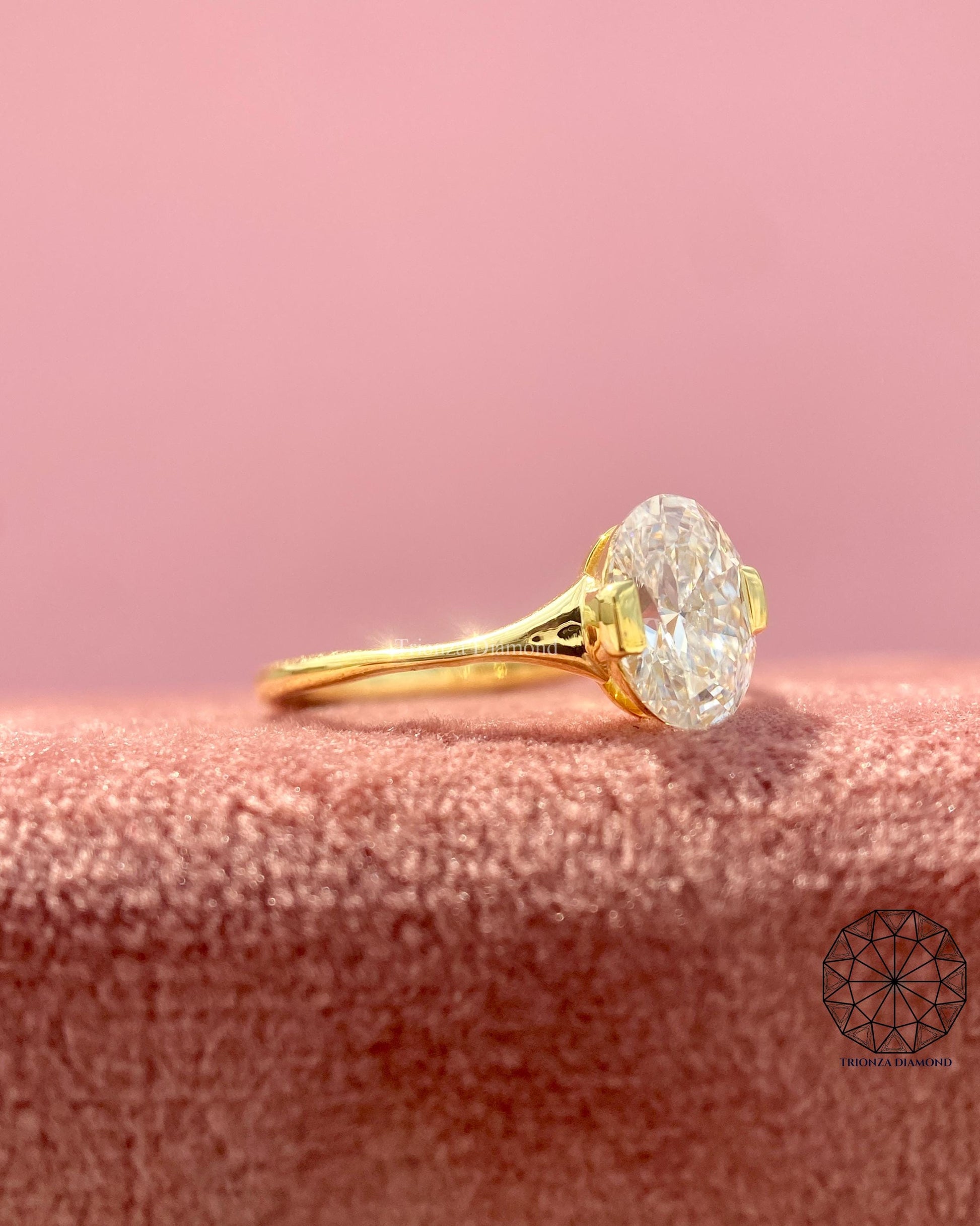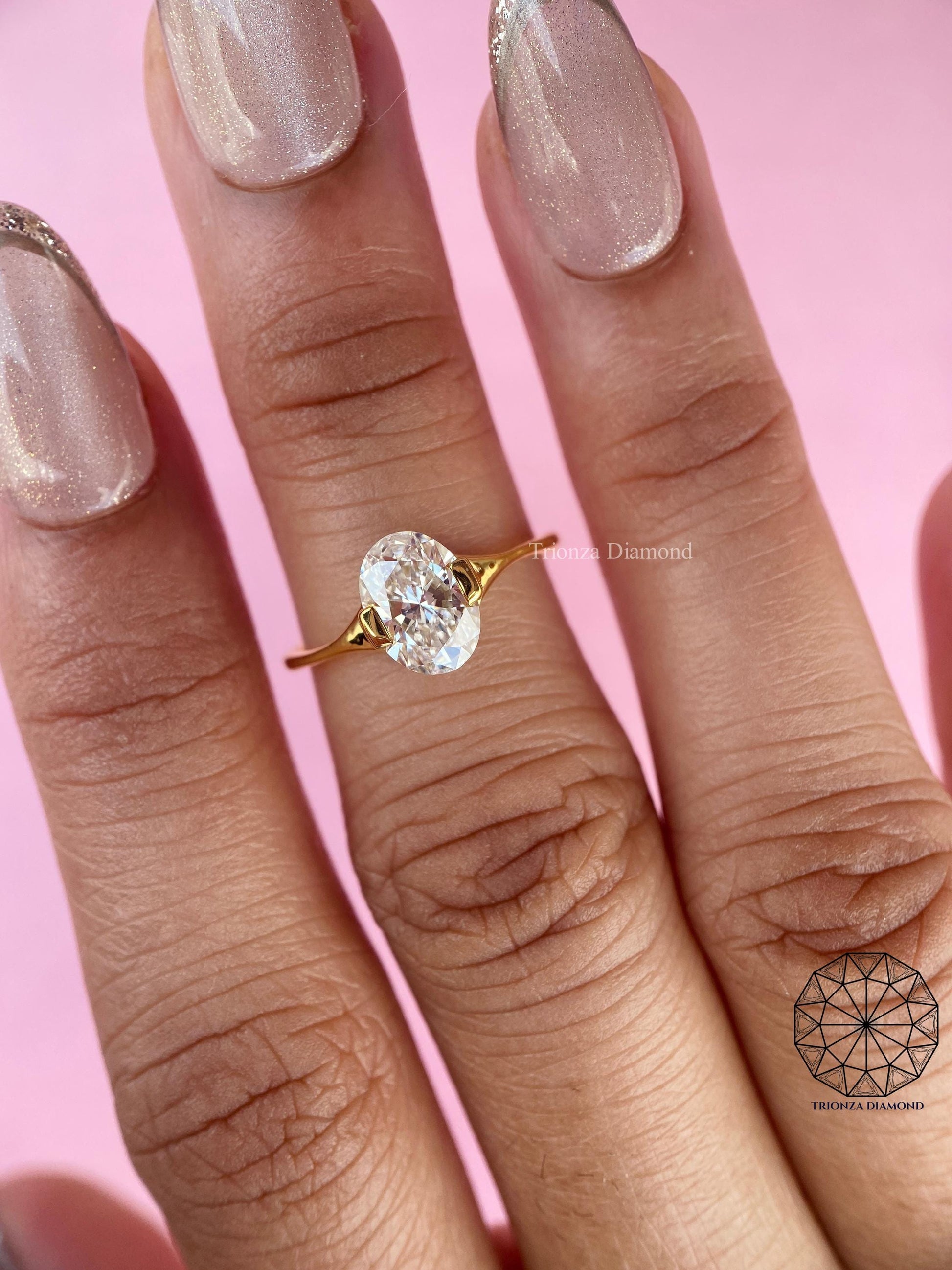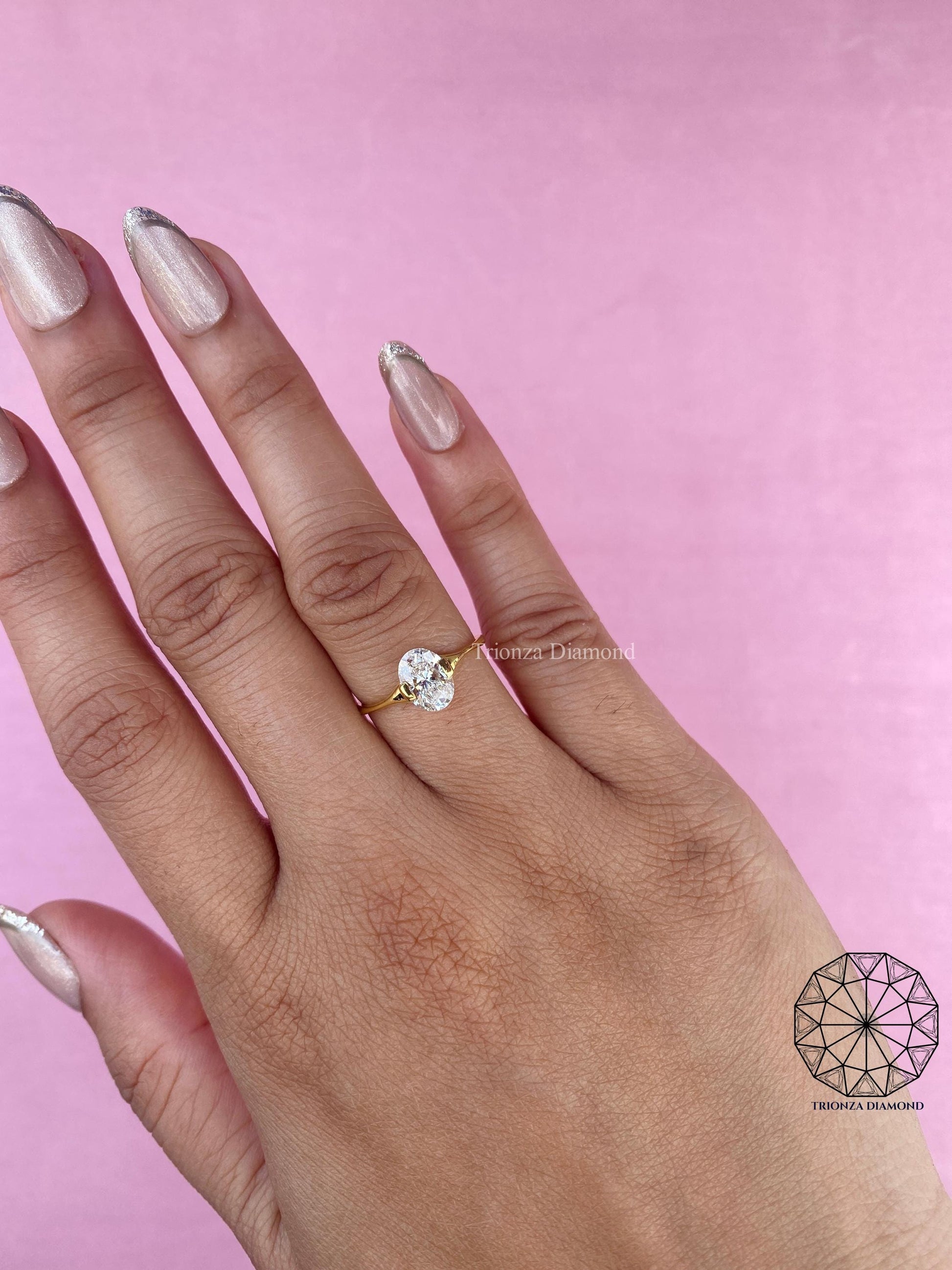 Discover timeless elegance with this 1.07 Carat Oval Lab Grown Diamond Engagement Ring, set in radiant 14k Yellow Gold. This dainty solitaire ring makes a perfect promise ring, modern bridal jewelry, or a thoughtful gift for her.