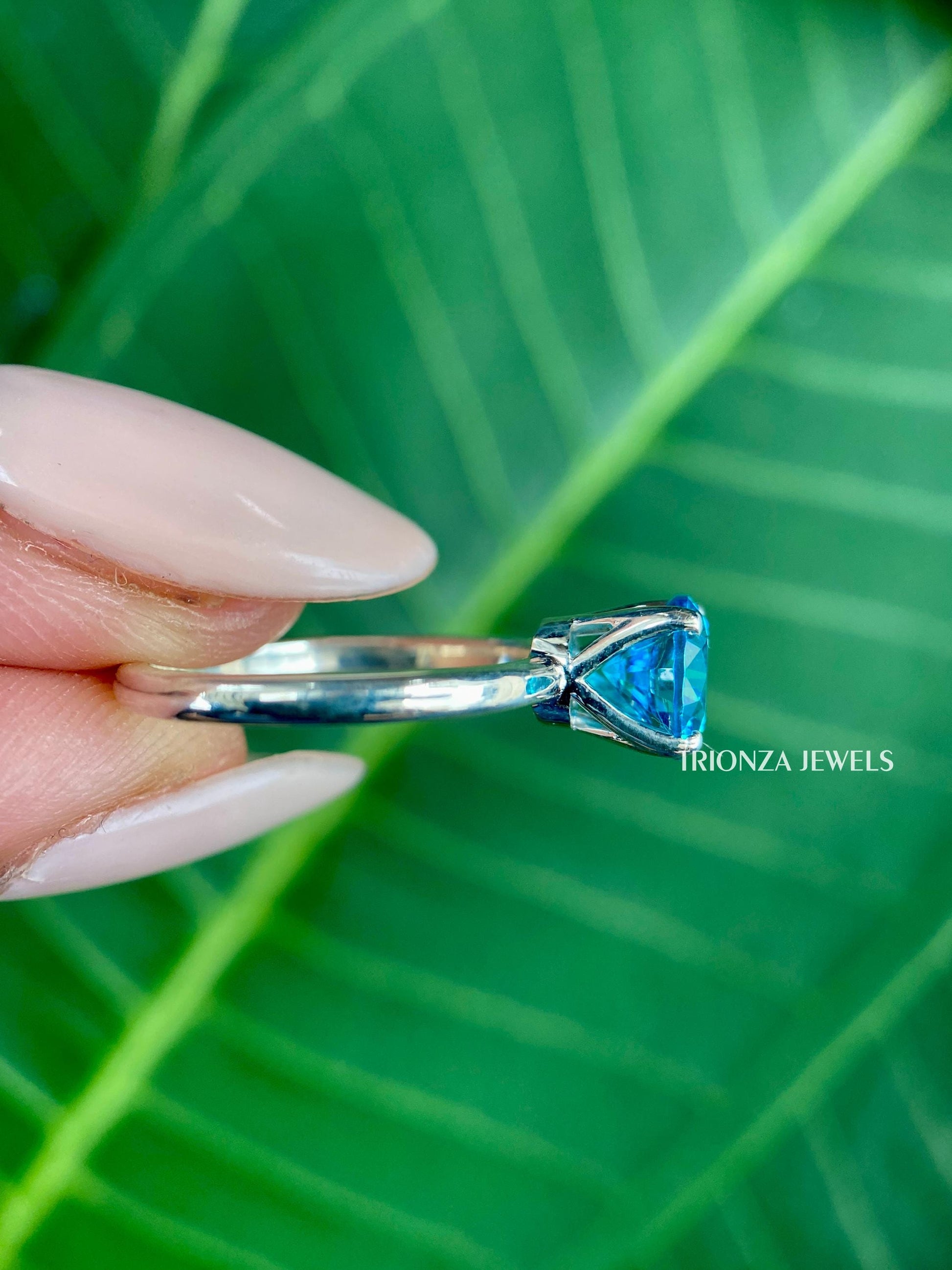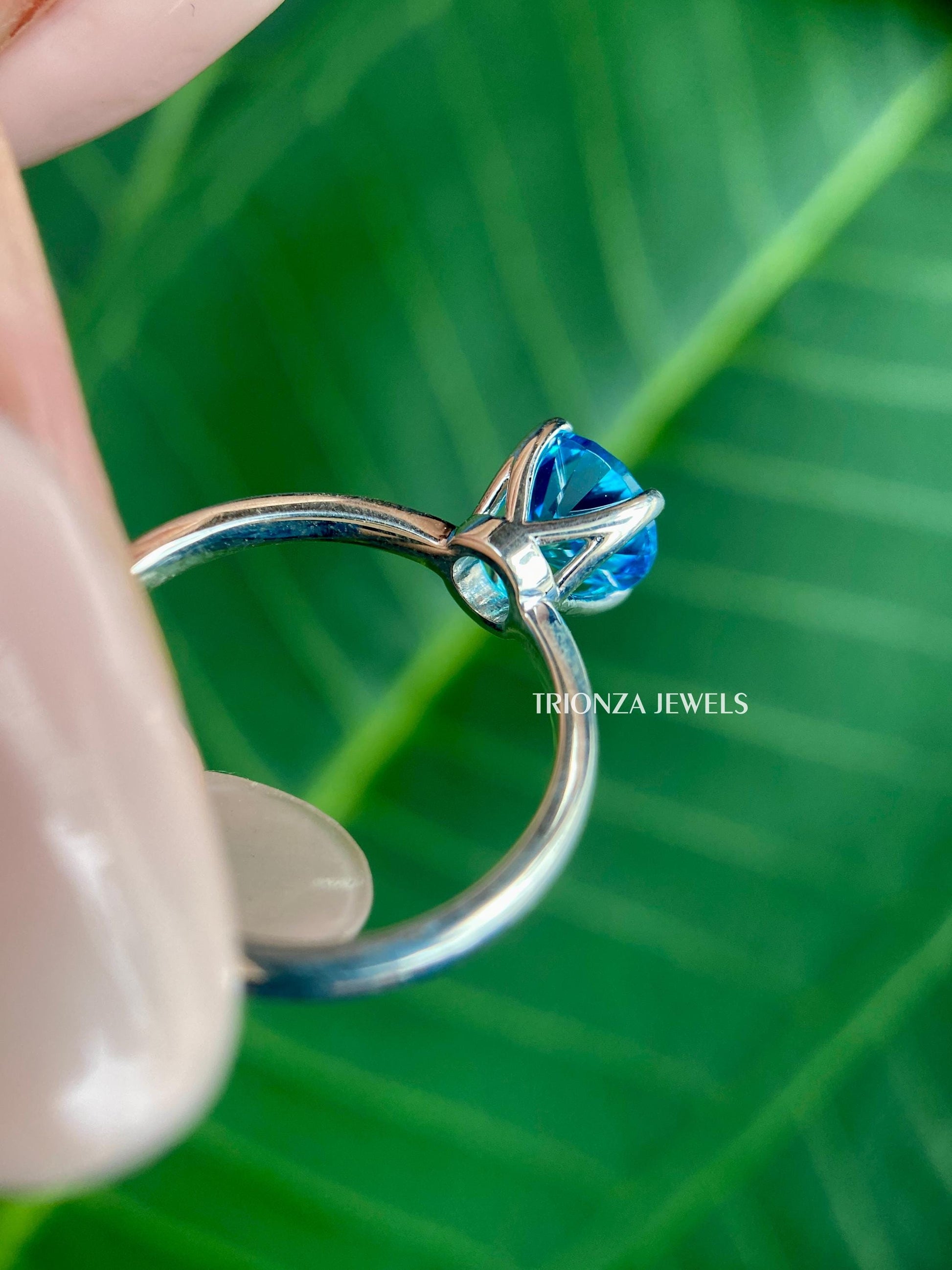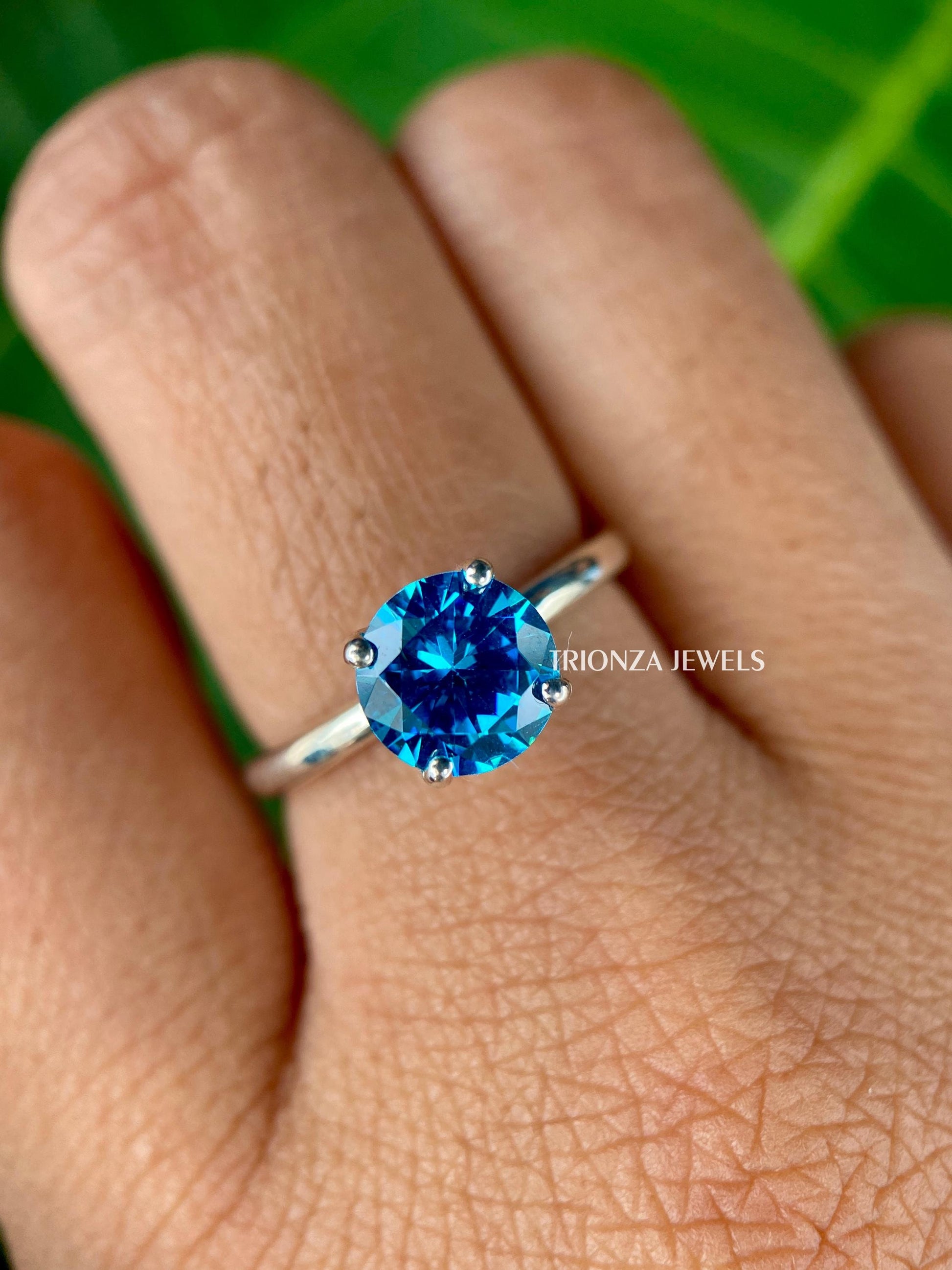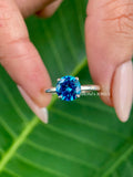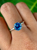 1.20 CT Cyan Blue Moissanite Engagement Ring | White Gold Solitaire