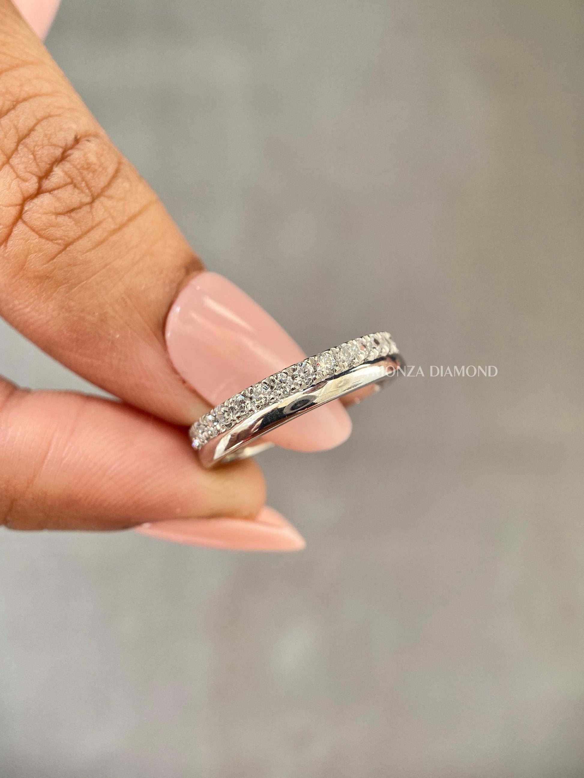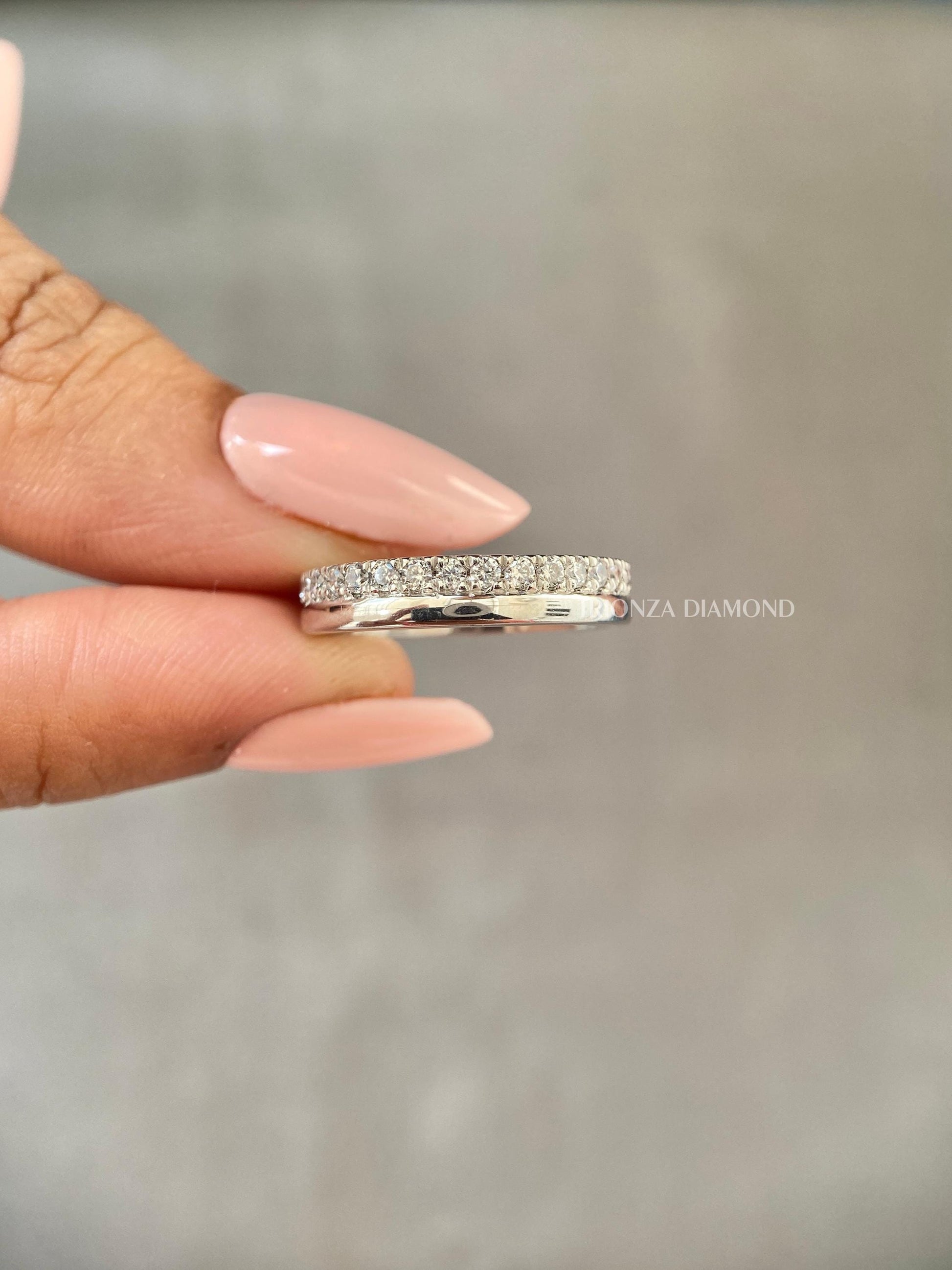 Elevate your style with this dazzling 1.2MM Double Row Lab Grown Diamond Micro Pave Eternity Band. Its modern, refined design makes it a thoughtful anniversary gift, romantic promise ring, or stunning bridal band.