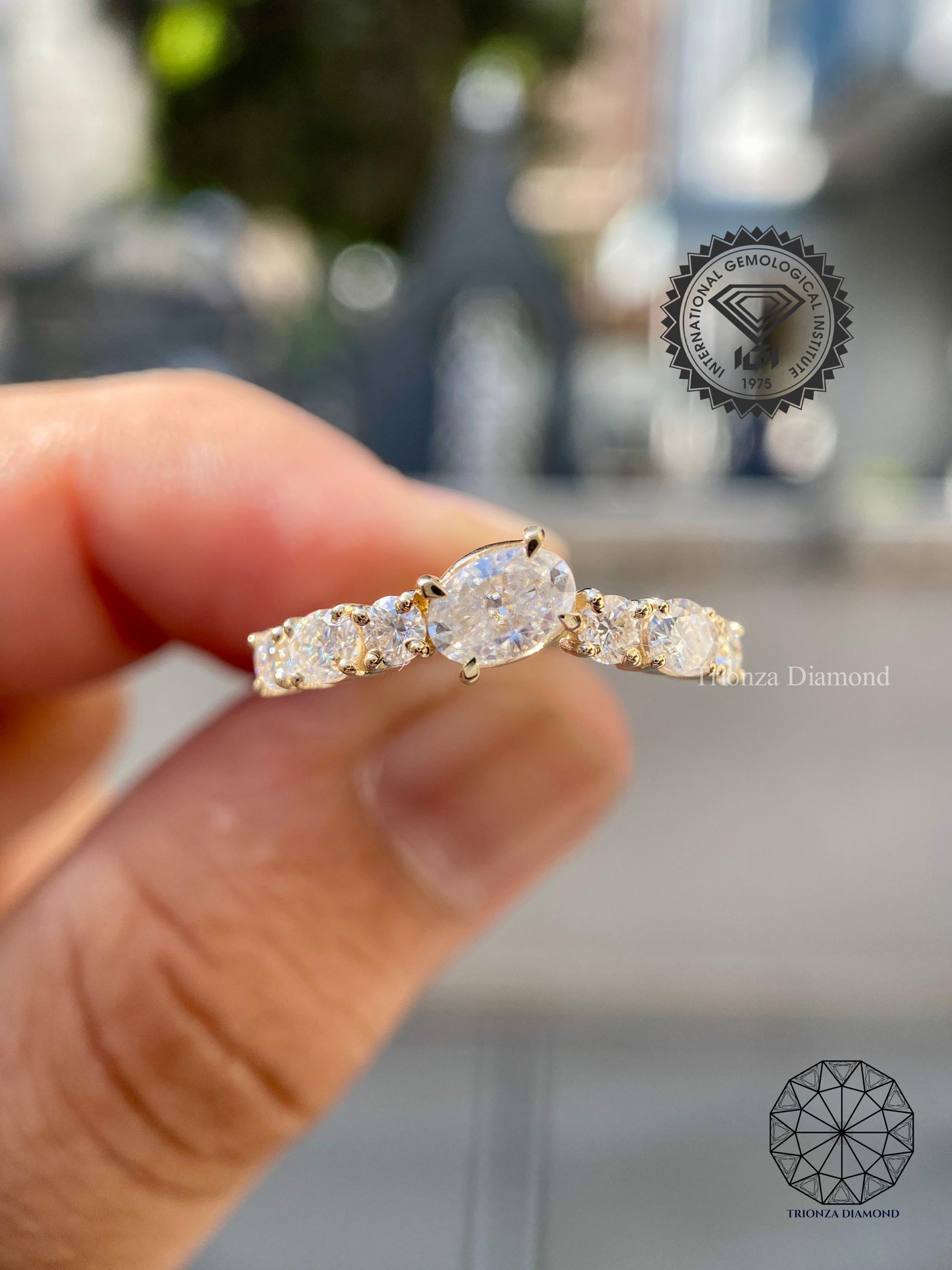 Discover our exquisite 1.33 TCW Oval & Round Lab Grown Diamond Eternity Band, certified by IGI for exceptional quality. This stunning ring features brilliant E VVS2 lab-created diamonds, making it an ideal choice for a wedding band, anniversary gift, or a stylish stackable piece.