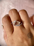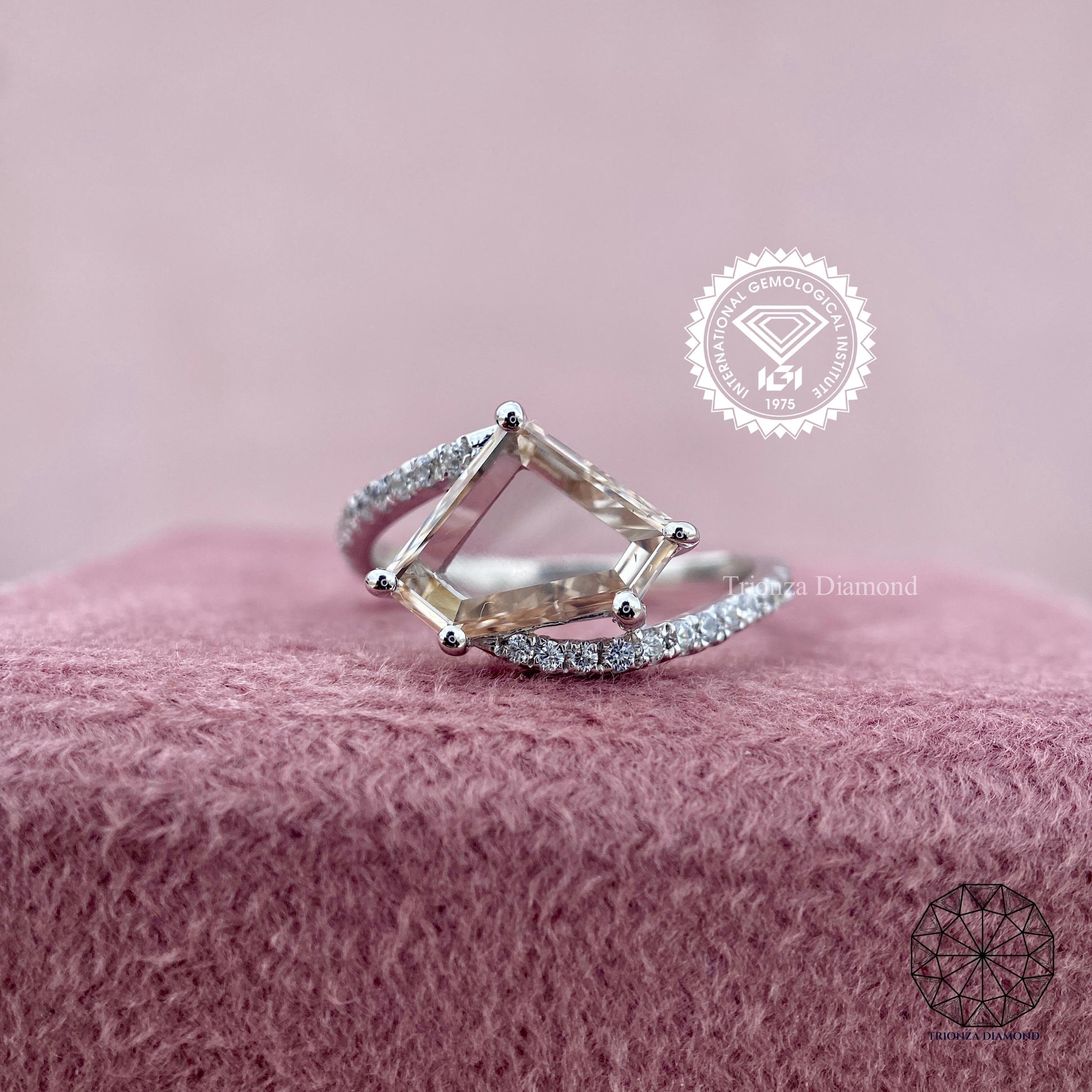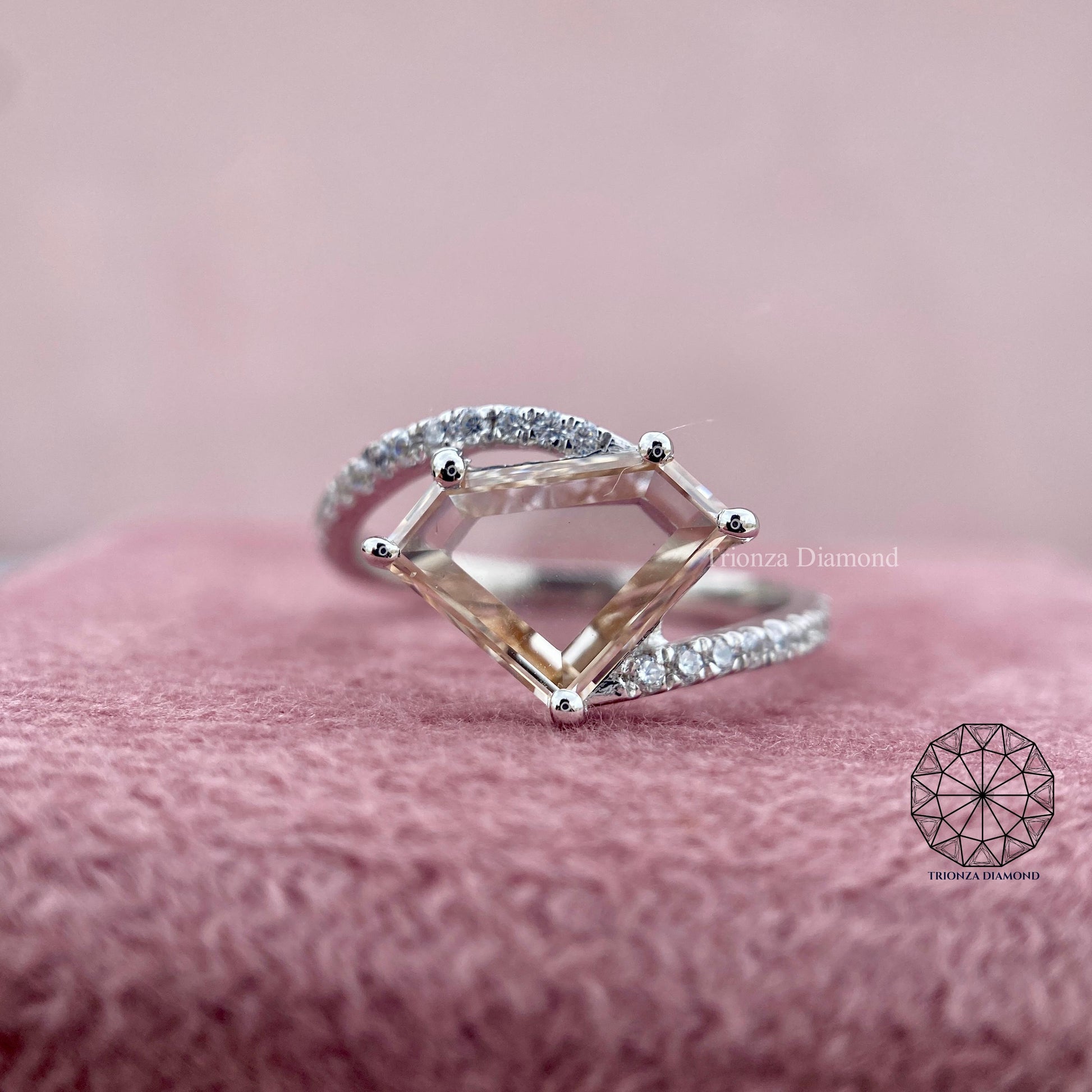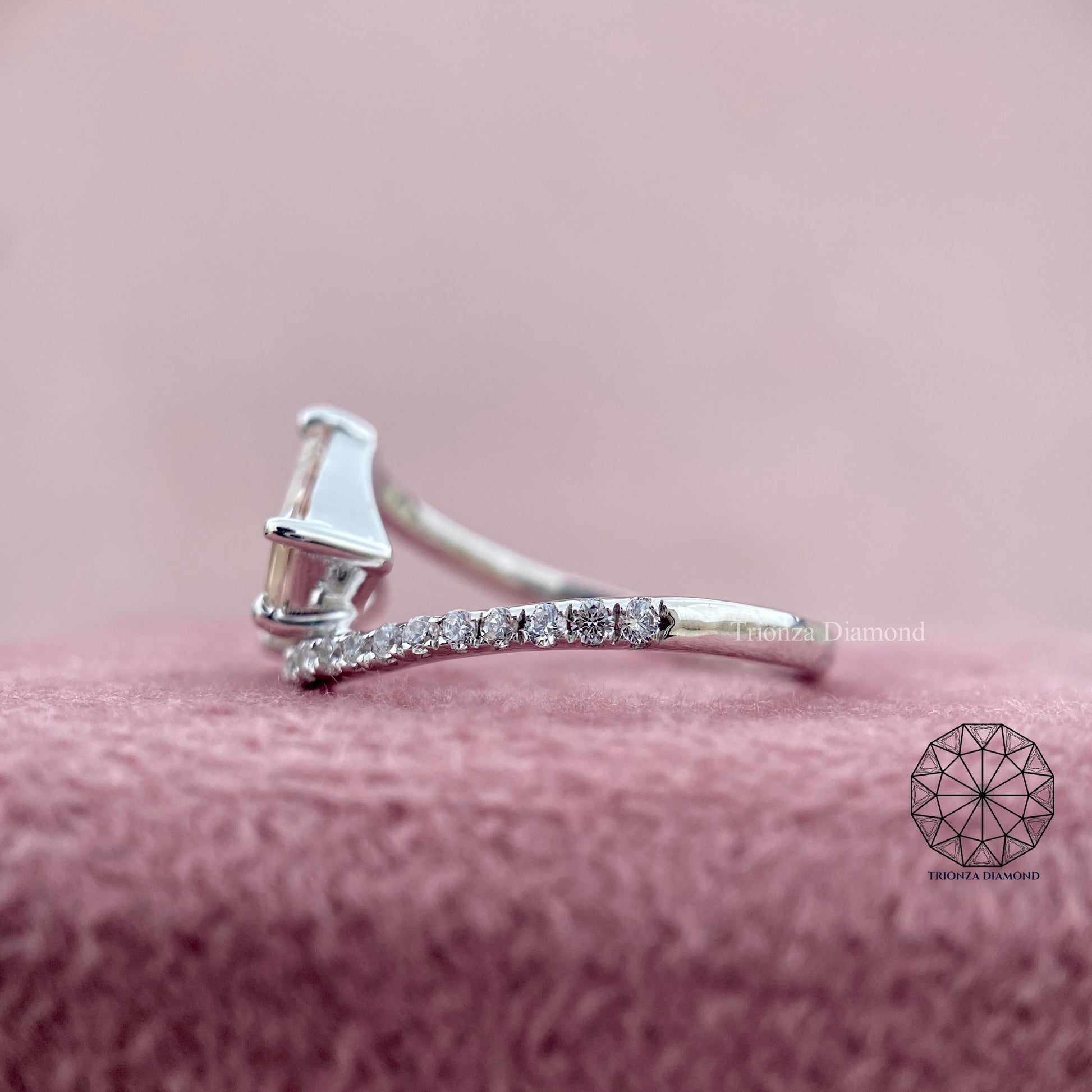 Discover this exquisite 1.49 CT Modified Trillion Rose Cut Lab Grown Diamond Engagement Ring, IGI Certified. Featuring a stunning bypass shank with pave-set lab diamonds, this unique piece from Trionza Diamond is perfect as a modern wedding ring or an elegant bridal ring. All our diamonds are 100% pure lab-grown (CVD acceptable worldwide IGI).