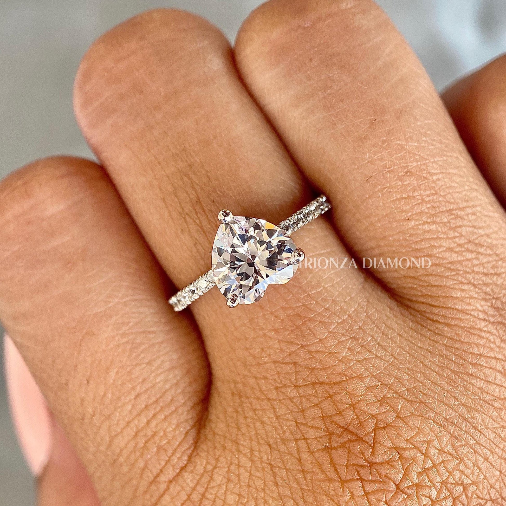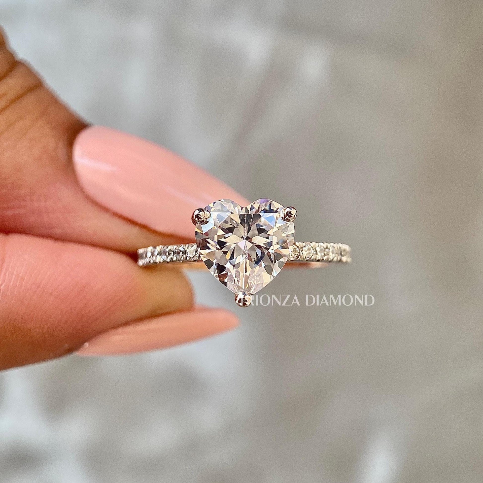 1.5 CT Heart Lab Grown Diamond Pave Engagement Ring 14K White Gold