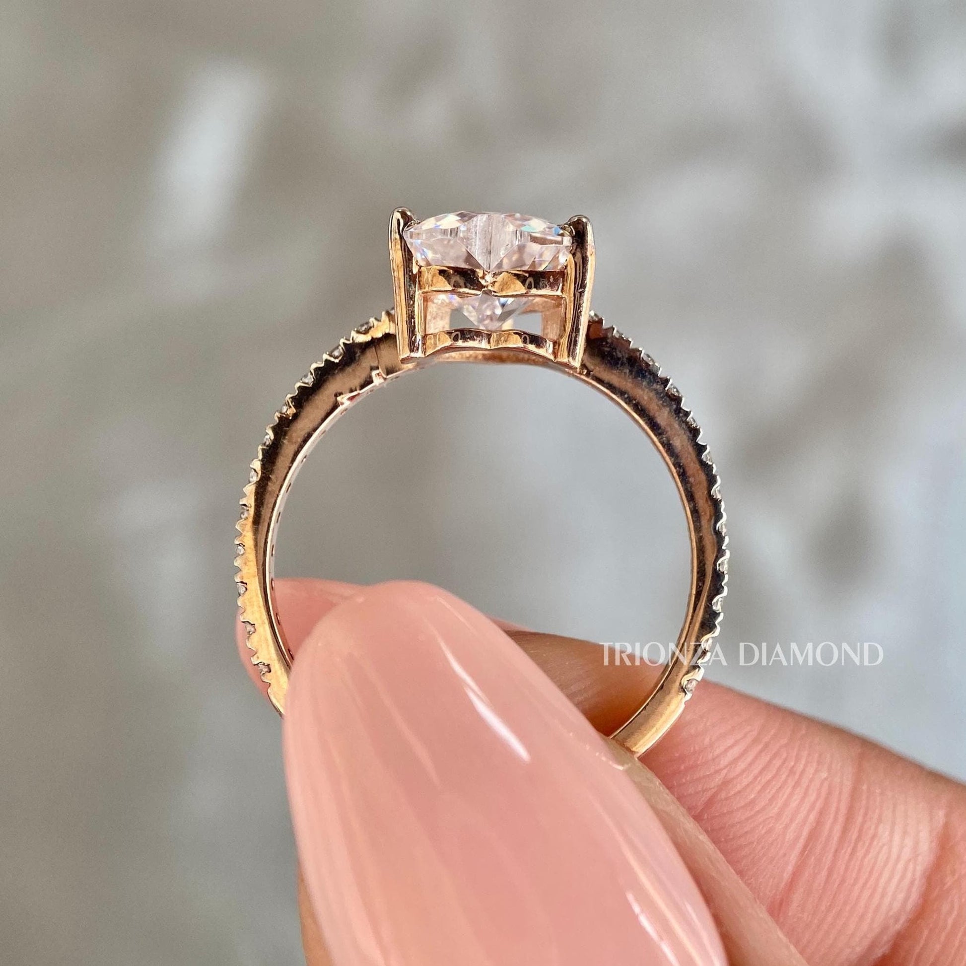 This exquisite 1.5 CT Heart Shape D/VVS2 Lab Grown Diamond Pave Set Engagement Ring is crafted in 14K White Gold, perfect for an engagement, anniversary, or wedding. Featuring a beautiful heart-cut lab created diamond, this unique and conflict-free ring is made with love by TRIONZADIAMOND.