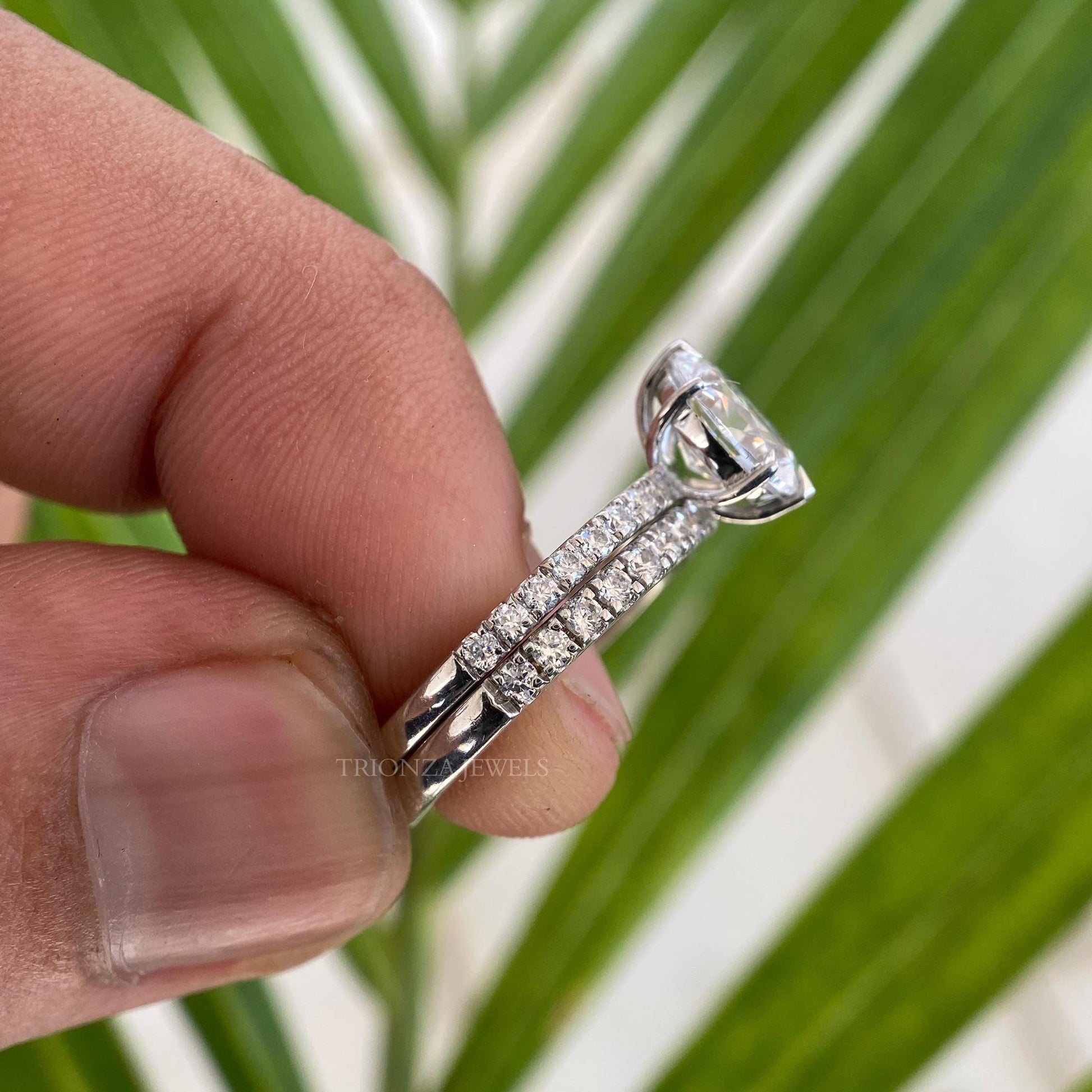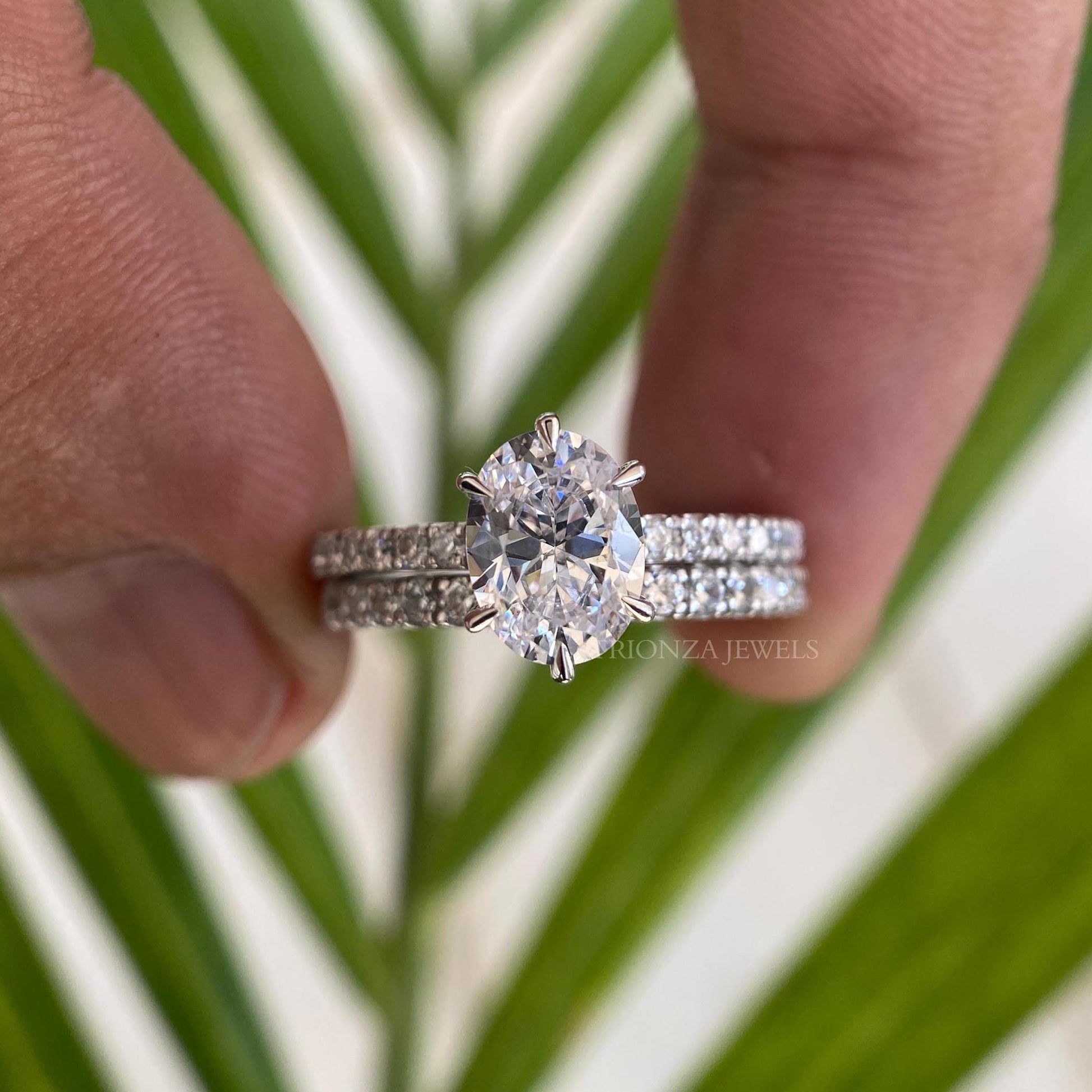 Presenting our exquisite 1.50 CT Oval Moissanite Bridal Set, a perfect symbol of love and commitment. This stunning set features a brilliant oval-cut moissanite, paired with a delicate flush eternity band, all crafted in elegant 14K Rose Gold. Ideal for engagements, weddings, anniversaries, or as a promise ring for her.