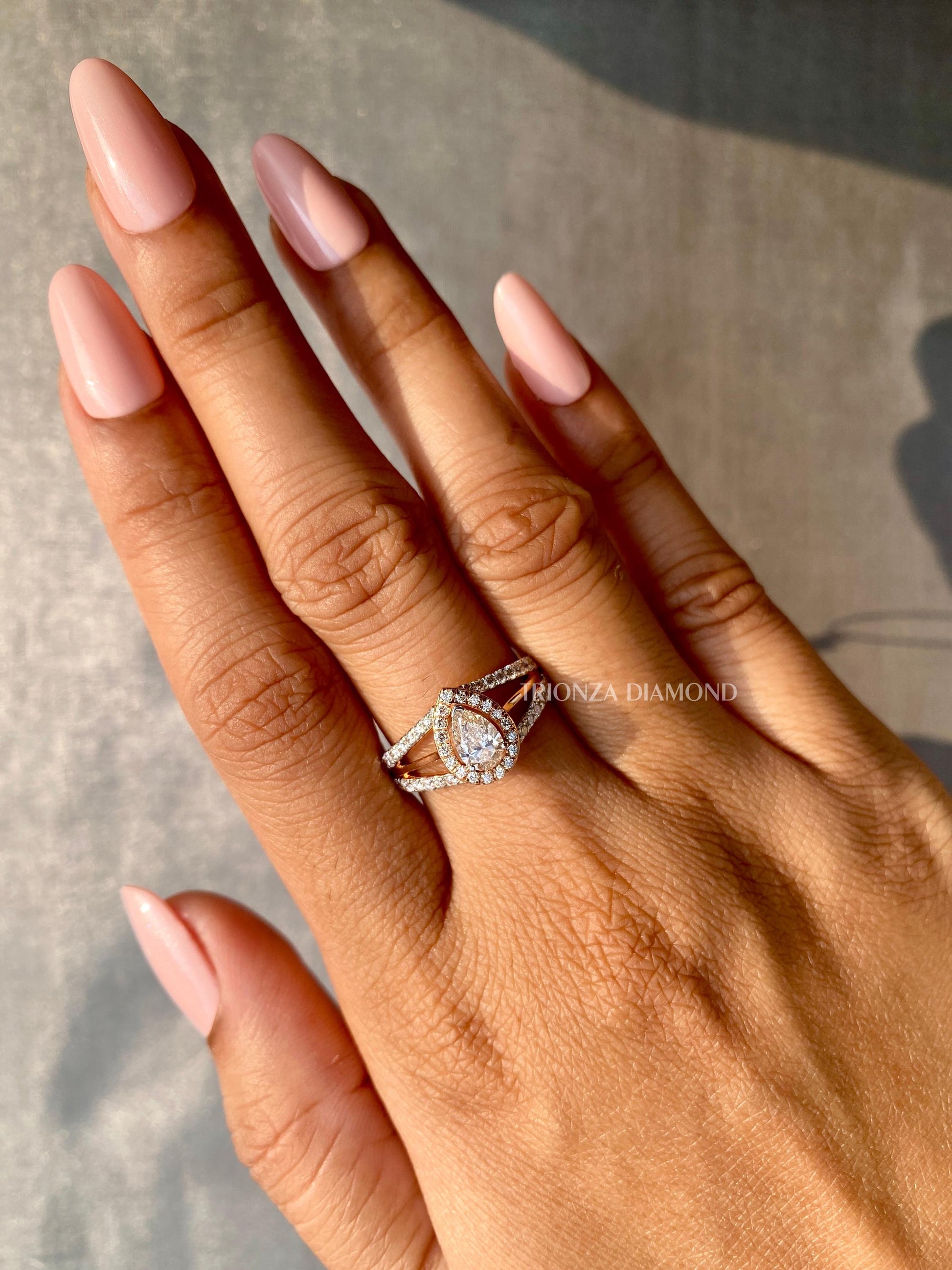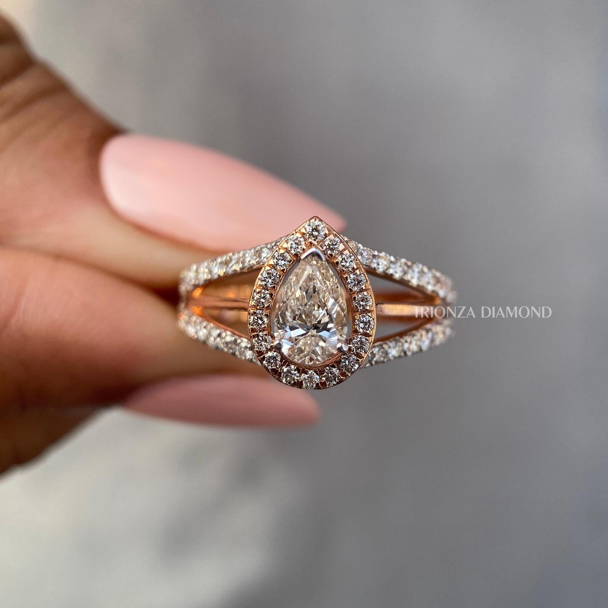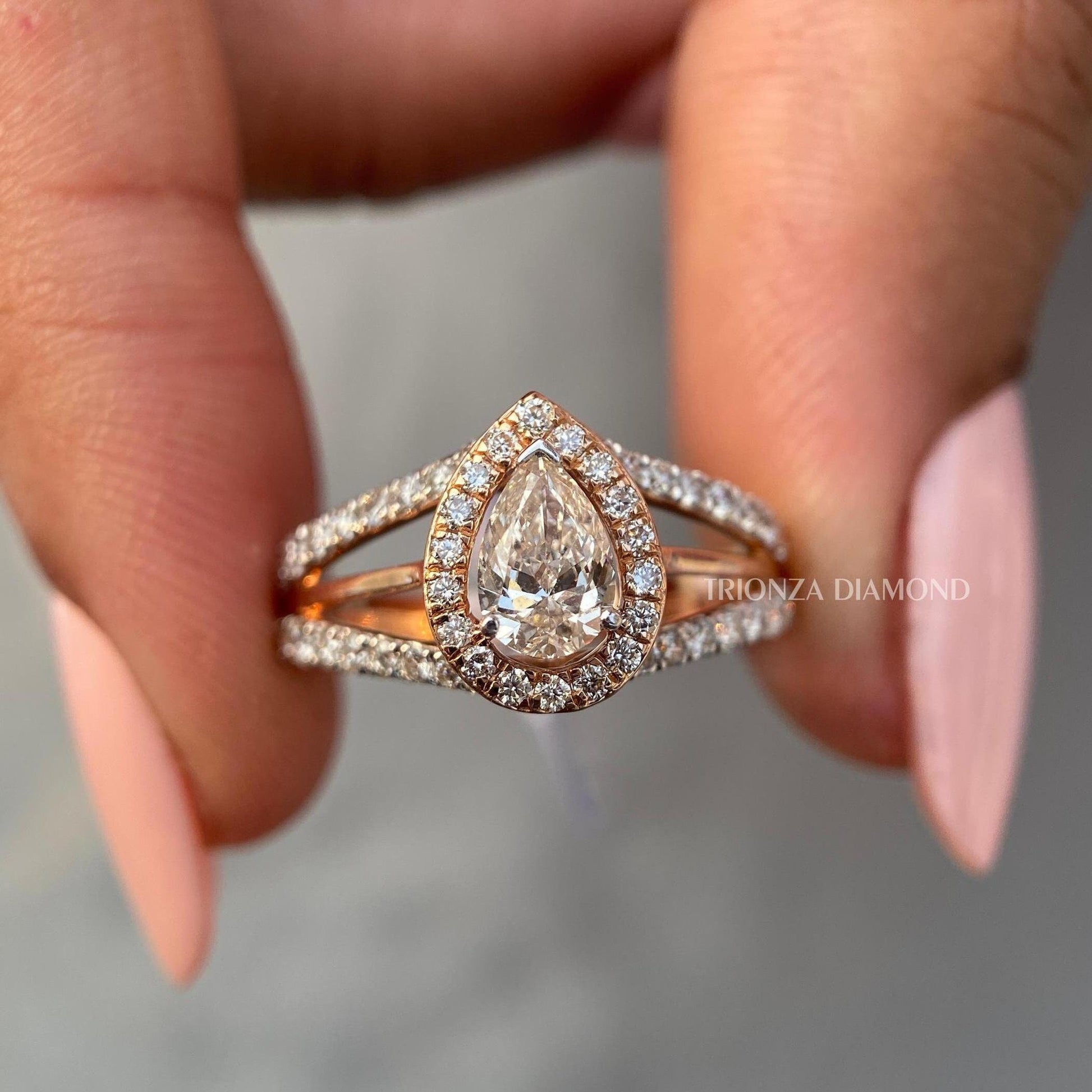 1.50 CT Pear Cut Lab Created Diamond Ring - 14k Gold Wedding Ring