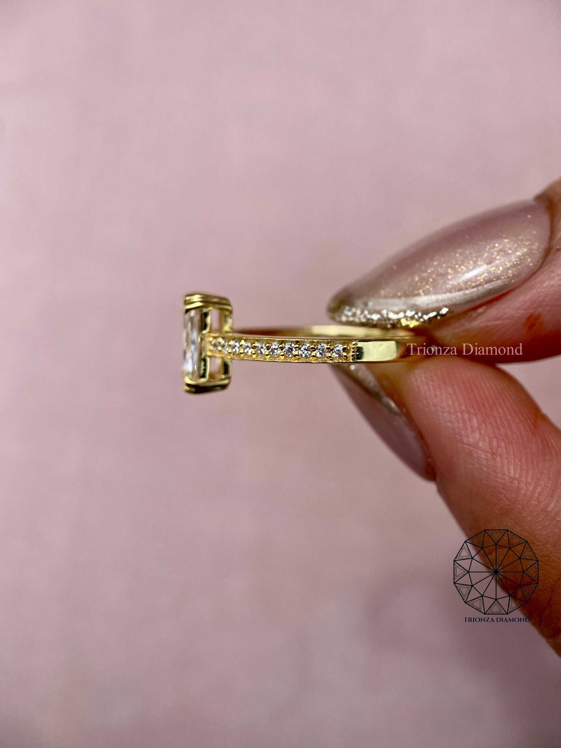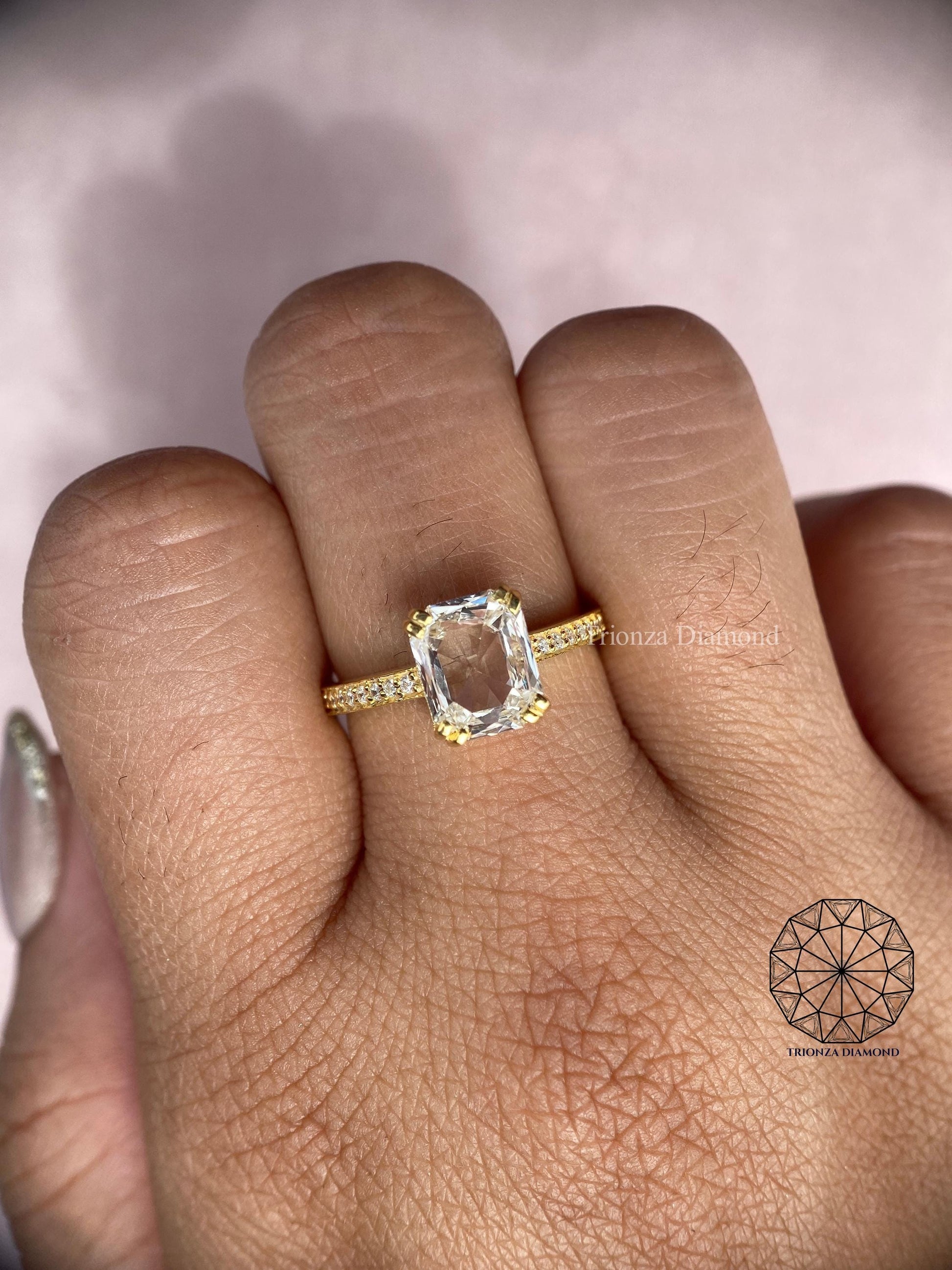 Discover the breathtaking 1.66 CT Emerald Rose Cut Lab Grown Diamond Solitaire Ring, IGI Certified for exceptional quality. Designed for the modern bride, this elegant piece features sculpted claws and a brilliant pave band, perfect as an engagement, wedding, or gift ring.