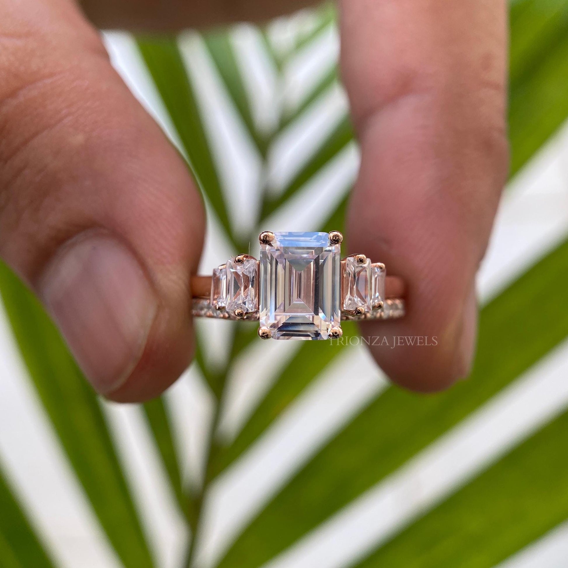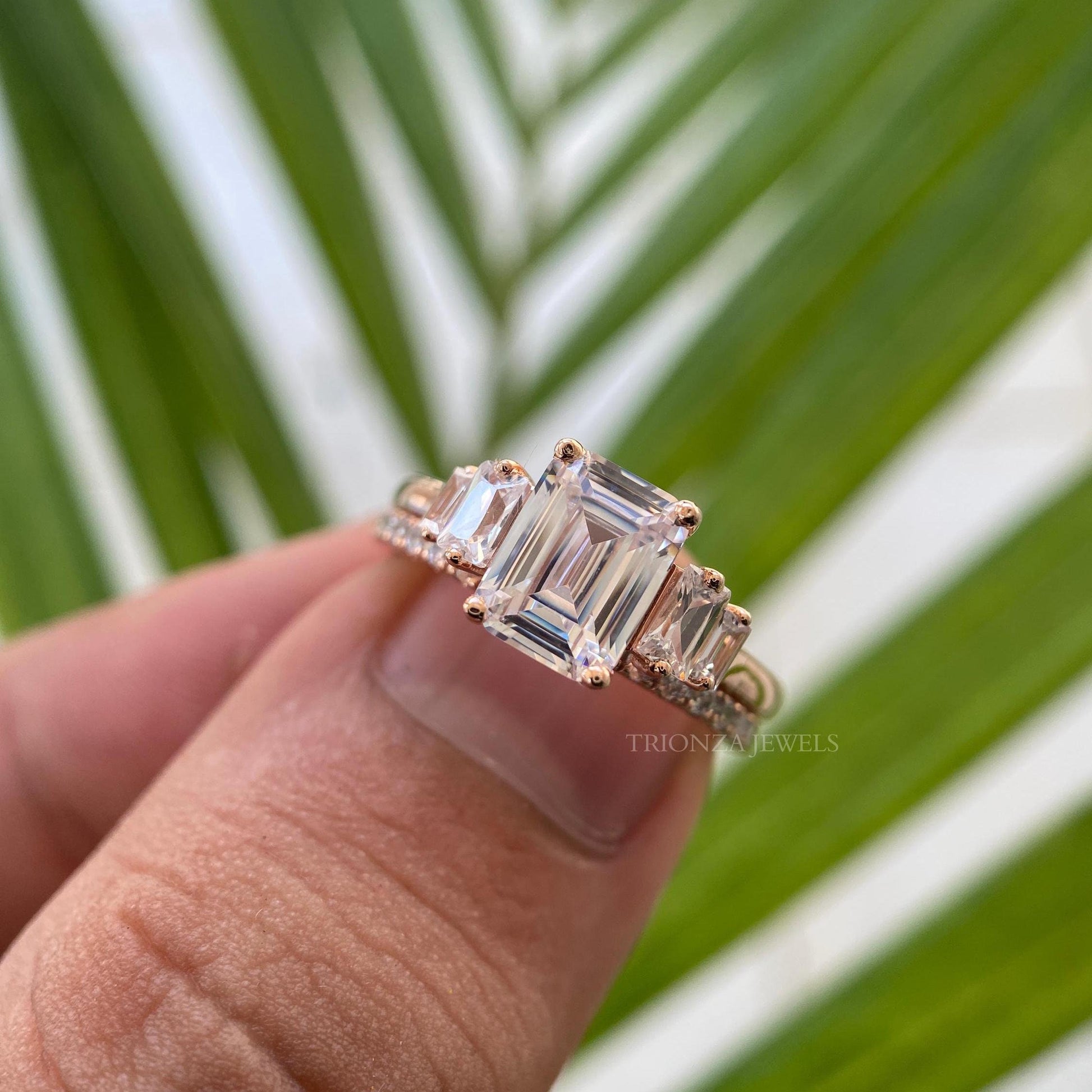 1.75 CT Emerald Cut Moissanite Bridal Set - Wedding Engagement Ring