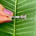 This exquisite 1.75 TCW Moissanite Solitaire Pave Ring features a brilliant round cut moissanite diamond set in 10K gold. It's a classic and minimalist design, perfect as an engagement ring, promise ring, or wedding ring for her.