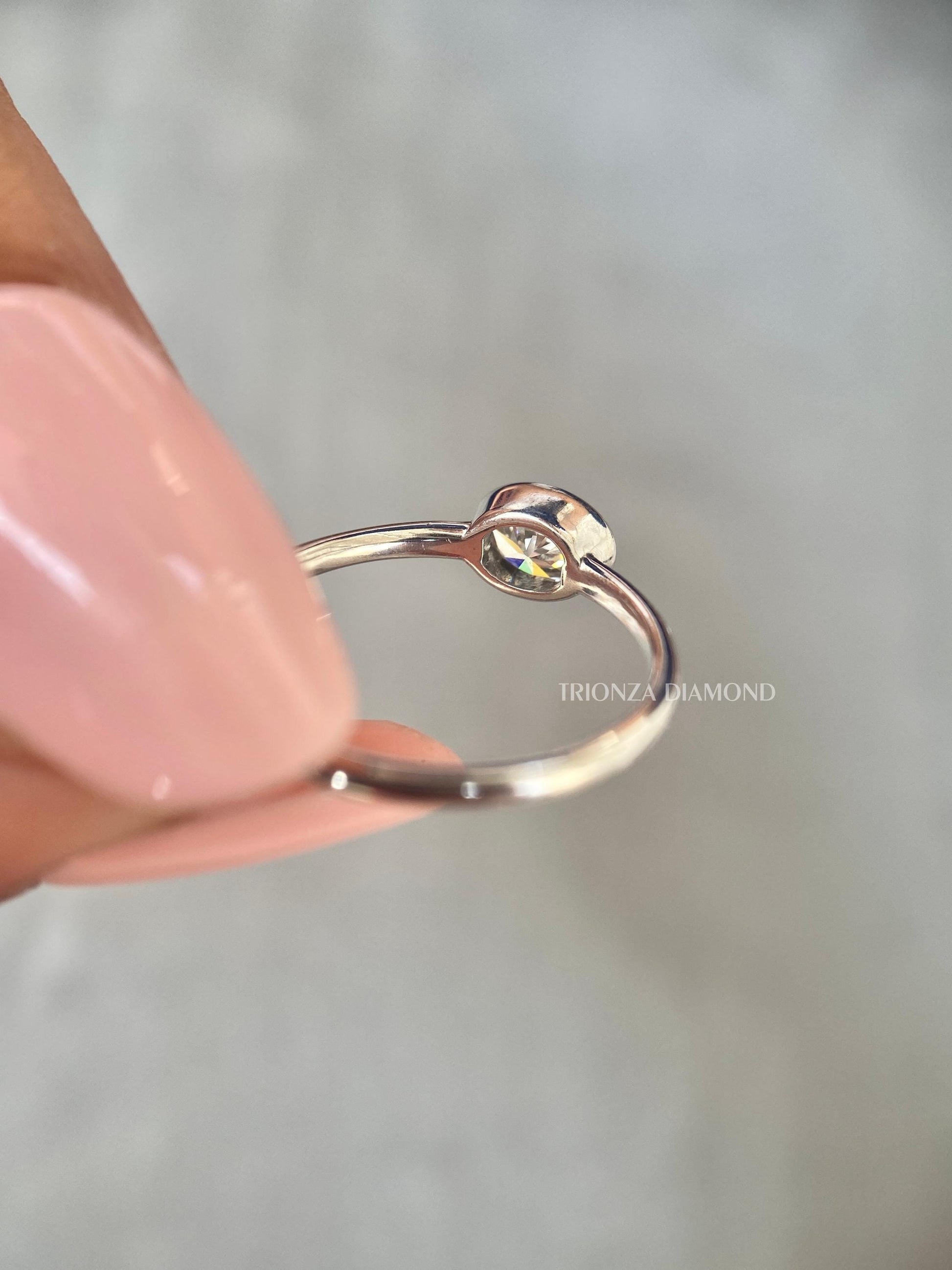 Discover our exquisite 1 CT Brilliant Cut Oval Lab Diamond Solitaire Ring, a perfect symbol of love. This stunning engagement ring features a D color, VVS2 clarity lab-grown diamond, meticulously cut for exceptional brilliance. Each diamond is 100% pure lab-grown (CVD) and comes with IGI certification, ensuring quality and authenticity.