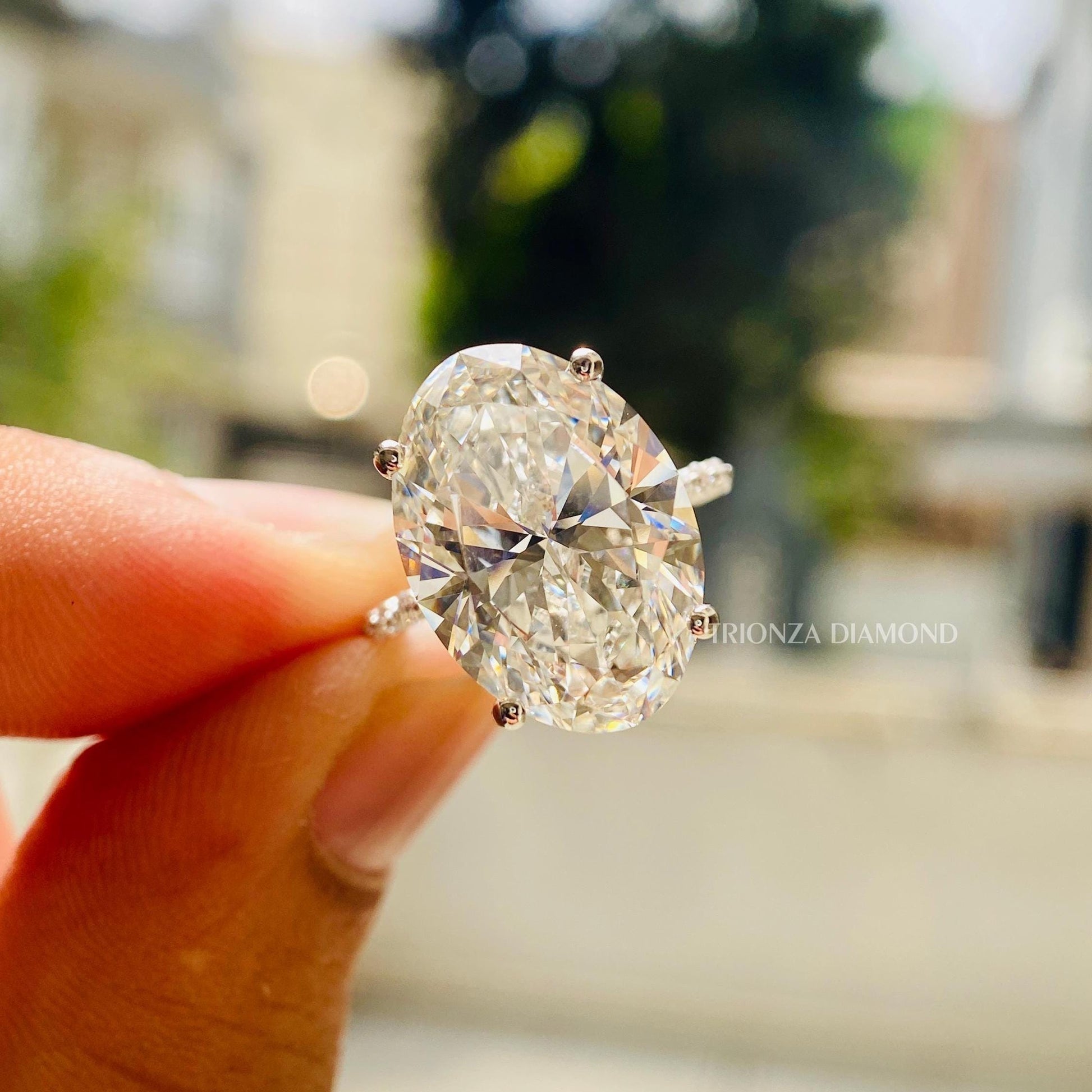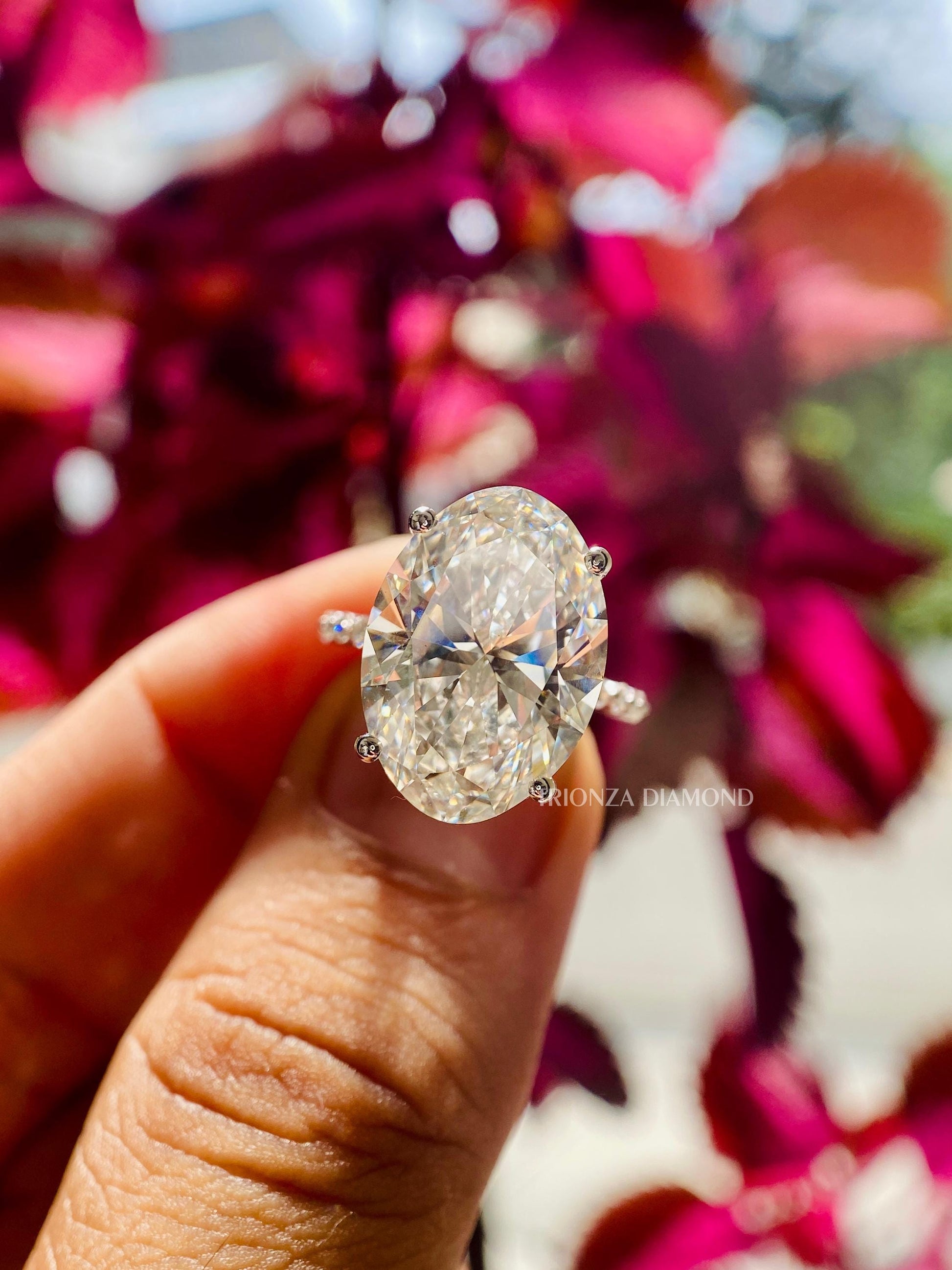 10 CT Oval Lab Grown IGI Certified Diamond Ring - F/VS1 Anniversary