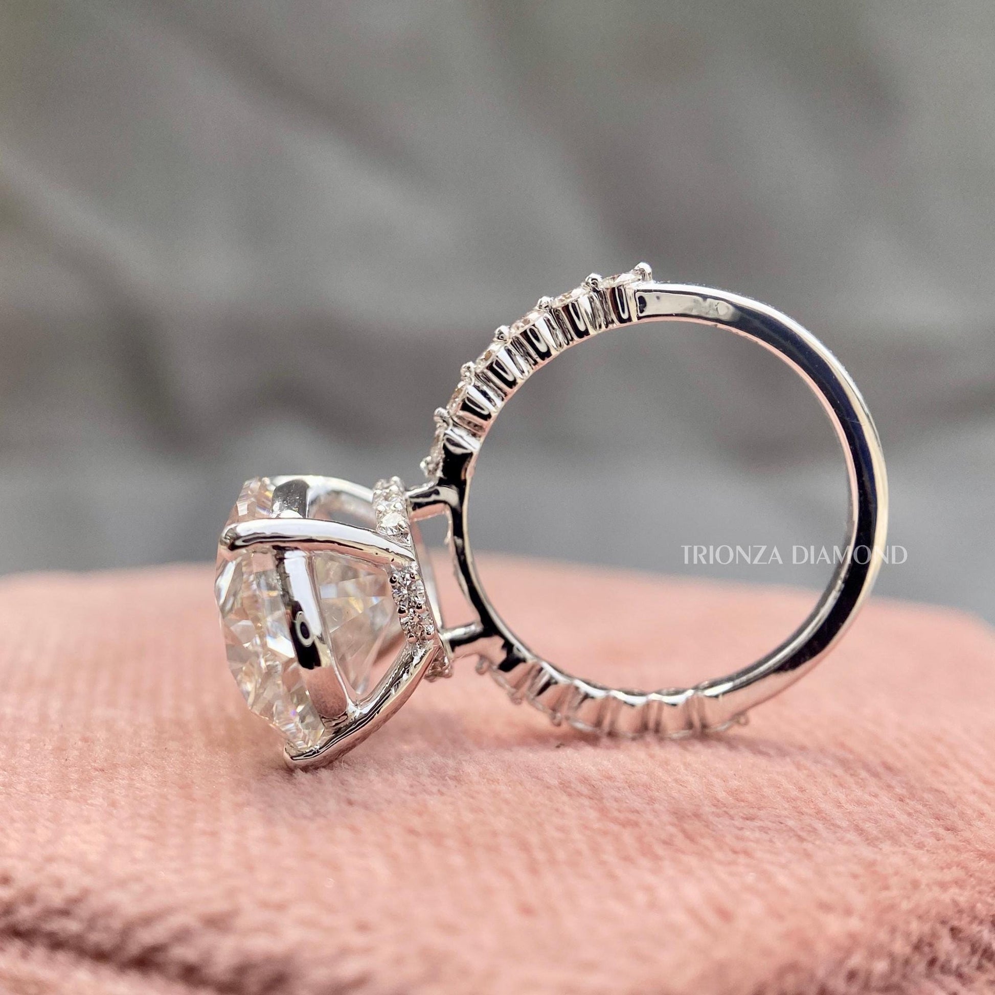 This exquisite 10 CT Oval Lab Grown IGI Certified Diamond Ring is a perfect choice for an anniversary or wedding. Crafted with F/VS1 quality, it's an eco-friendly and conflict-free diamond jewelry option for her.