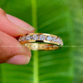 Celebrate your love with this elegant 14k Gold Channel Set Diamond Wedding Band. This full eternity ring features brilliant 3.0 MM round moissanite diamonds, perfect as a wedding band, engagement ring, or a beautiful stacking band.