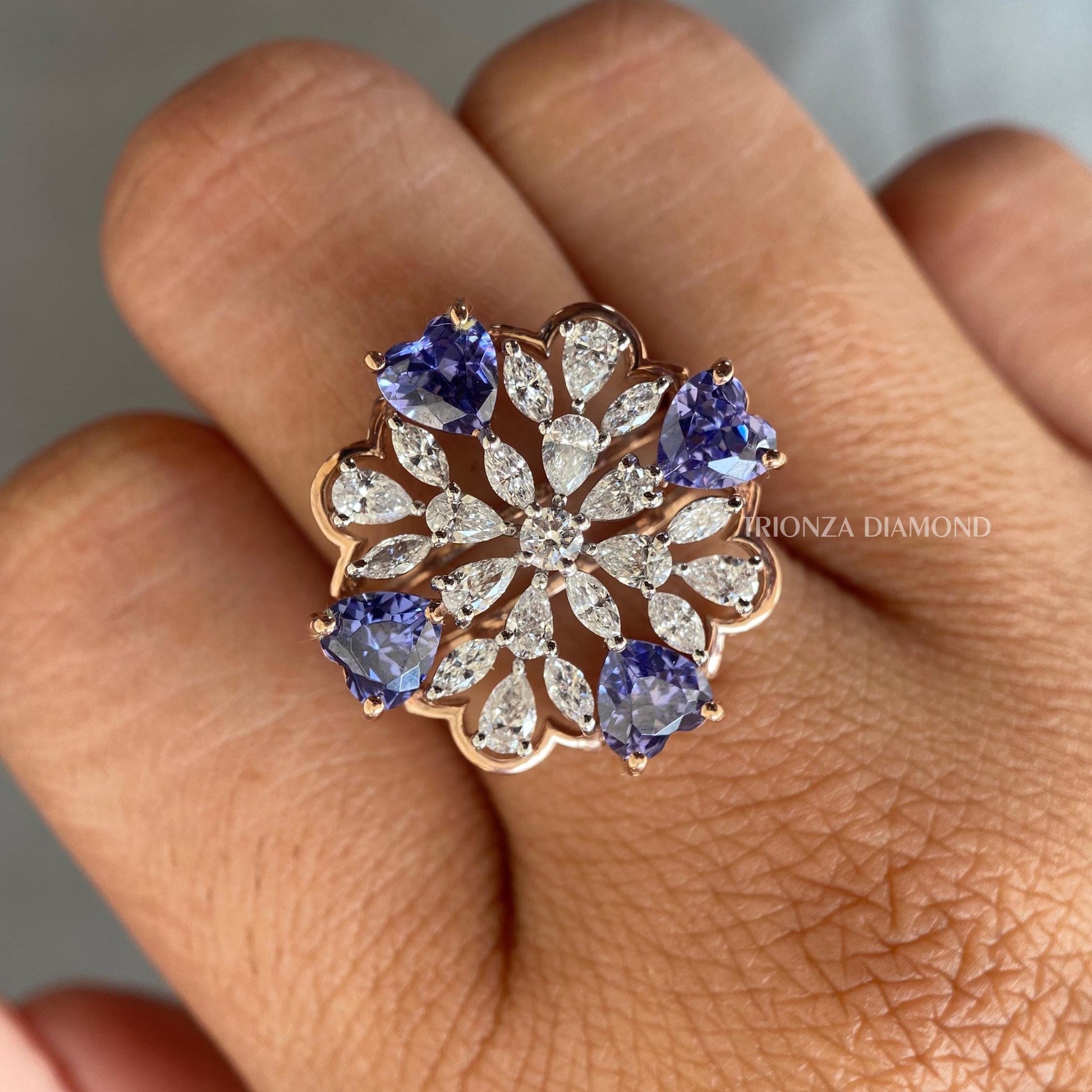 Discover our stunning 14K Solid Gold Cluster Ring, featuring a captivating blend of Marquise, Pear, and Heart Cut stones. This exquisite piece combines brilliant Lab Grown Diamonds with a vibrant Blue Moissanite, making it an ideal choice for a wedding, proposal, anniversary, or a special gift for her. Embrace eco-friendly and conflict-free diamond jewelry with this unique design.