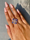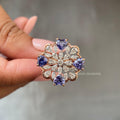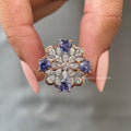 14K Gold Cluster Lab Grown Diamond & Blue Moissanite Ring