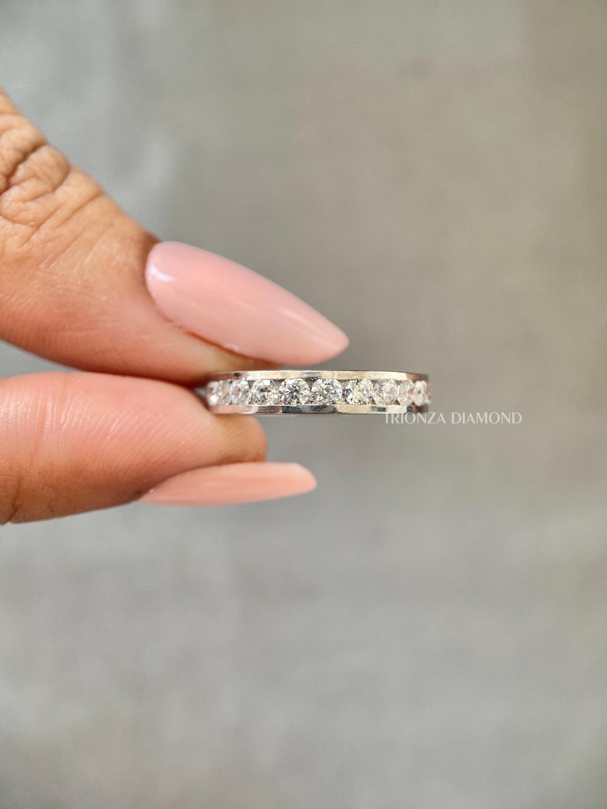 Elevate your style with this exquisite 14k Solid Gold Eternity Channel Set Band. Featuring stunning 3.00 MM round IGI Lab Grown Diamonds (DE/VVS-VS), this ring is a perfect choice for a wedding band, anniversary gift, or a beautiful statement piece. Designed for women, it's a stackable, eco-friendly, and conflict-free diamond ring.