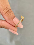 Discover our exquisite 14k Gold Minimalist Curved Wedding Band, featuring ethical Lab Grown Diamonds. This dainty stacking ring is perfect for women seeking a thin, elegant nesting band or a matching solid gold ring.