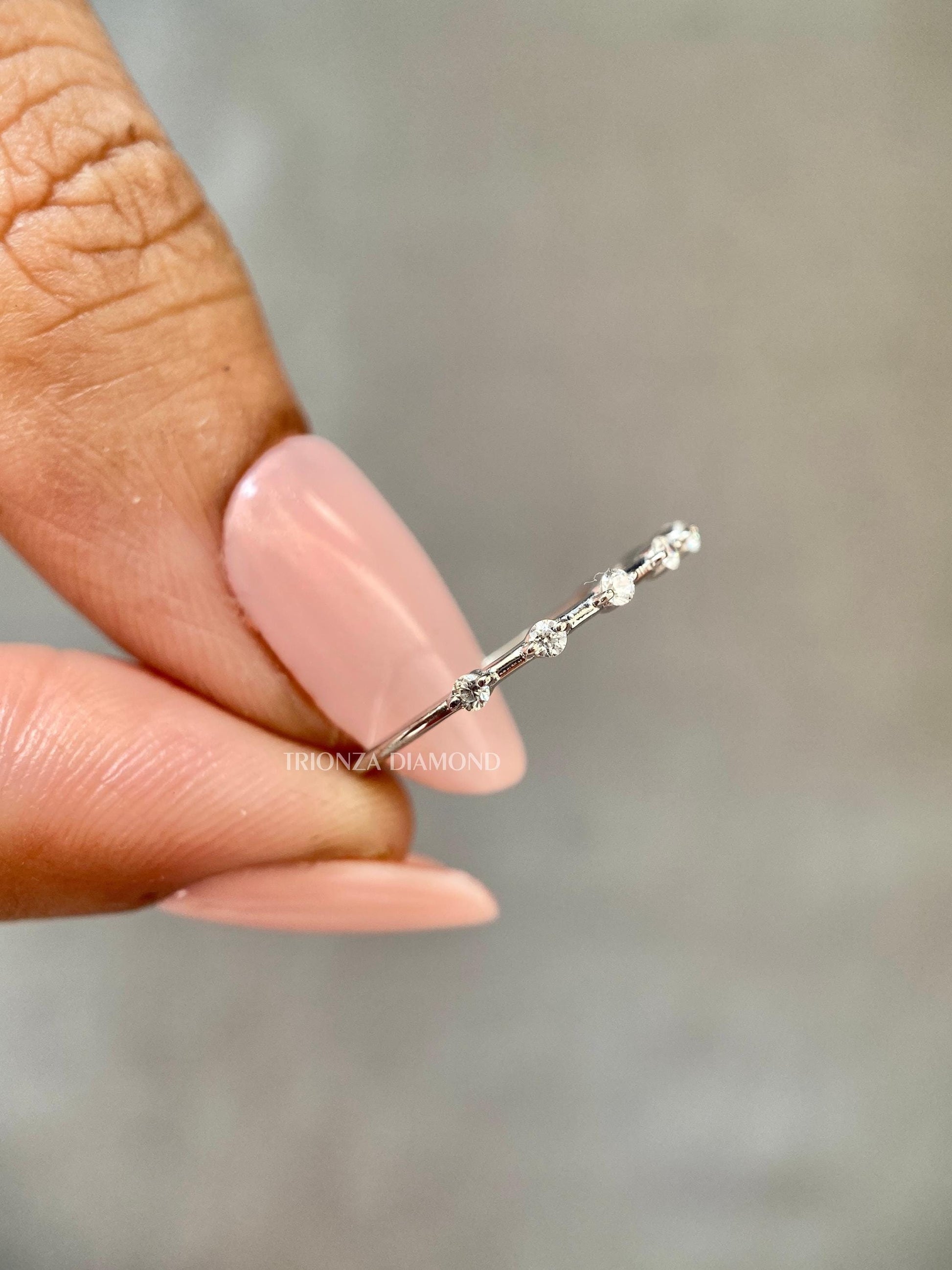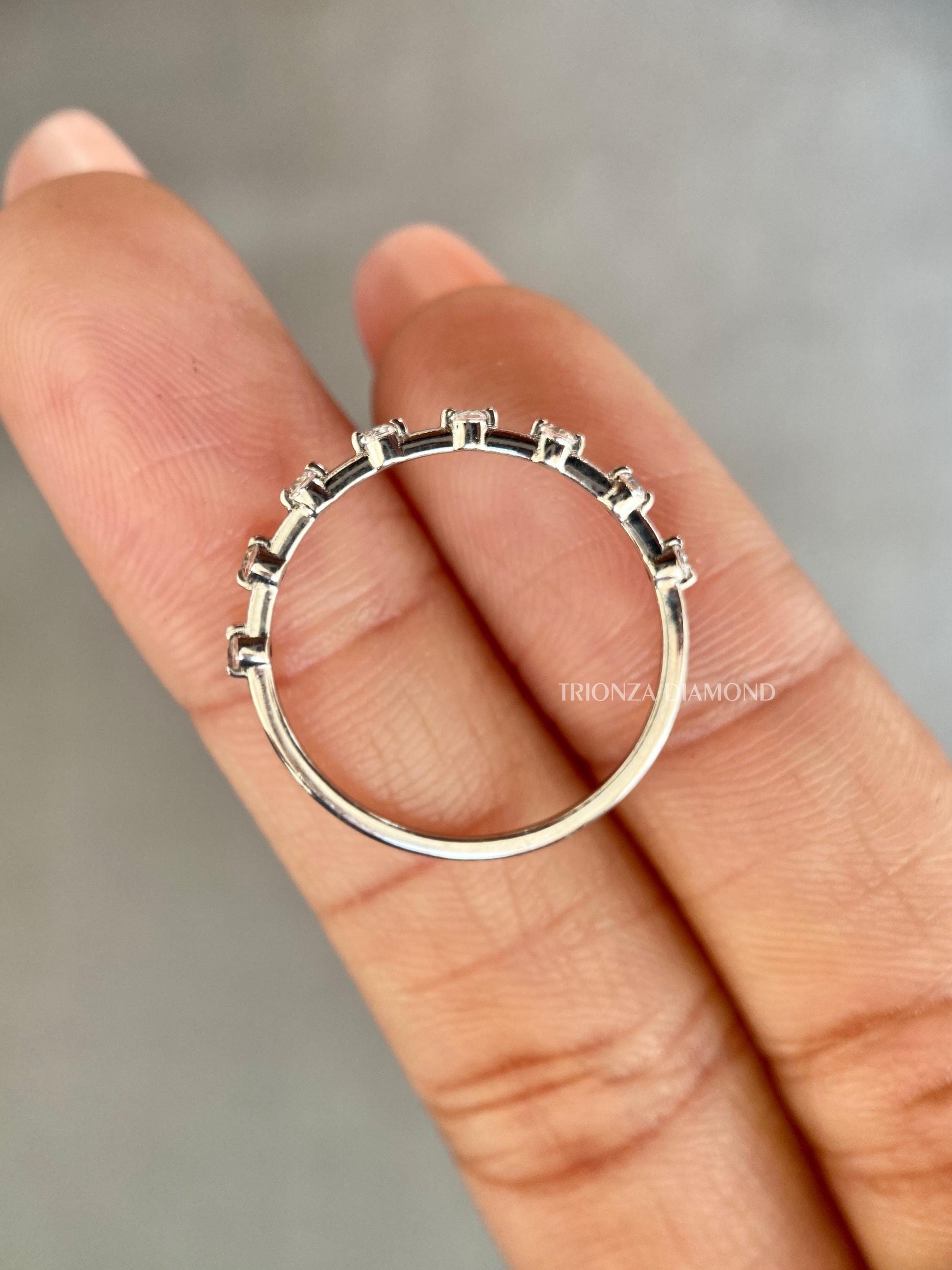 Discover our exquisite Round Cut Lab Created Diamond Half Eternity Band, a stunning 1.50 MM wedding or matching band crafted from 14K Gold. Perfect as a bridesmaid gift, anniversary ring, or a beautiful proposal piece, this stackable ring features DE/VVS-VS lab-created diamonds. Our eco-friendly and conflict-free lab-grown diamonds offer a premium, ethical alternative to mined diamonds.