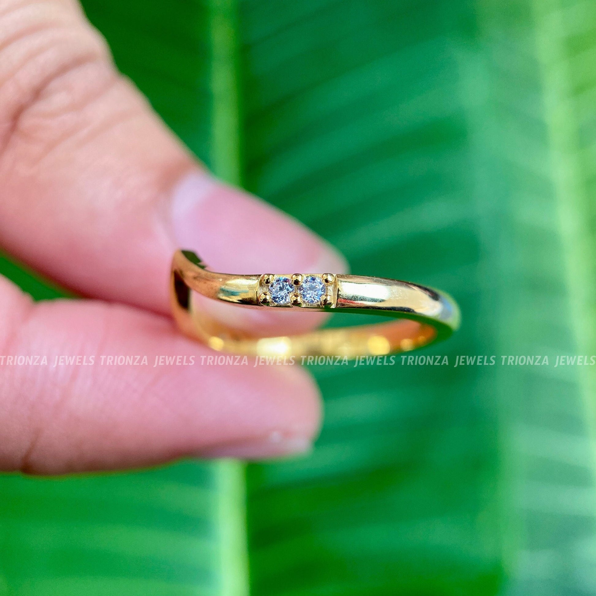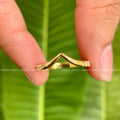 This exquisite 14k Solid Gold Dainty V Wedding Band features brilliant Moissanite diamonds, perfect as a curved wedding band, chevron ring, or contour band. Crafted to symbolize your unique journey, this ring offers both elegance and ethical sourcing.