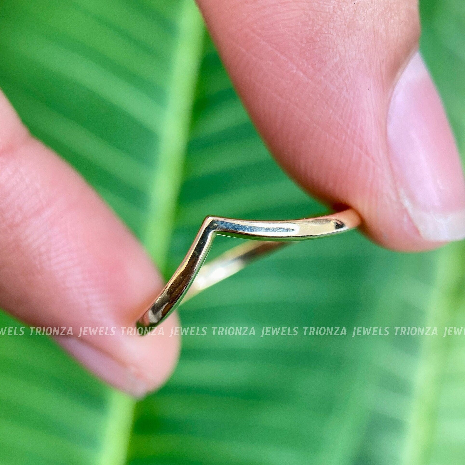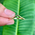 Discover our elegant 14k Gold Wishbone Chevron Ring, perfect for stacking or as a delicate curved wedding band. This solid gold V-shaped ring offers a modern and sophisticated touch for any woman's jewelry collection.