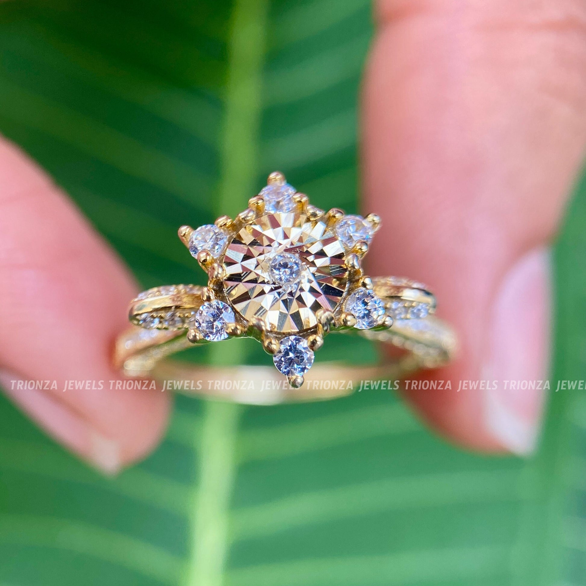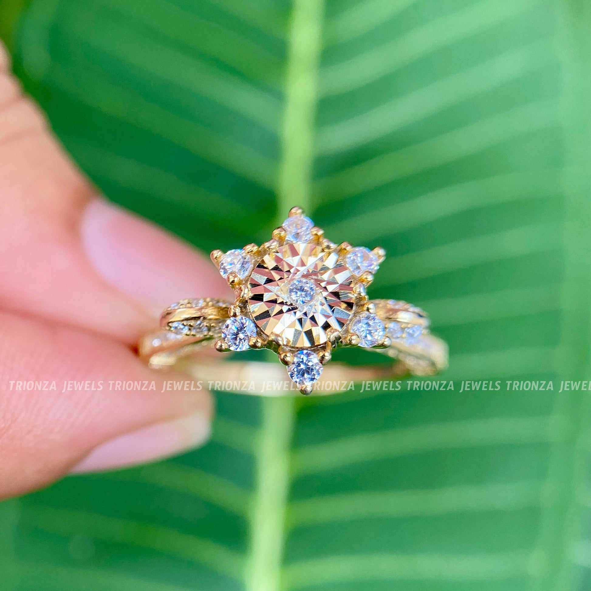 Discover our exquisite Diamond Cluster Ring, meticulously crafted in 14K Solid Rose Gold. This multi-stone Moissanite cluster ring serves as a unique and stunning engagement piece, perfect for those seeking a blend of elegance and modern design. Each ring is a handmade fine jewelry piece from TRIONZA JEWELS, designed to celebrate your unique style.