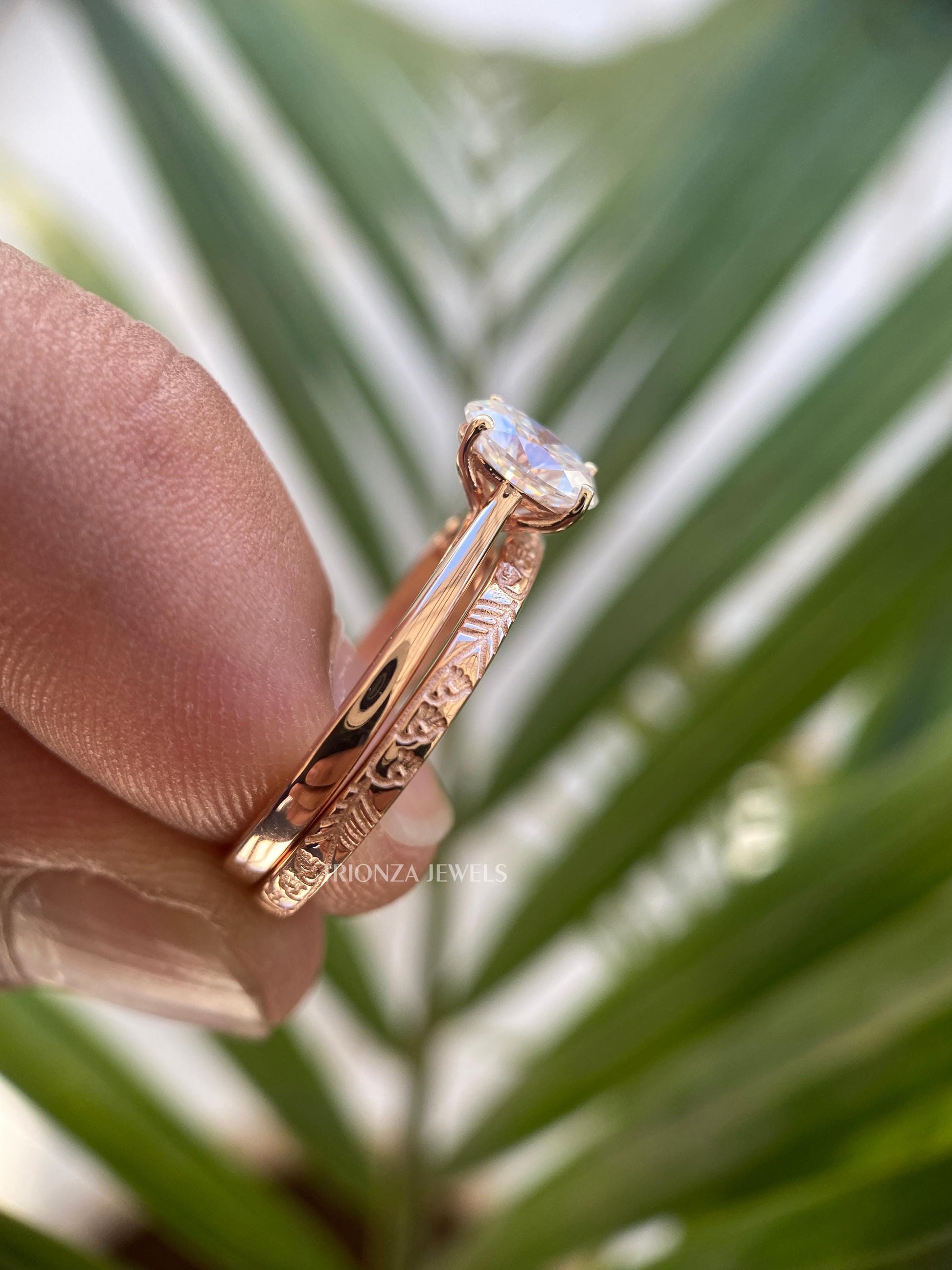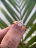 14K Rose Gold Oval Engagement & Wedding Ring Set - Promise Ring