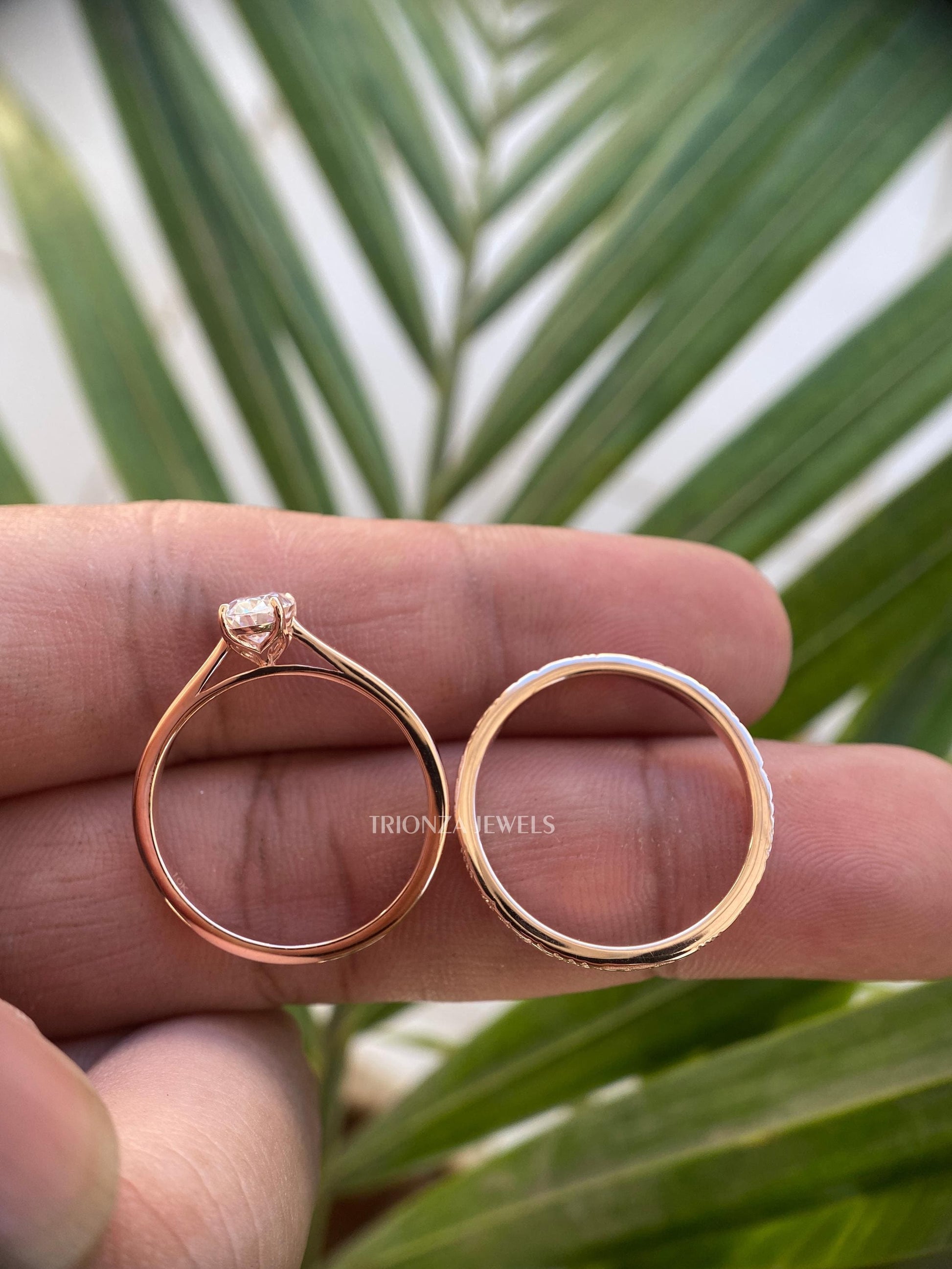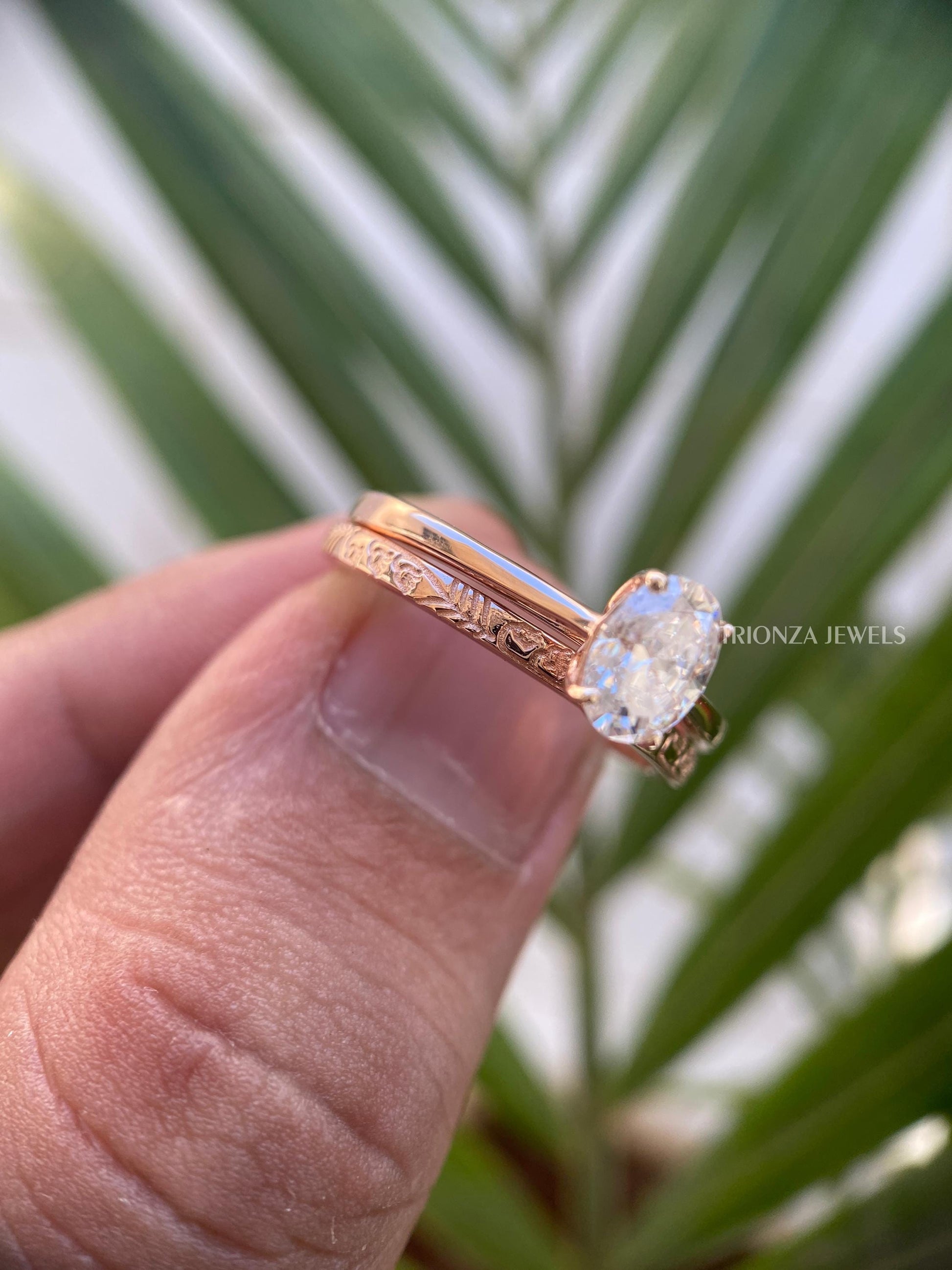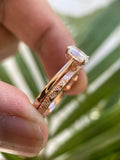 Celebrate your love with our exquisite 14K Rose Gold Oval Engagement Ring Set. This delicate bridal set features a stunning 5x8 MM oval solitaire ring paired with a plain gold wedding band, perfect as an engagement, promise, or anniversary ring. Each piece is handcrafted with precision and care.
