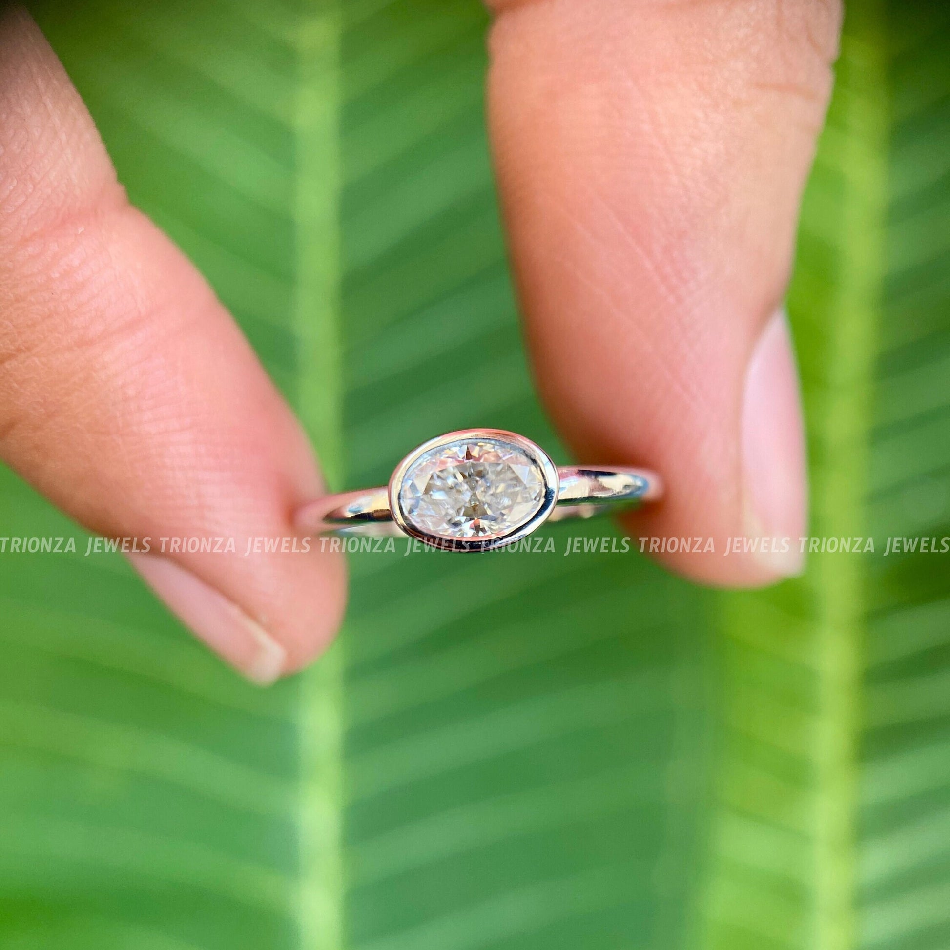 14K White Gold 0.50ct Oval Moissanite Bezel Engagement Ring