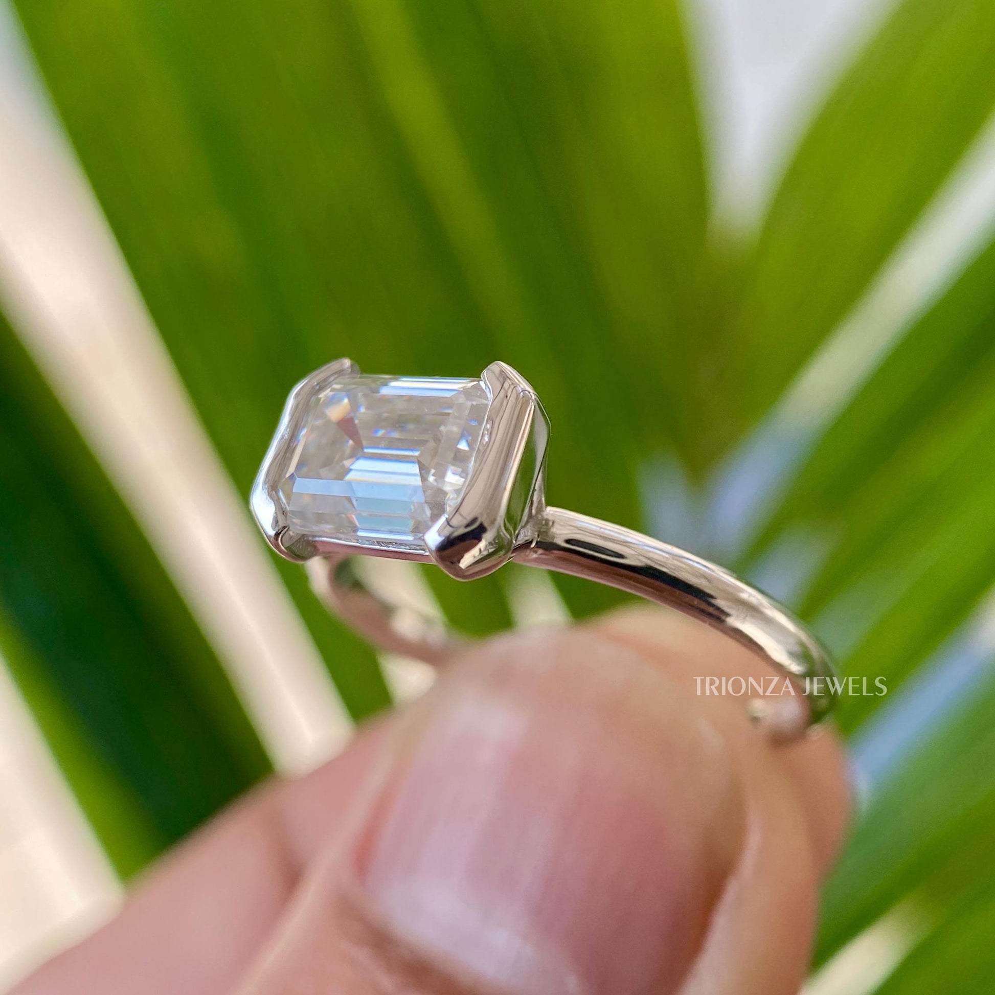 Discover our stunning 14K Gold Solitaire Ring, featuring a dazzling 1.5 CT Eat-West Champagne Emerald Cut Moissanite in a half bezel setting. This gorgeous piece makes an ideal Wedding Gift for Her, a captivating Art Deco Proposal Ring, a personalized Wedding Band for Women, or a thoughtful Christmas Handmade Jewelry gift. Perfect as a Moissanite Engagement Ring, this fine handmade jewelry reflects elegance and is a true trendsetter.