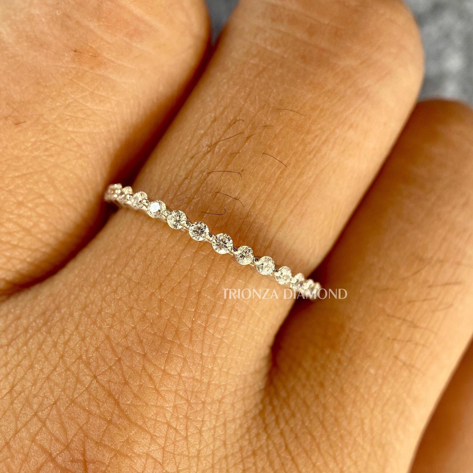 14k White Gold Lab Diamond Bubble Eternity Band | Wedding & Mom Gift