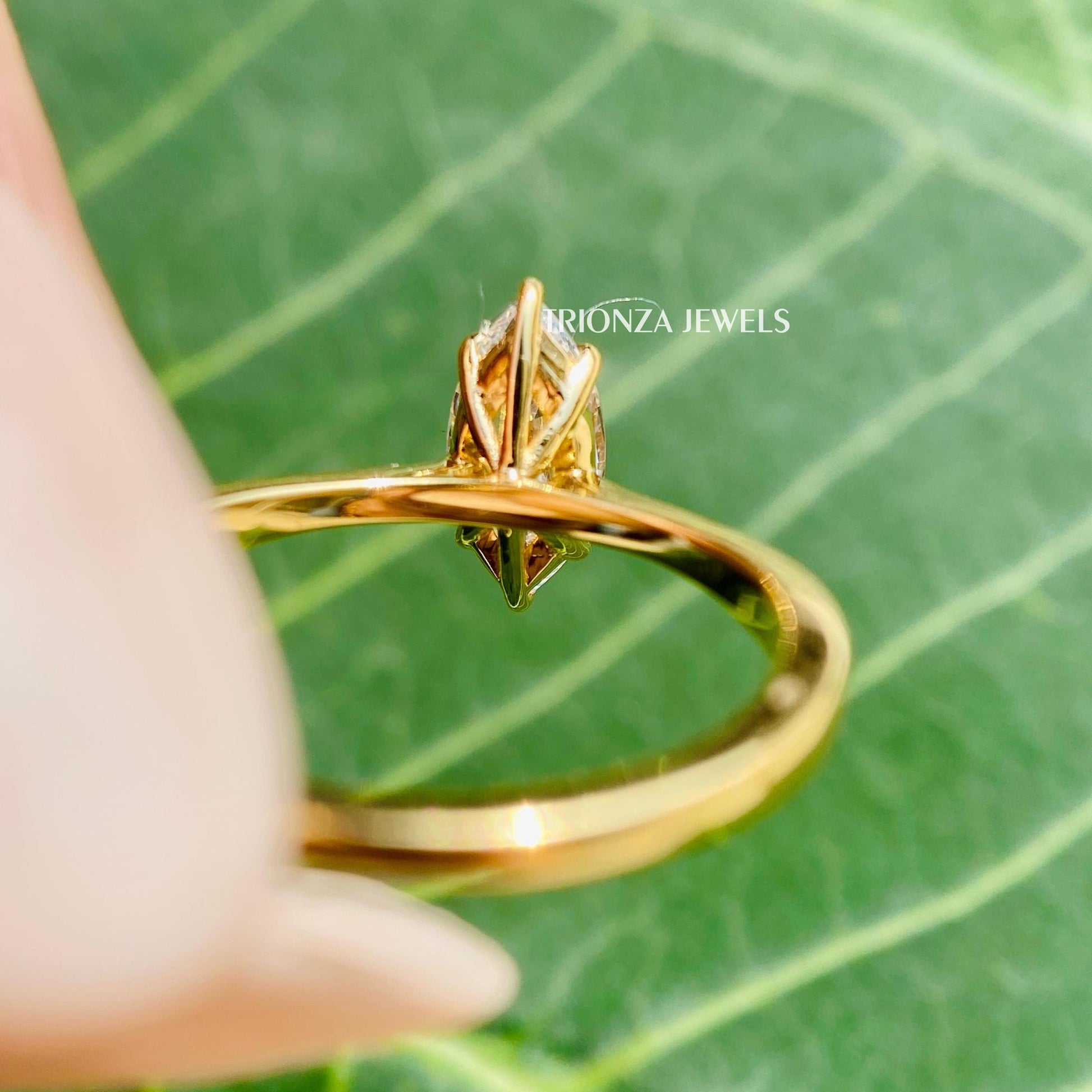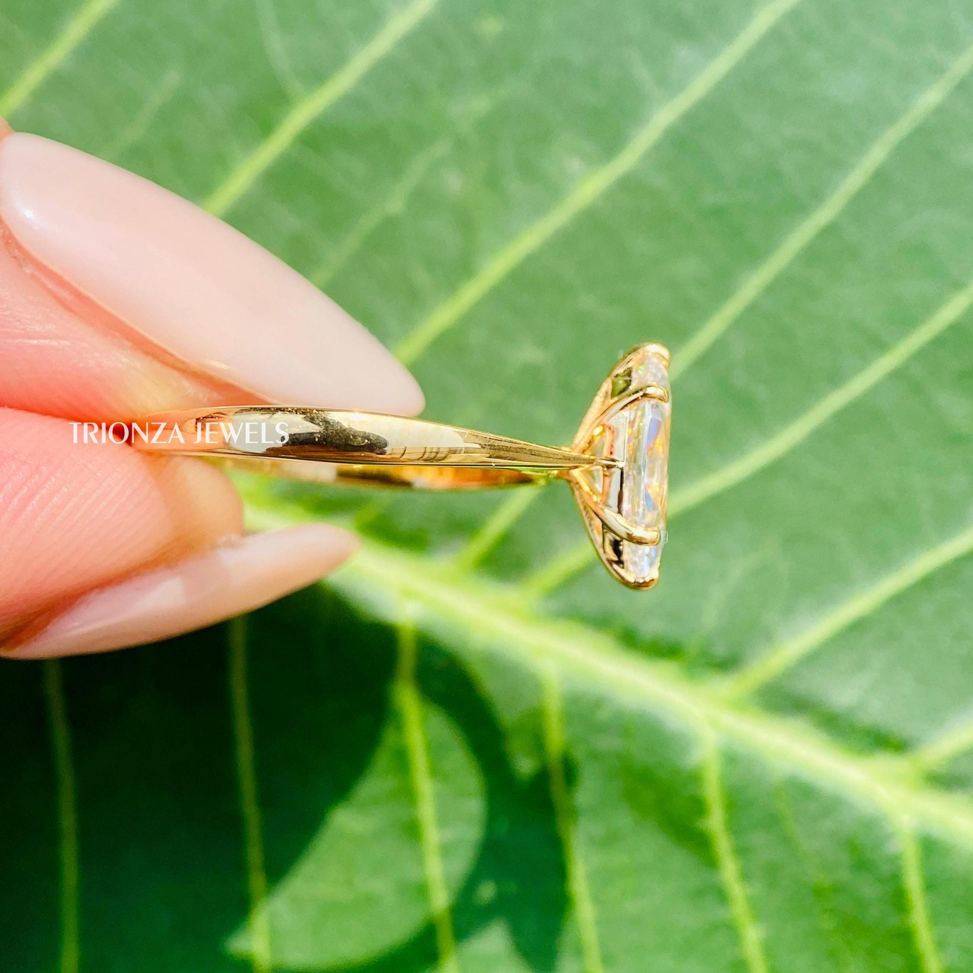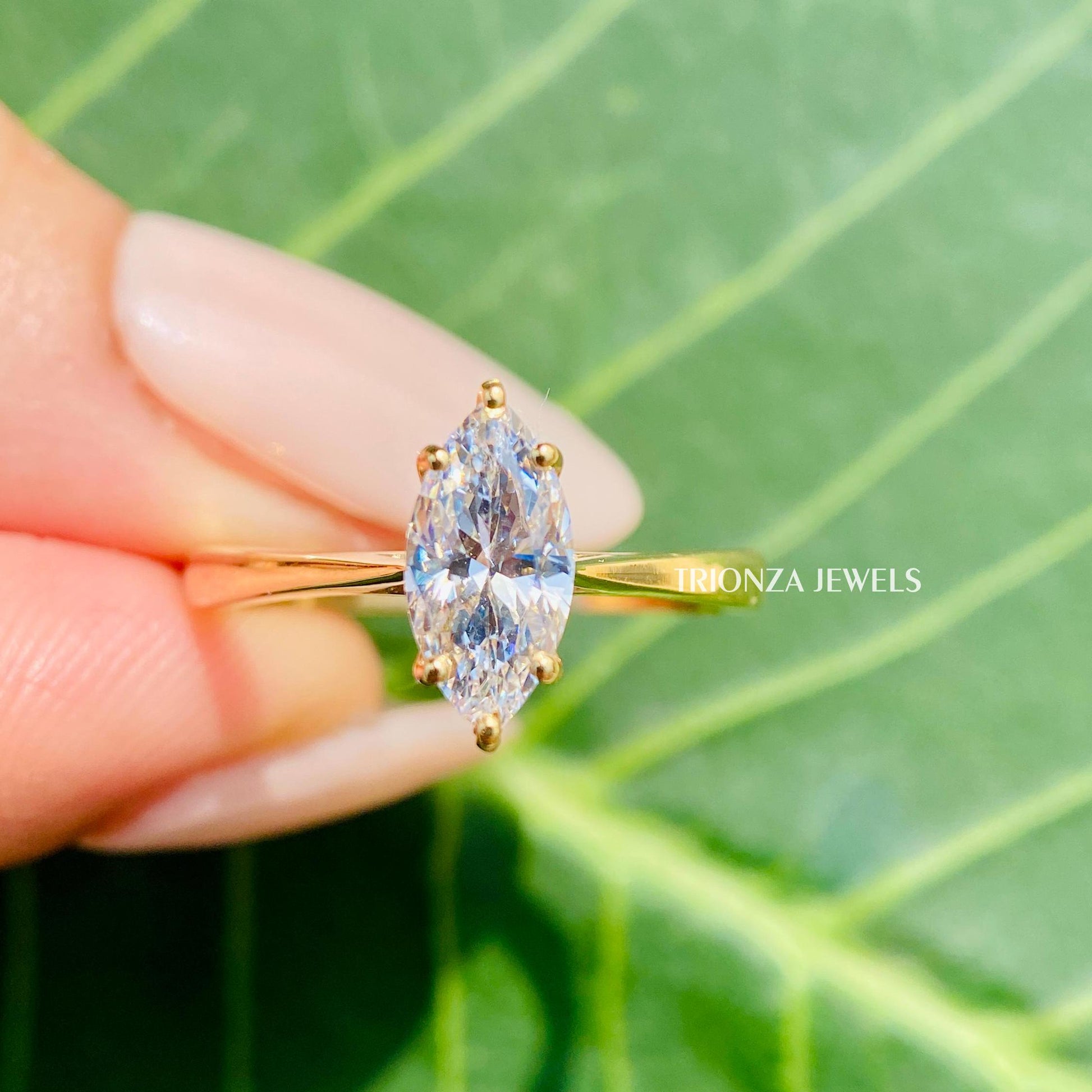 Celebrate your love with this stunning 14k Solid Yellow Gold Marquise Cut Solitaire Ring, featuring a brilliant 2.0 CT Marquise Cut Moissanite. This elegant wedding and anniversary ring boasts a classic cathedral band with secure 6 eagle prongs, making it a perfect symbol of commitment and a cherished anniversary gift.