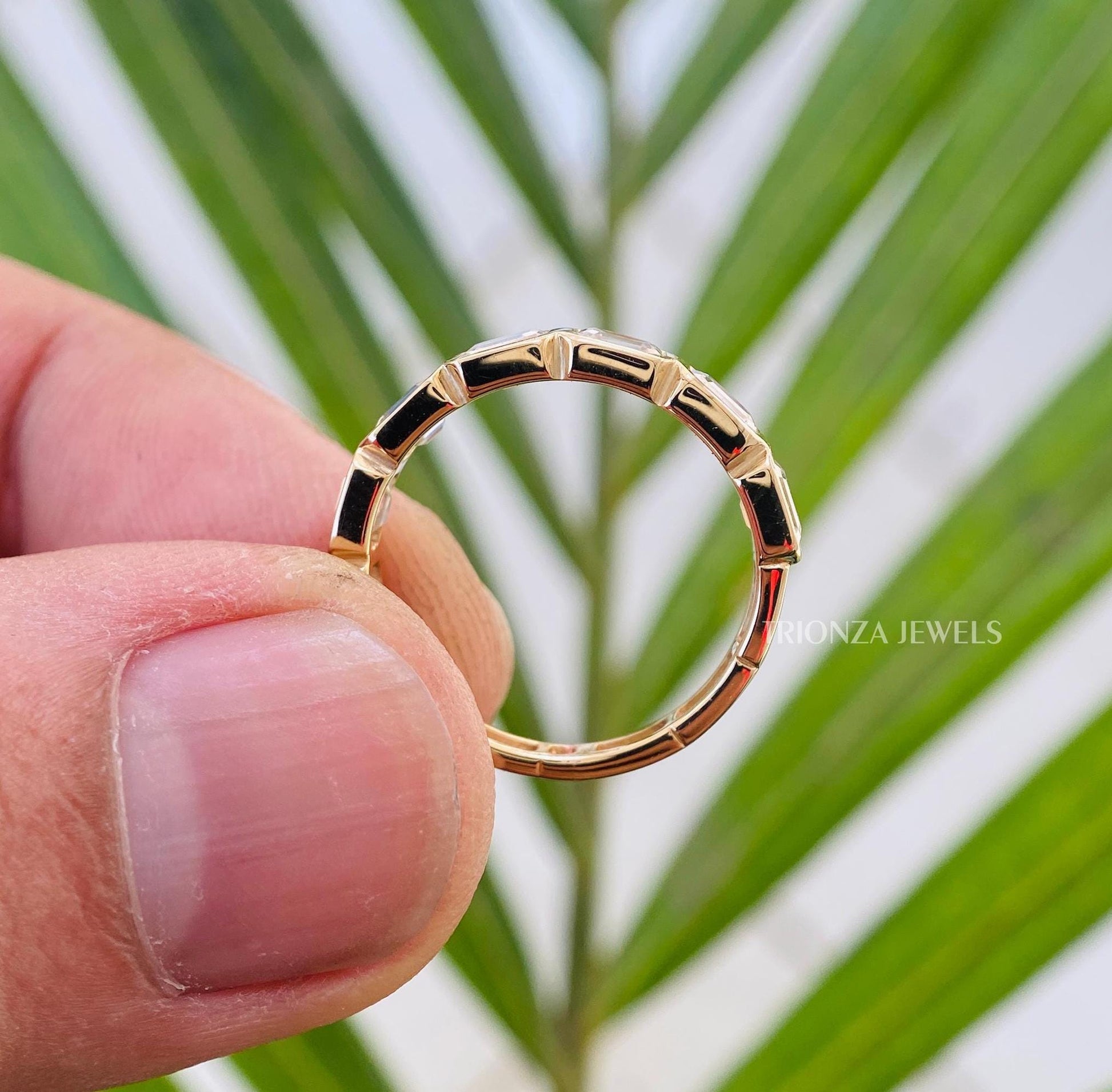14K Yellow Gold Emerald Cut Bezel Stacking Wedding Band