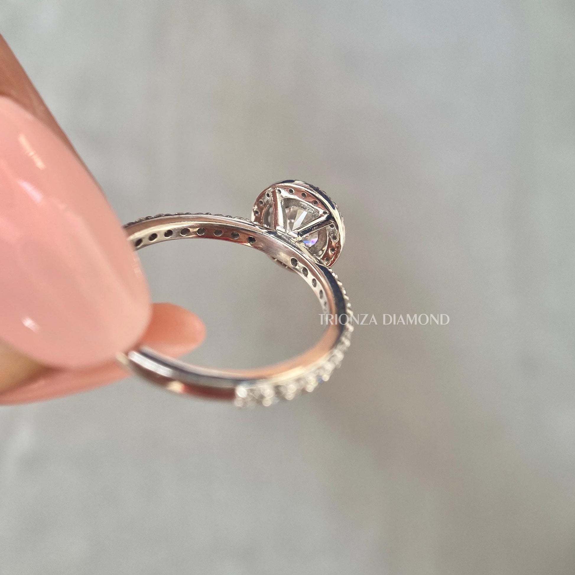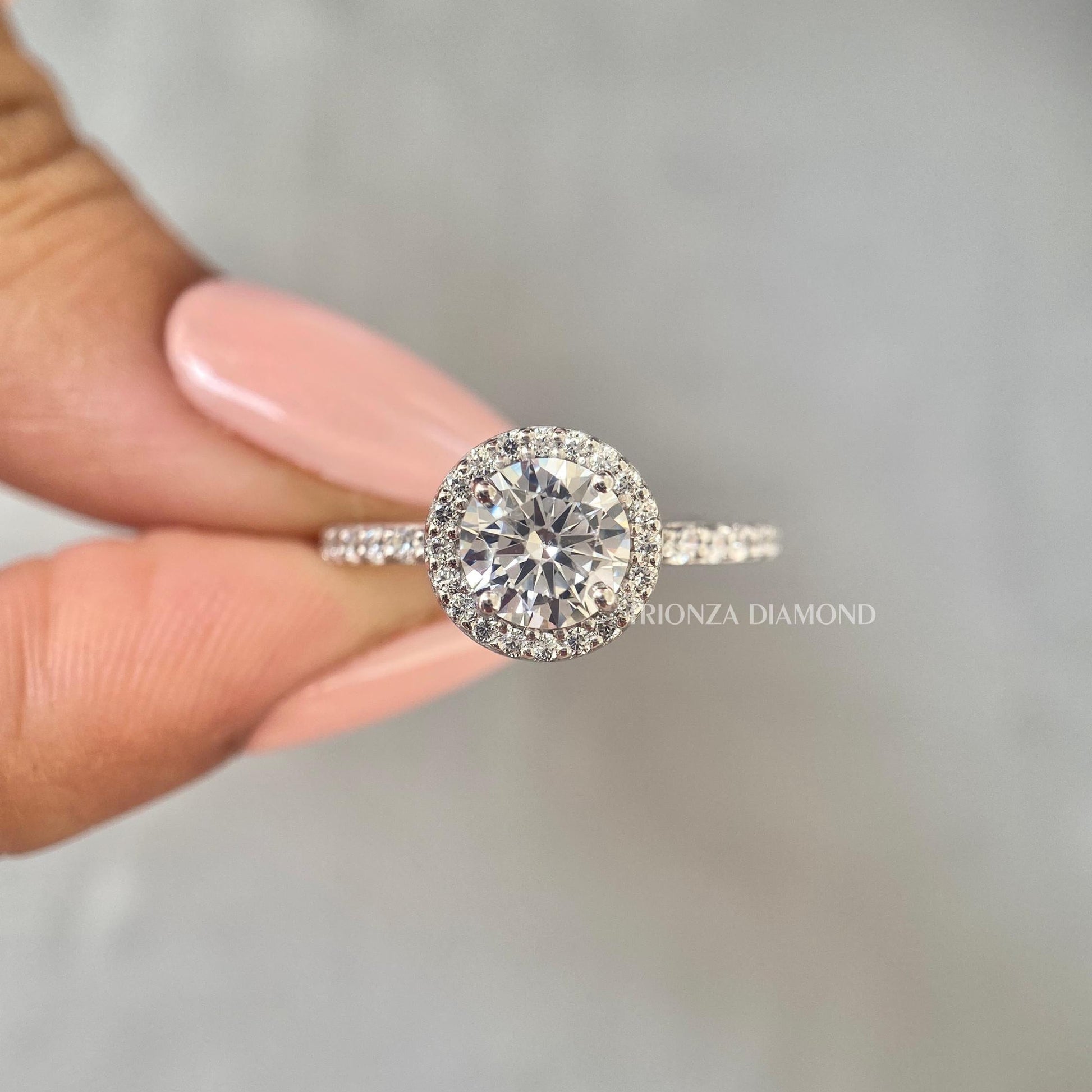 1CT D/VVS1 Round Lab Grown Diamond Halo Engagement Ring