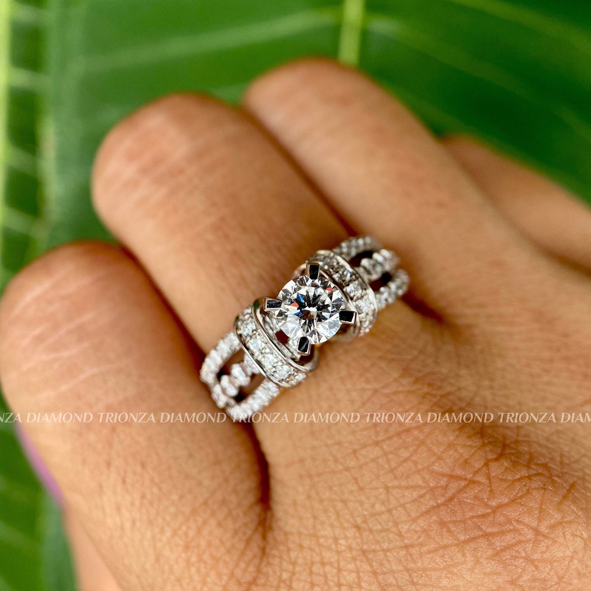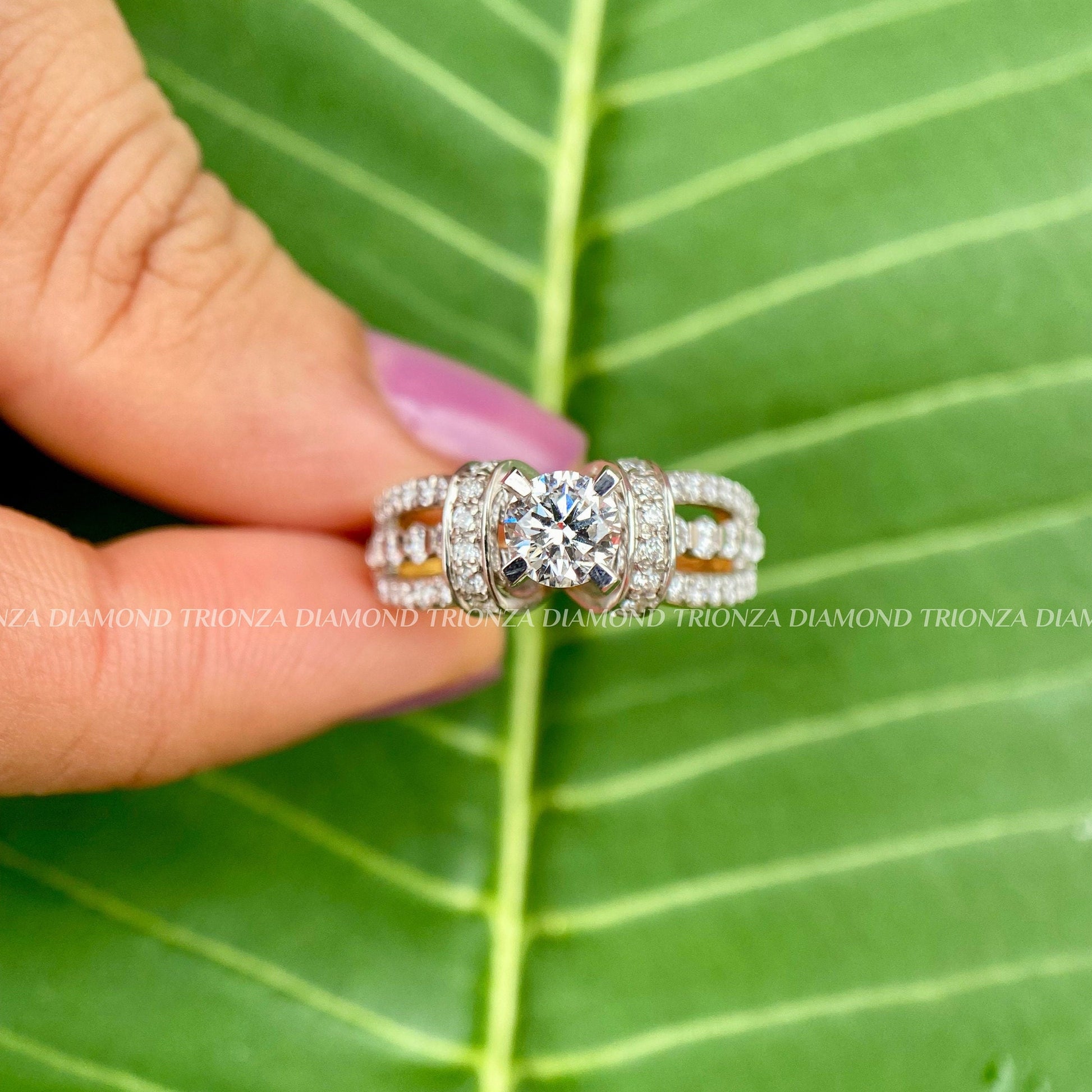 1CT Round Lab Diamond Trio Split Shank Engagement Ring, IGI Certified
