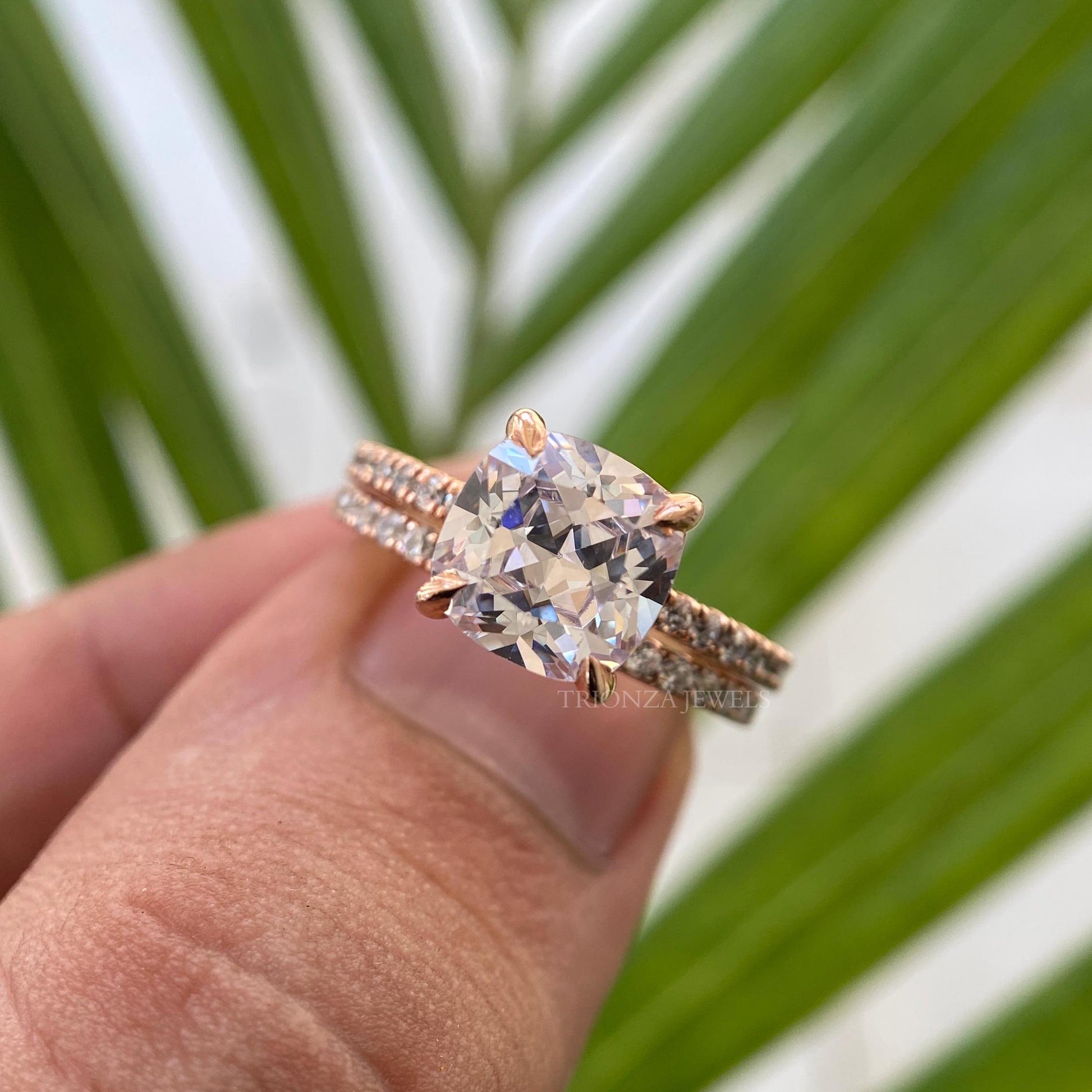 2.0 CT Cushion Cut Moissanite Bridal Wedding Ring Set - Pave Set