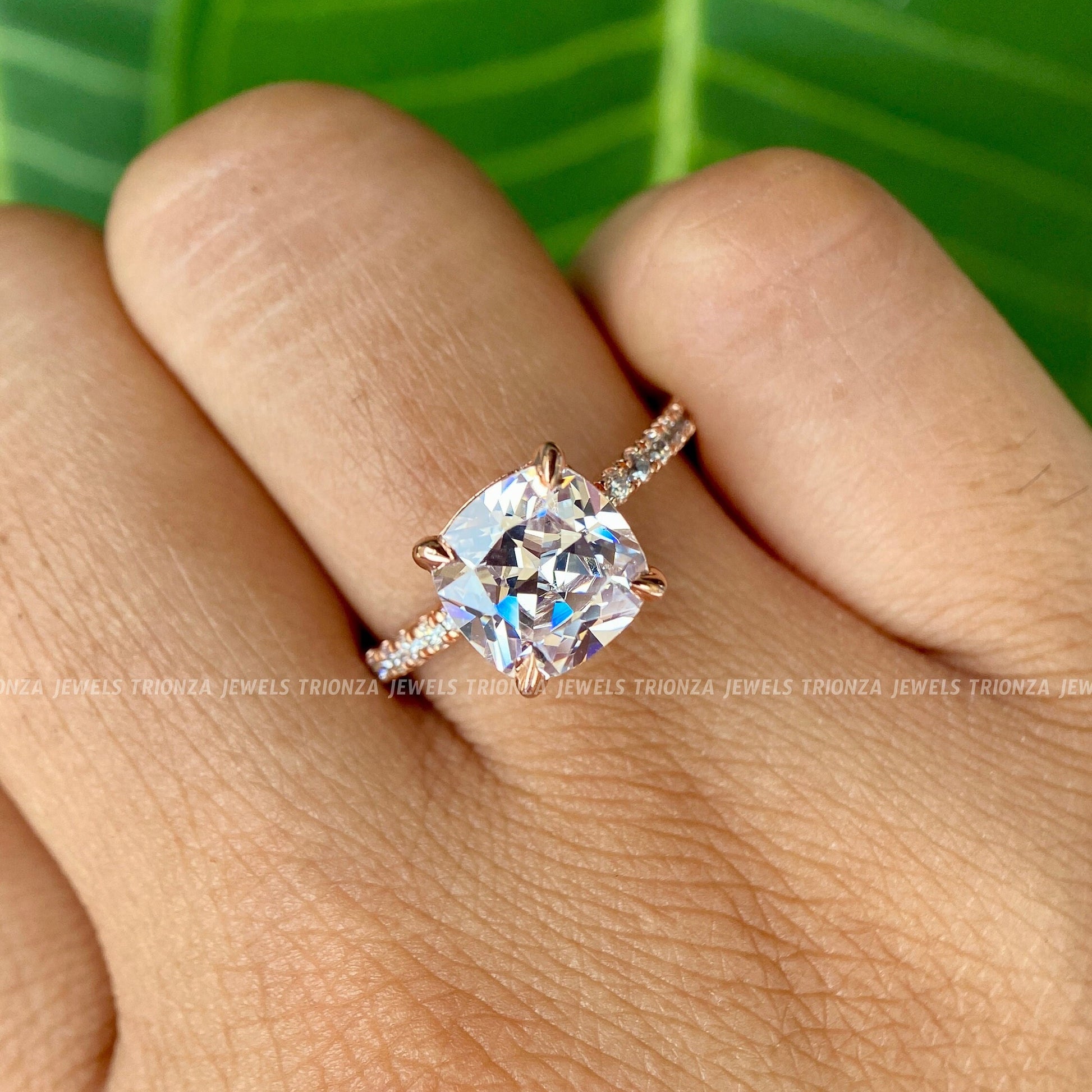 Celebrate your love with this exquisite 2.0 CT Cushion Cut Moissanite Engagement Ring from TRIONZA JEWELS. Crafted in 14k gold with a delicate pave setting, this unique solitaire ring is perfect for proposals, weddings, or as a thoughtful anniversary gift.