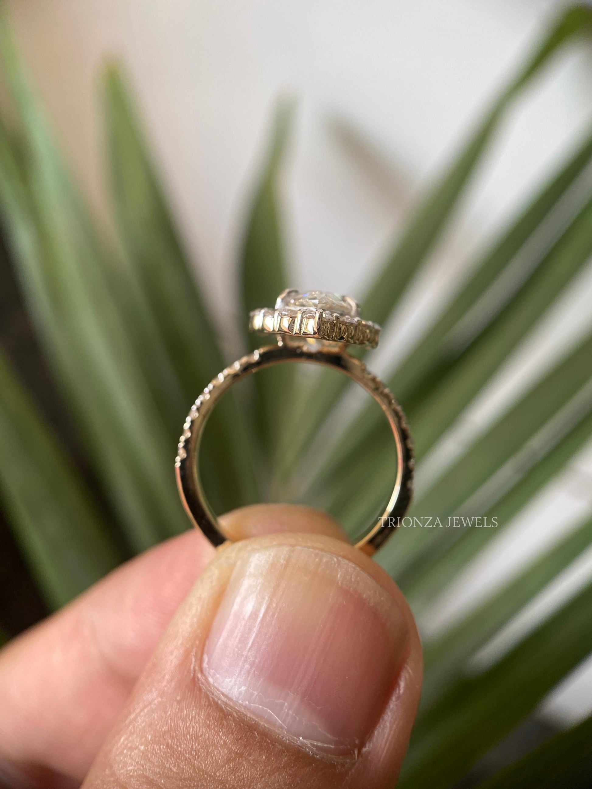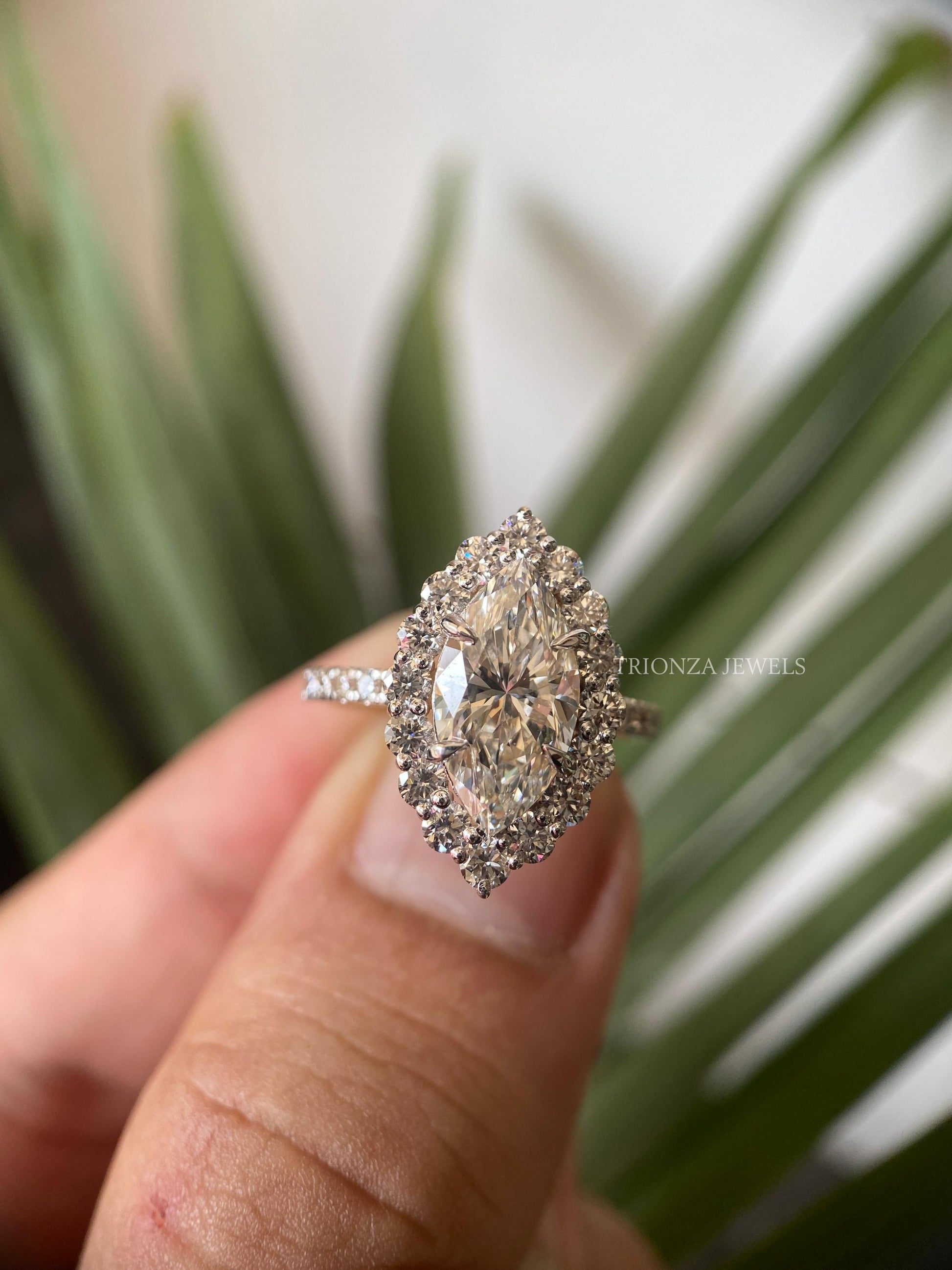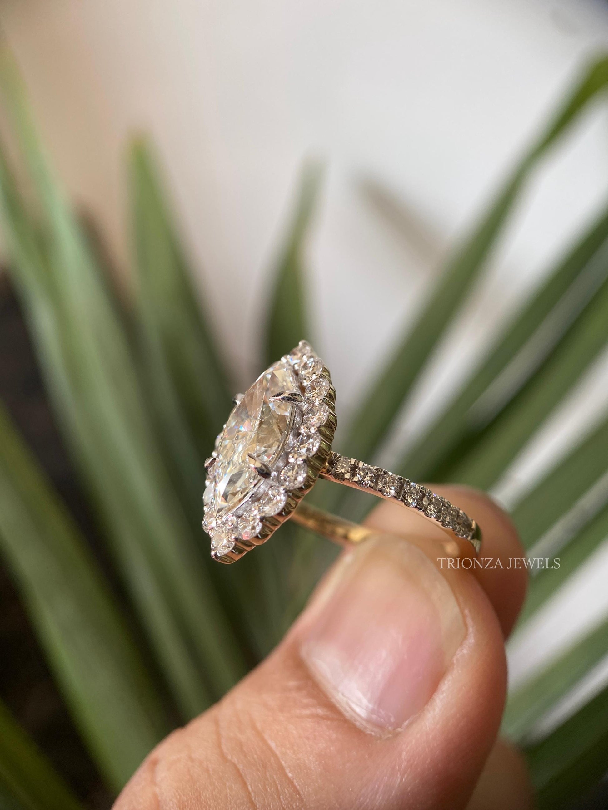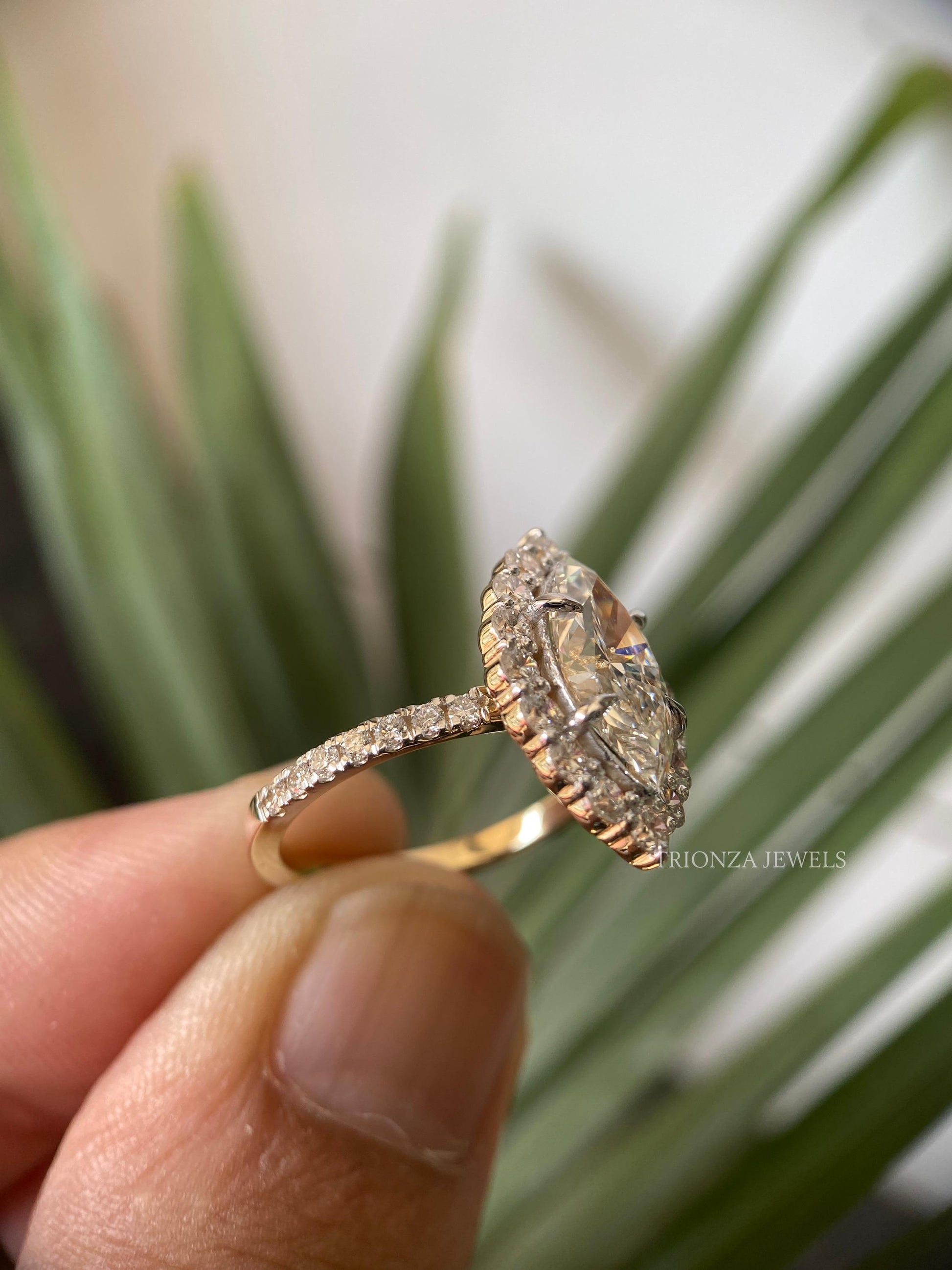 2.0 CT Marquise Halo Moissanite Engagement Ring | 14K Gold Wedding Ring